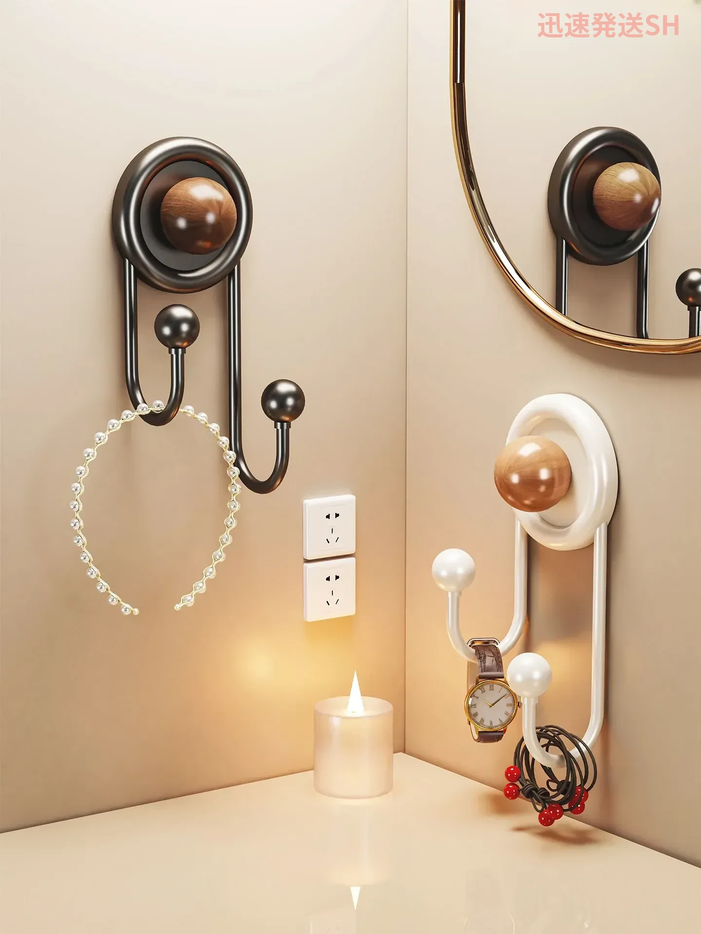 中古風デザインの吸盤フック!玄関やドアの裏、リビングの壁、バスルームに最適なノーホール収納フック。跡が残らず、簡単に取り付け可能で、おしゃれなインテリアを演出します。