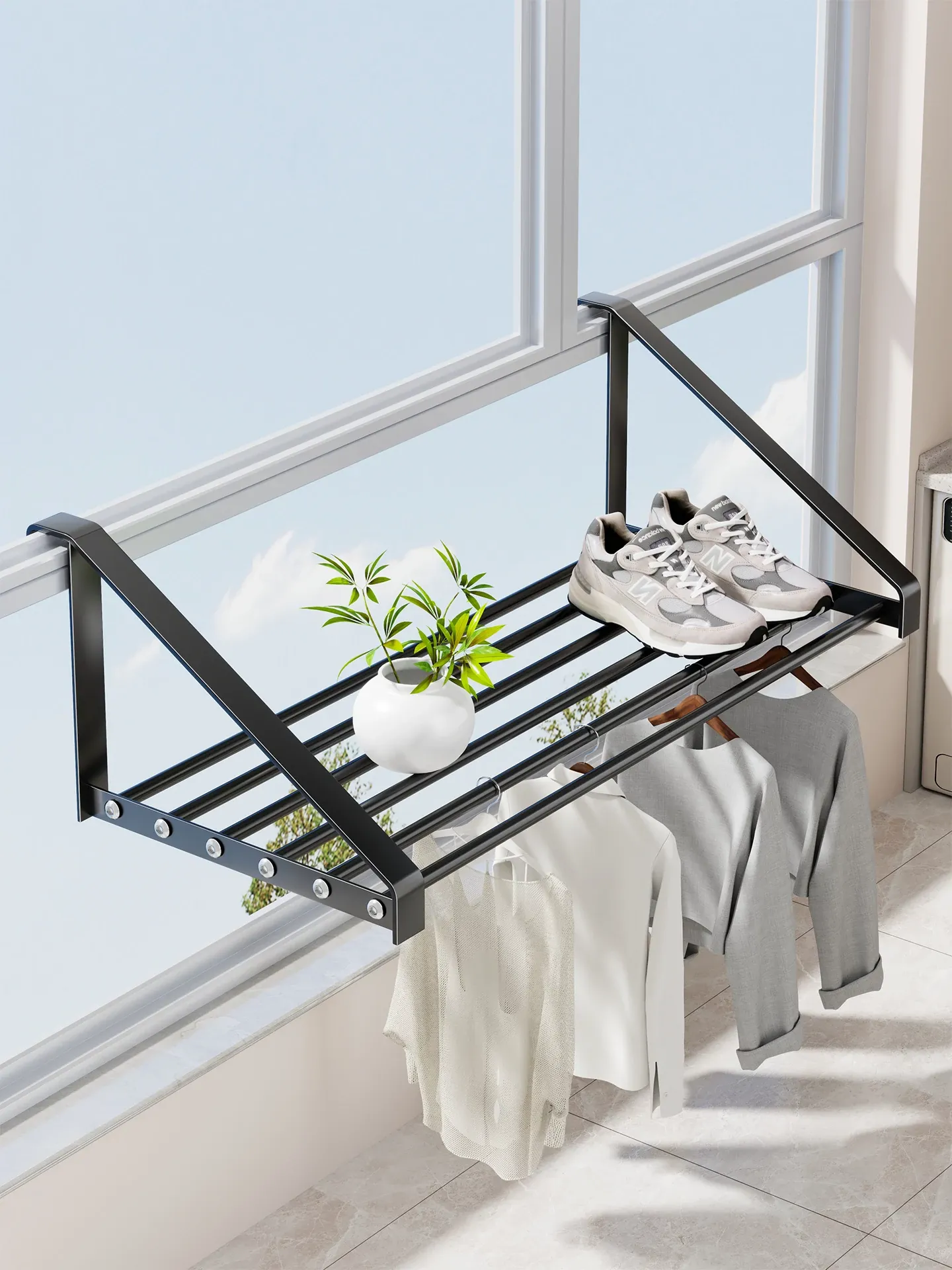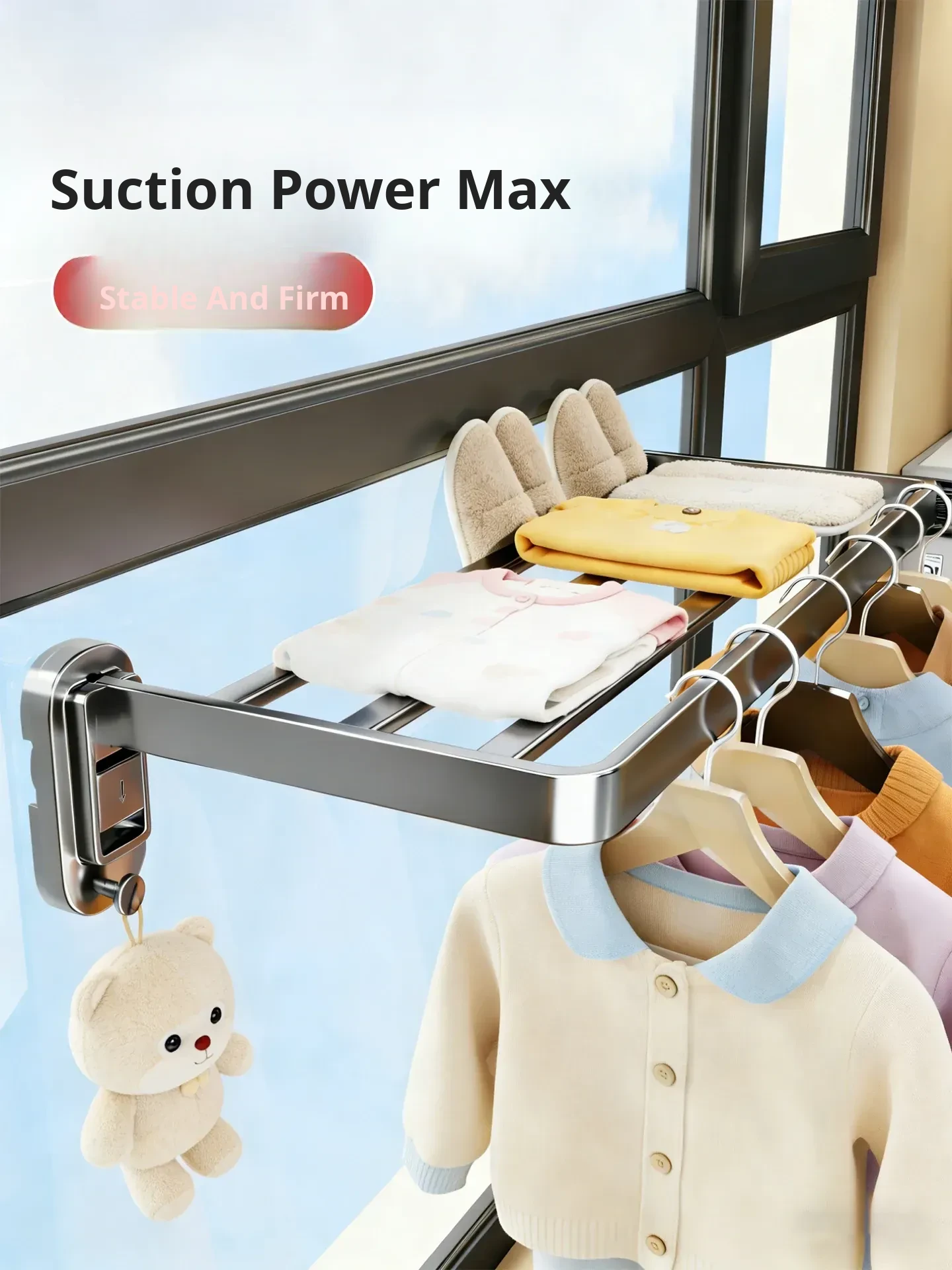 Foldable Balcony Clothes Drying Rack - No Drilling, Suction Cup Design, Compact and Convenient Laundry Solution for Home Use
