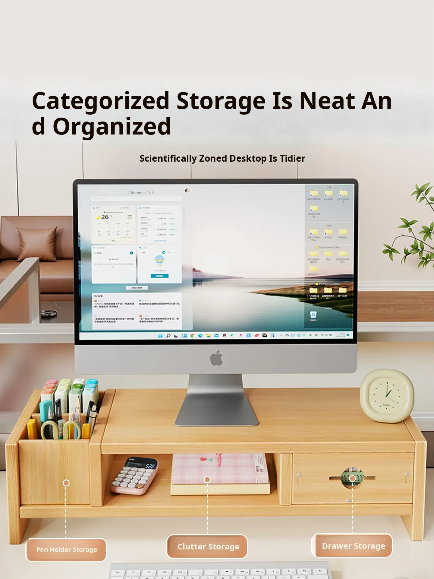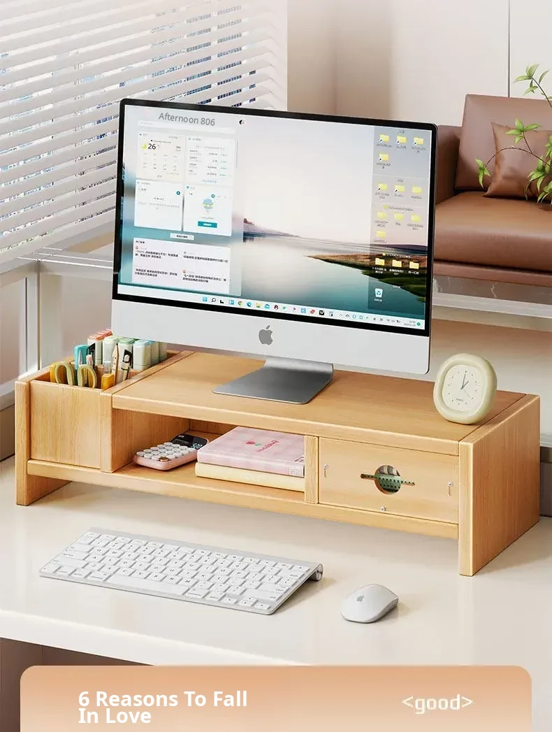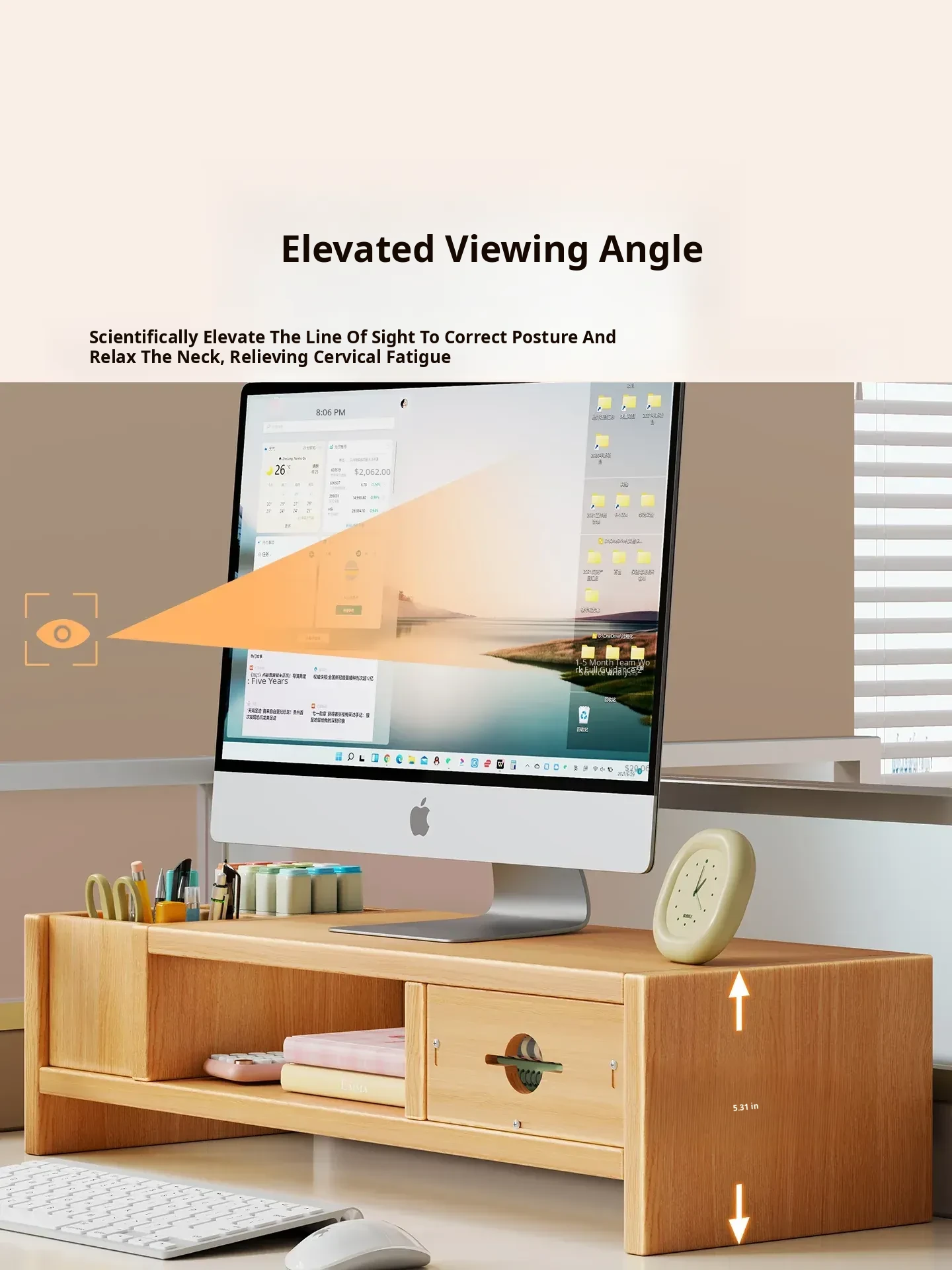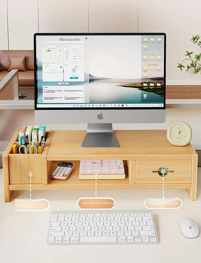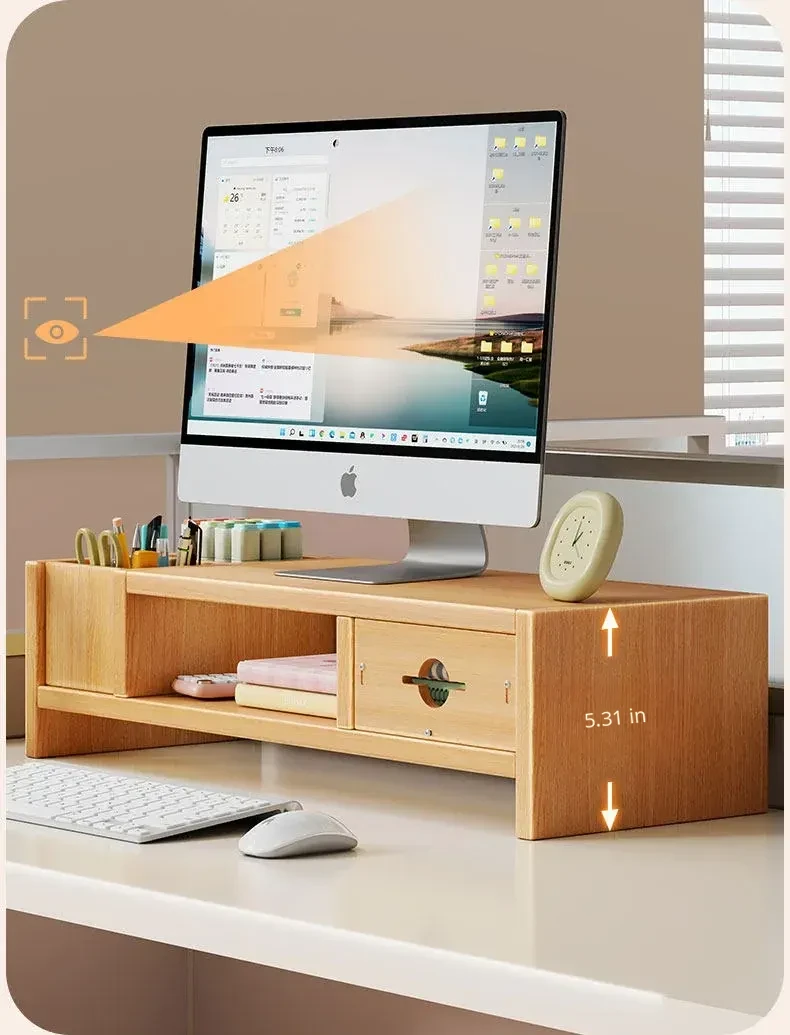 Adjustable Desktop Monitor Stand - Ergonomic Computer Riser for Office Organization and Space-Saving Storage Solutions