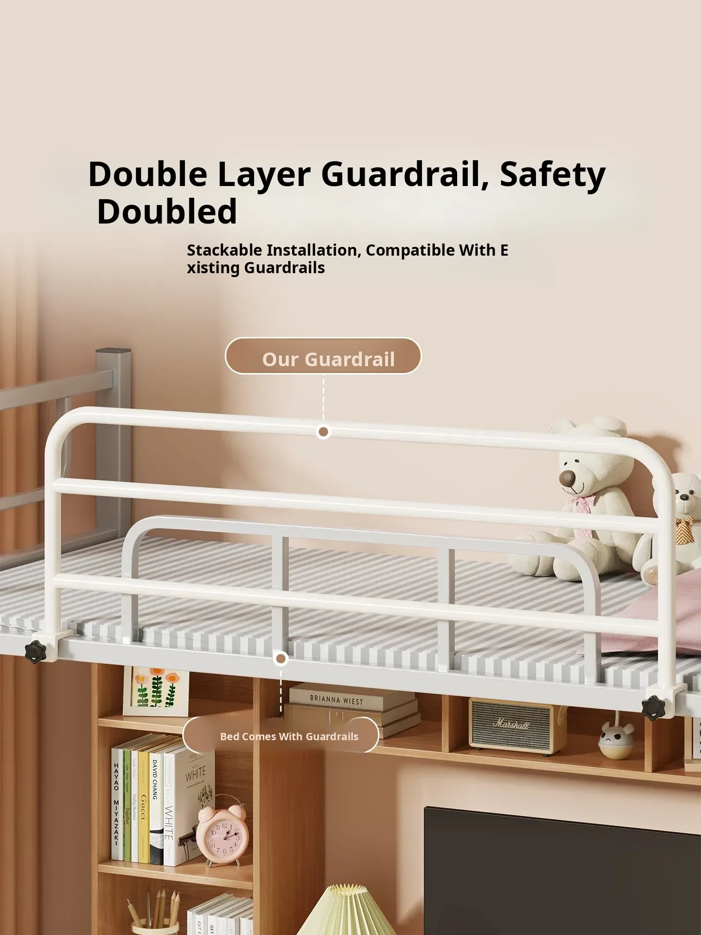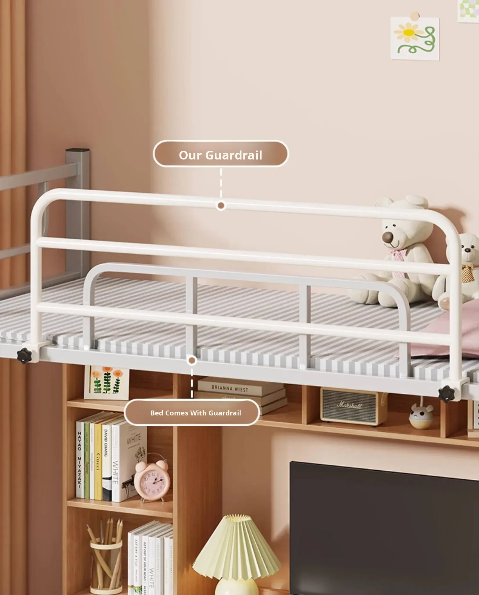 Adjustable Safety Bed Guardrail - Enhanced Bedside Barrier for Student Dorms, Prevents Falls and Provides Extra Security for Bunk Beds and Loft Beds. Perfect for Peace of Mind!