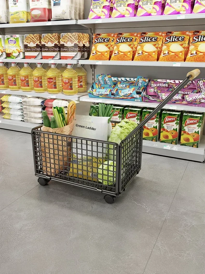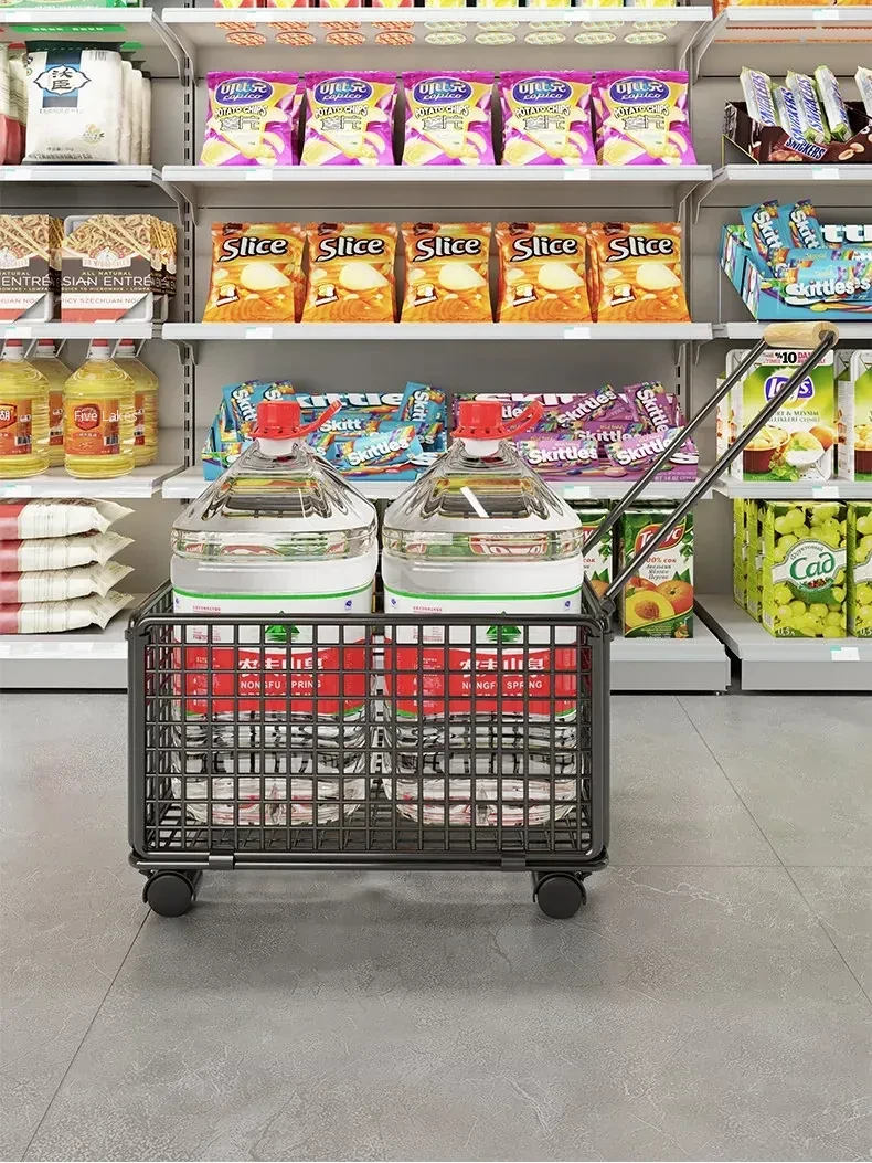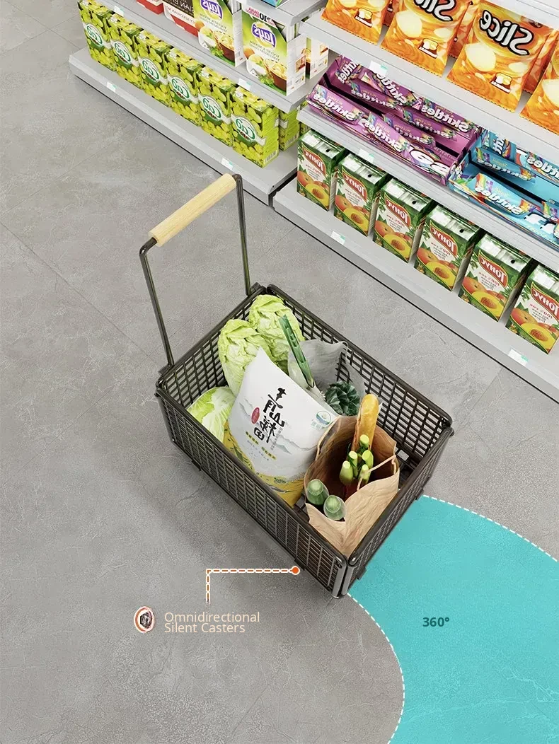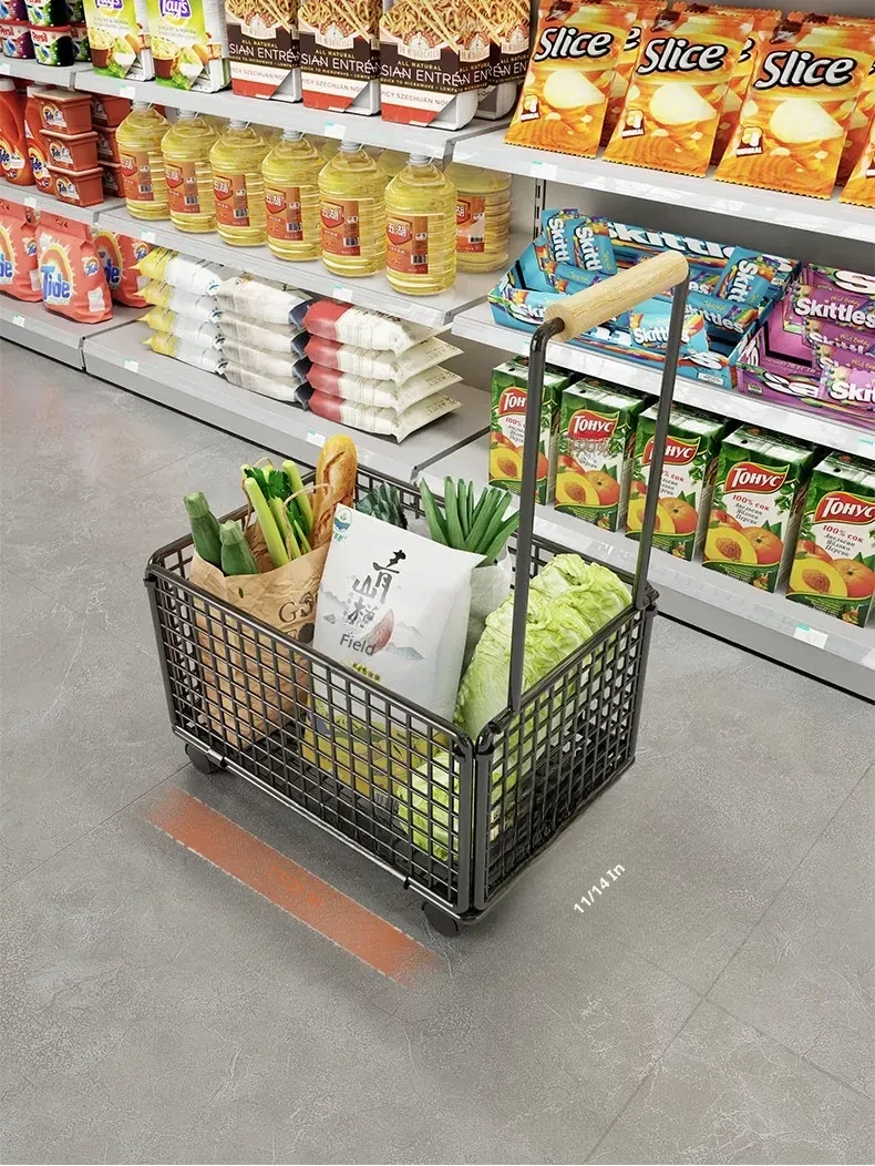 Convenient Rolling Shopping Basket with Wheels - Durable Grocery Cart for Fruit and Snacks, Ideal for Supermarkets and Convenience Stores