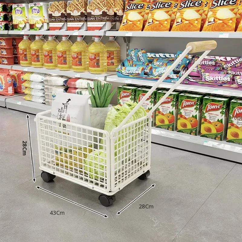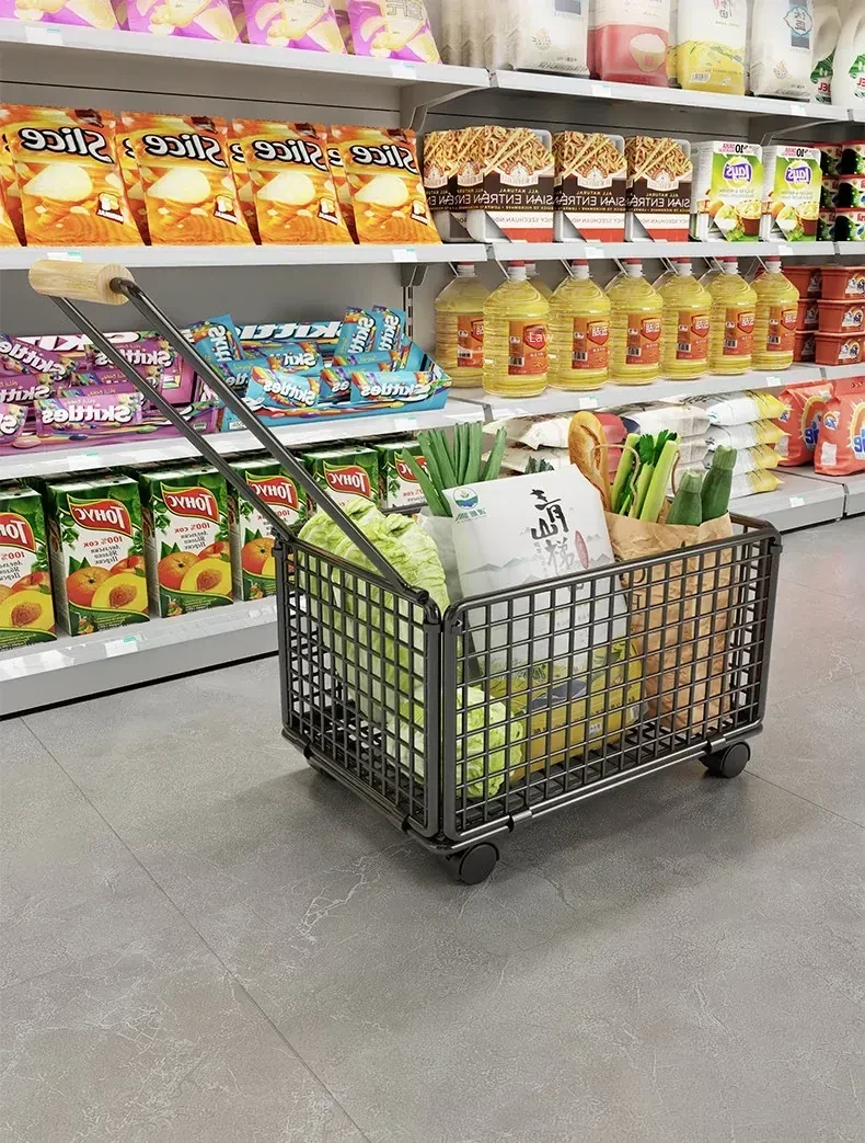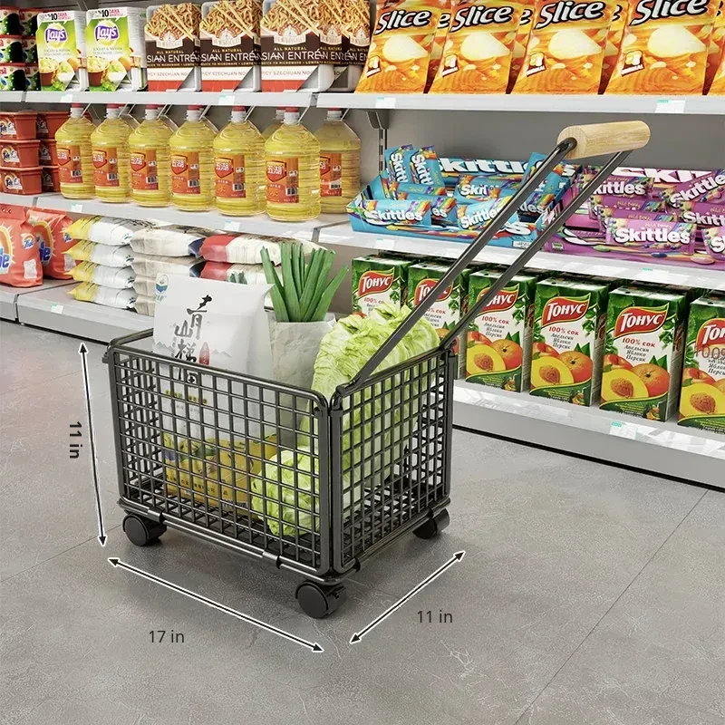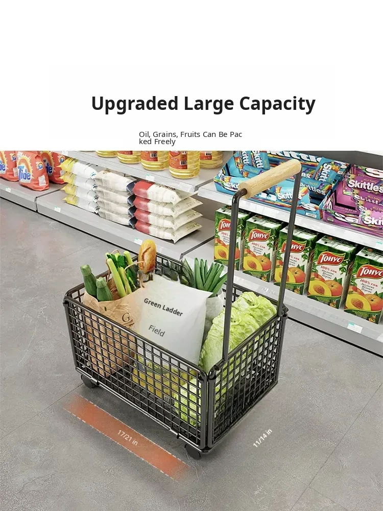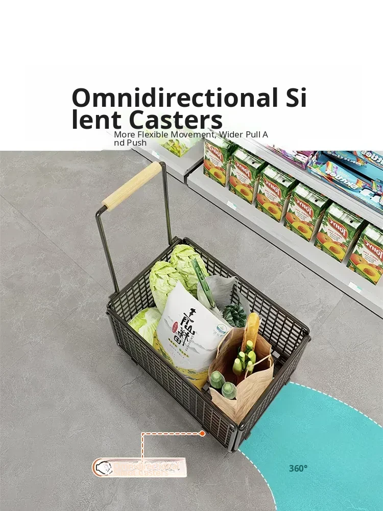 Convenient Rolling Shopping Basket with Wheels - Durable Grocery Cart for Fruit and Snacks, Ideal for Supermarkets and Convenience Stores
