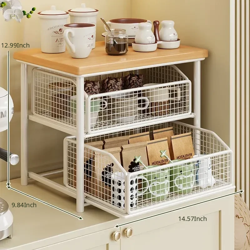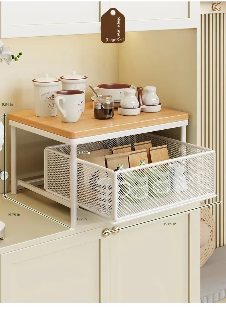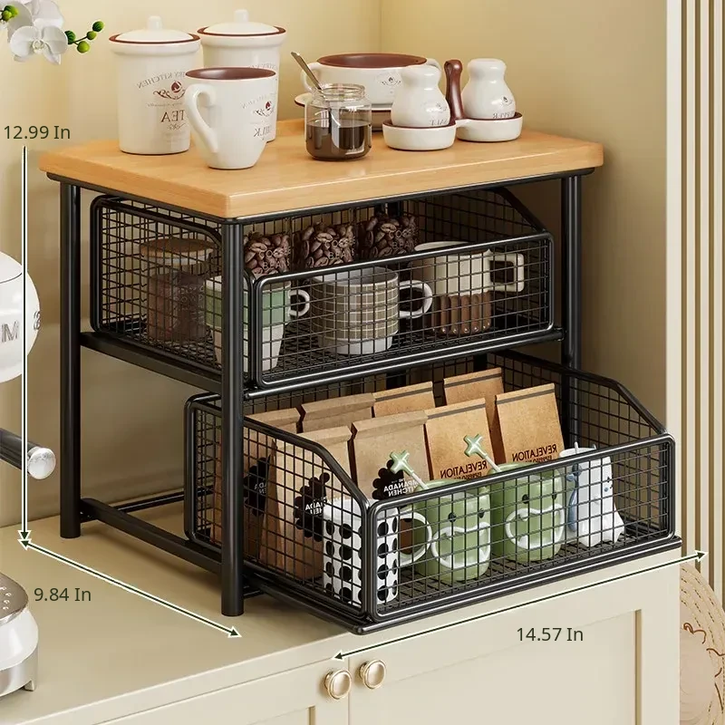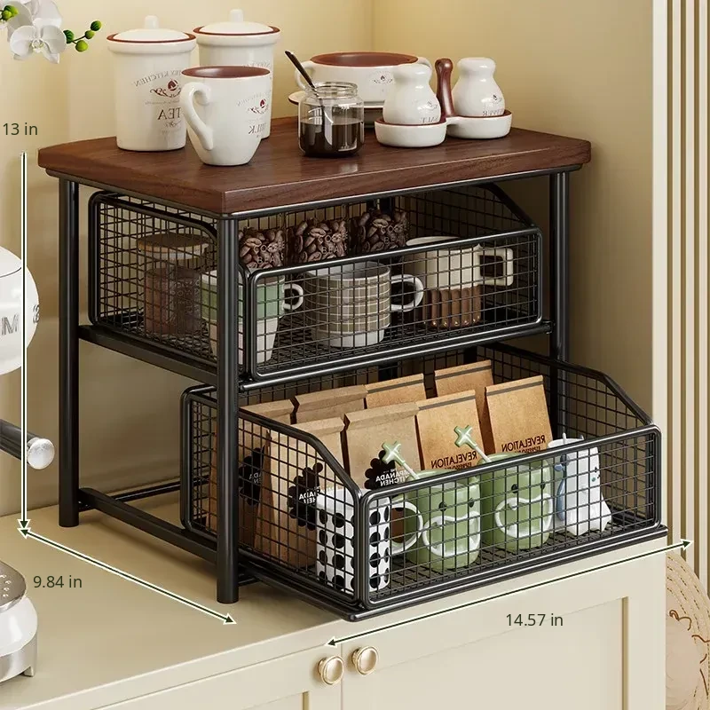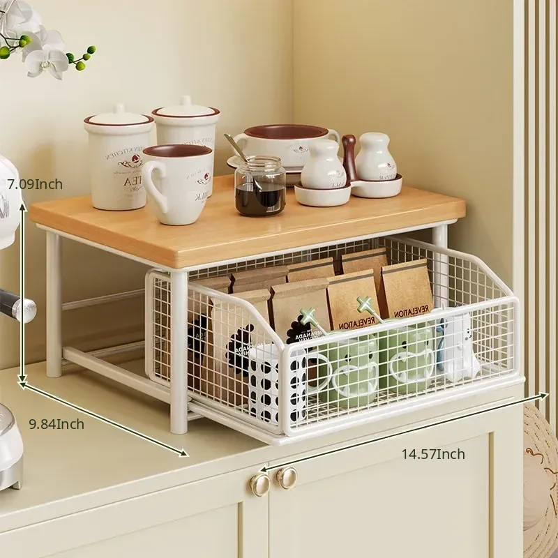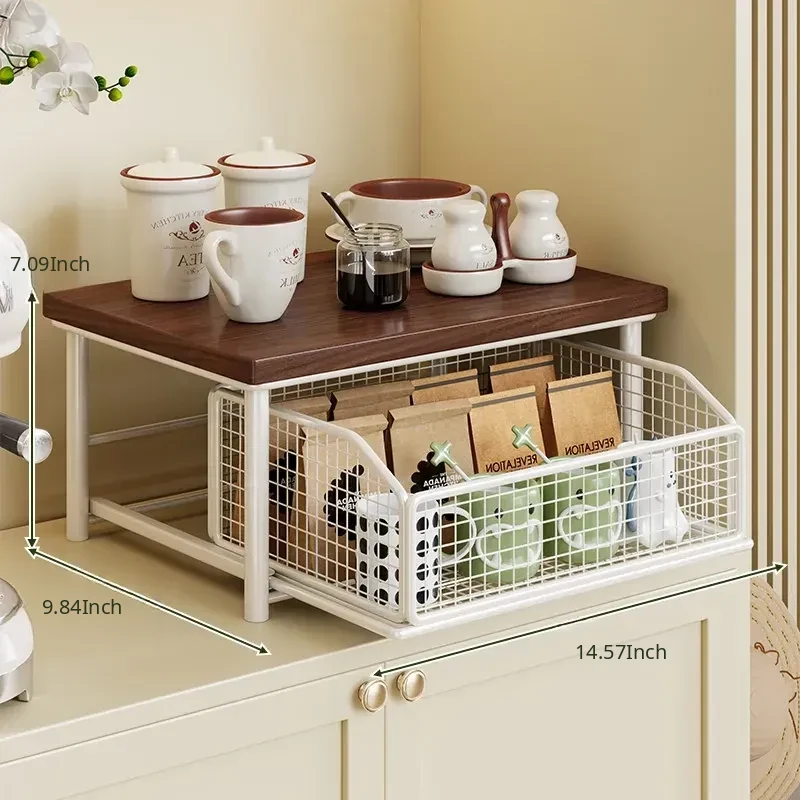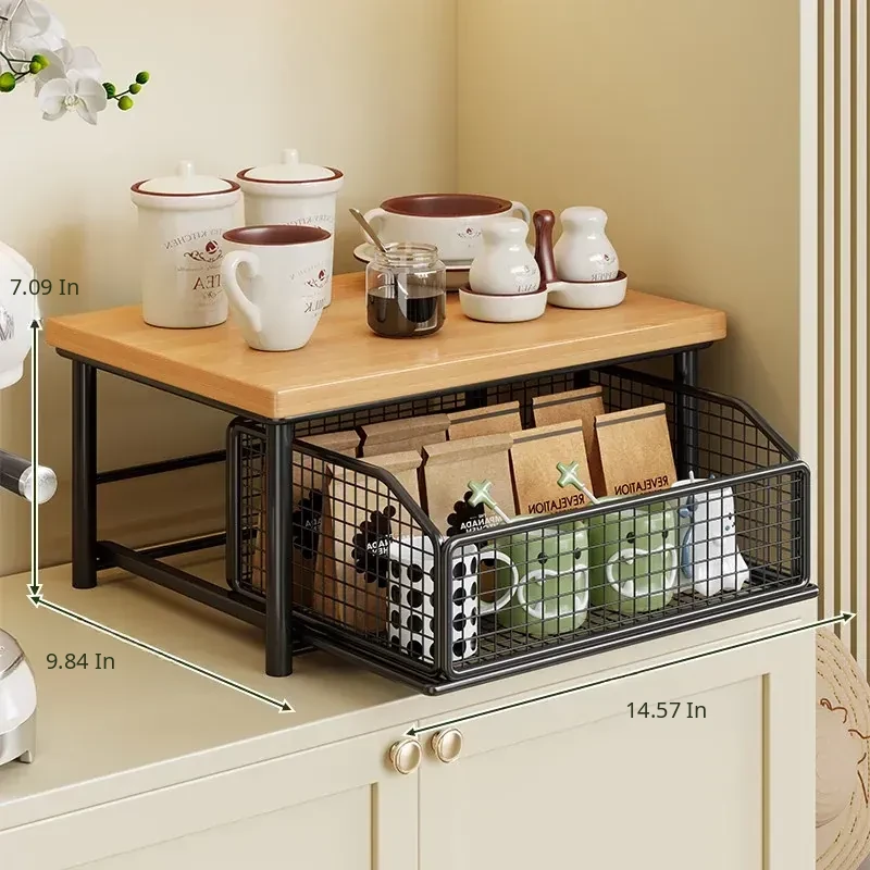 Desktop Storage Rack for Snacks - Pull-Out Tiered Organizer for Tea Cups, Tea Bags, Coffee Machines, and Microwave - Perfect for Kitchen and Dining Table Organization!