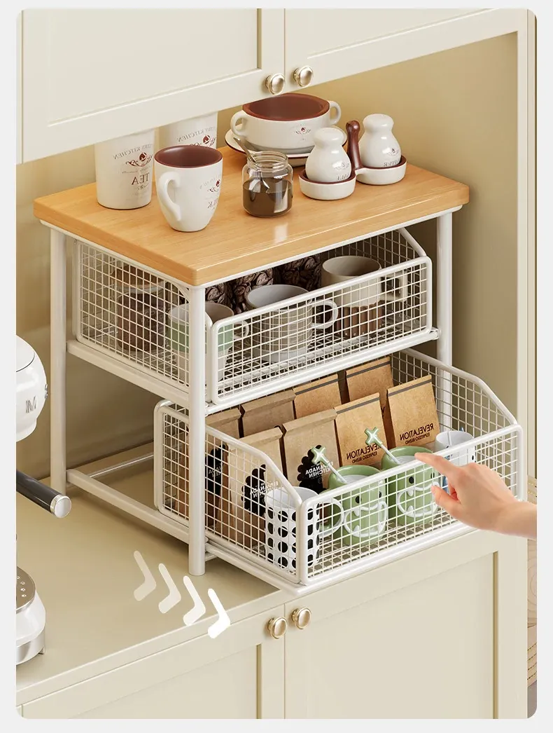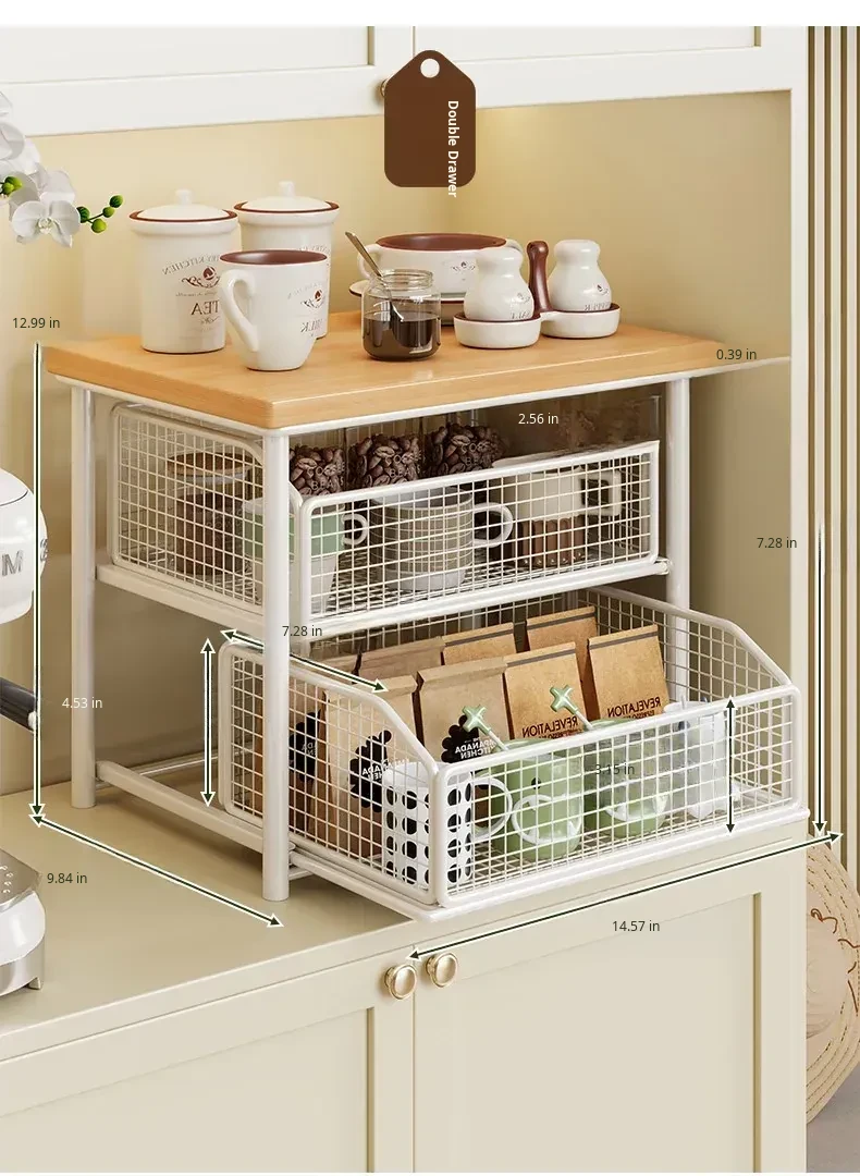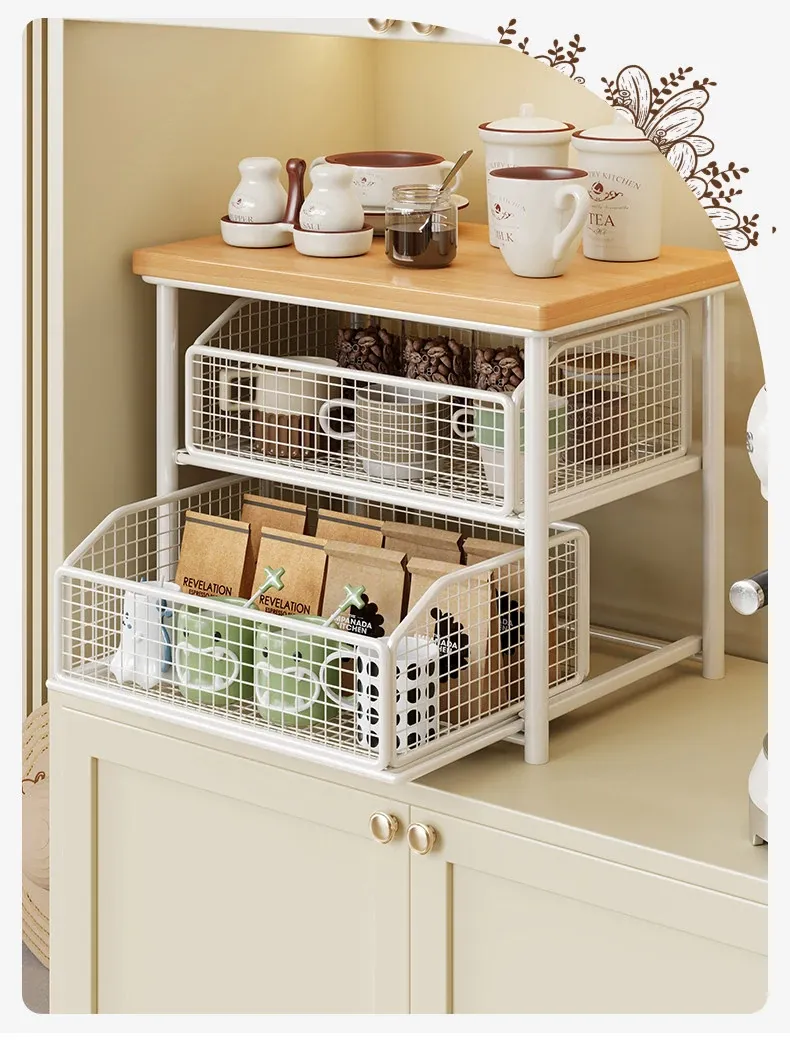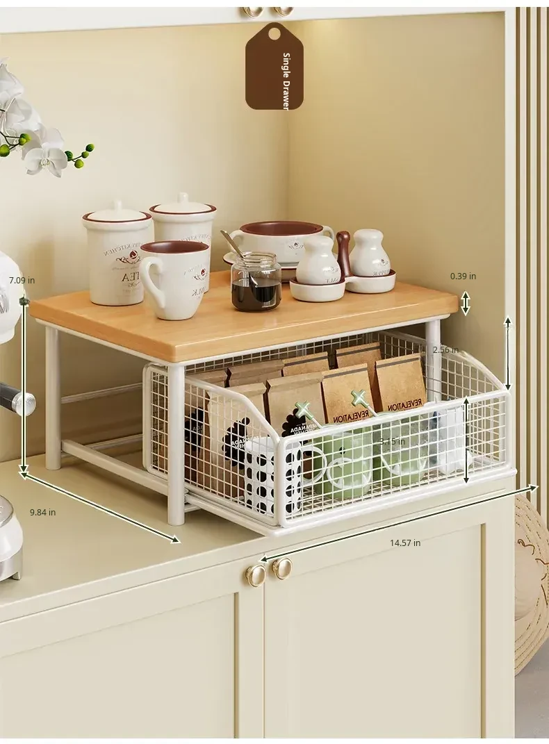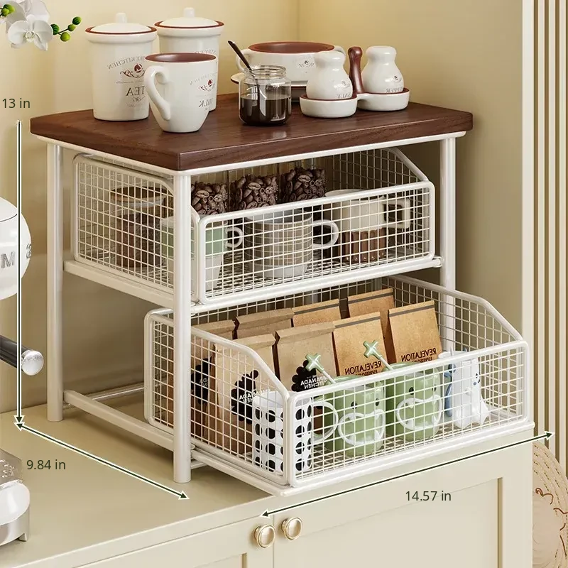 Desktop Storage Rack for Snacks - Pull-Out Tiered Organizer for Tea Cups, Tea Bags, Coffee Machines, and Microwave - Perfect for Kitchen and Dining Table Organization!