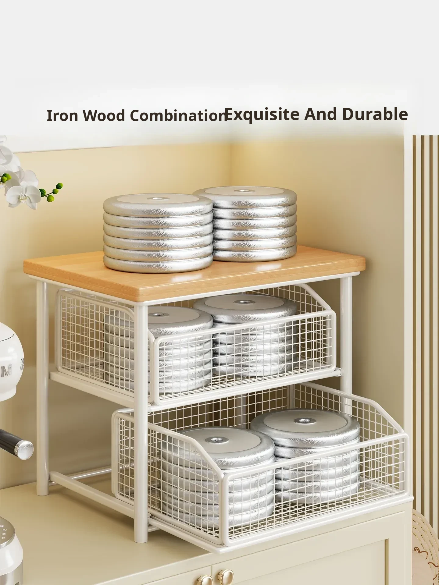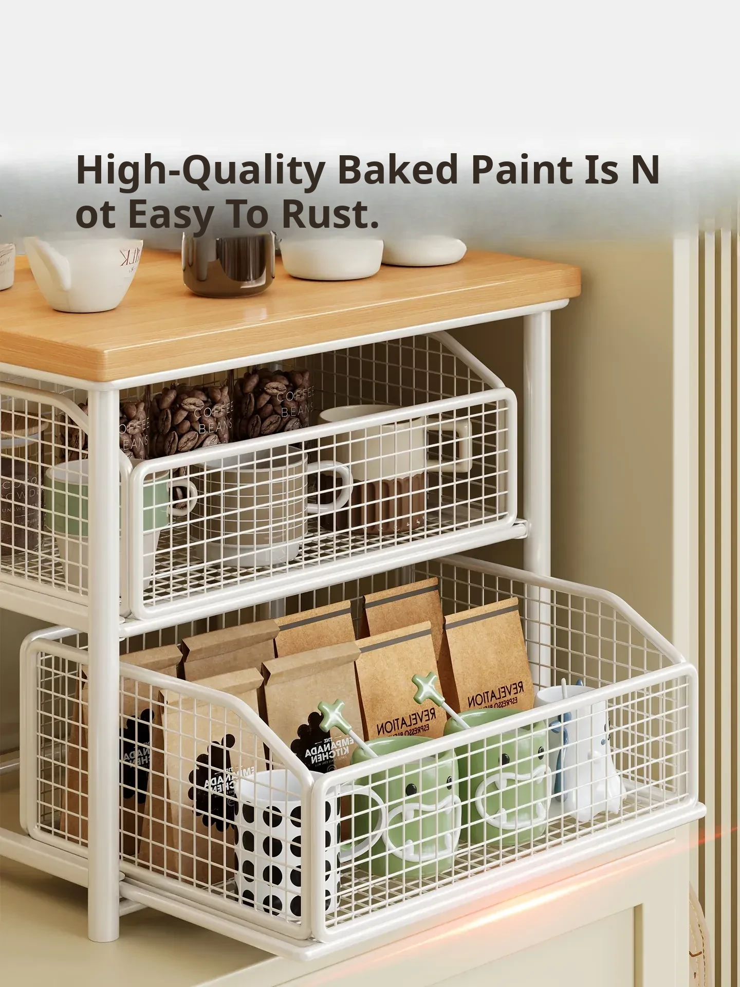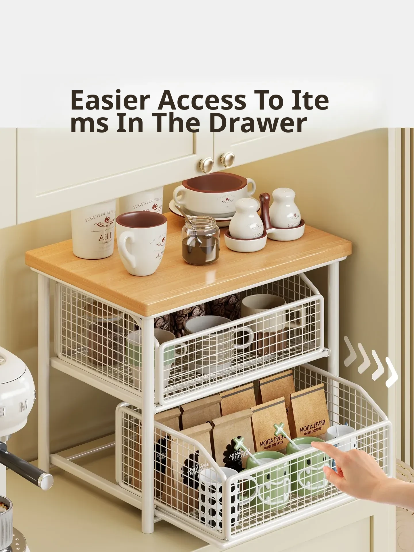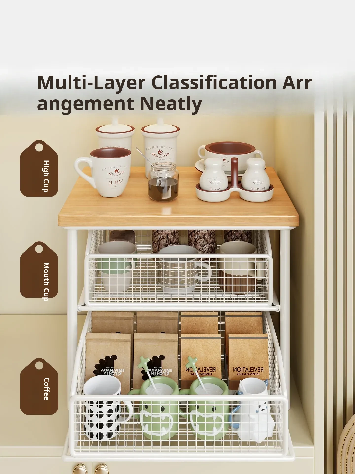 Desktop Storage Rack for Snacks - Pull-Out Tiered Organizer for Tea Cups, Tea Bags, Coffee Machines, and Microwave - Perfect for Kitchen and Dining Table Organization!