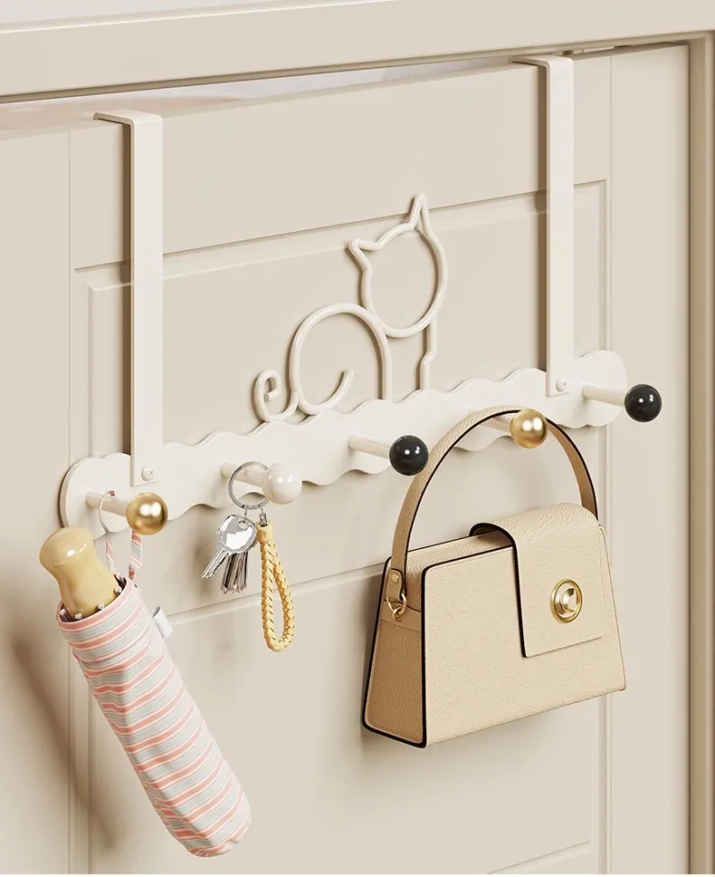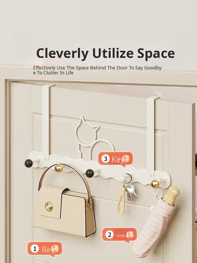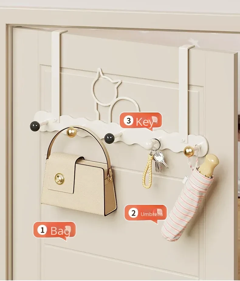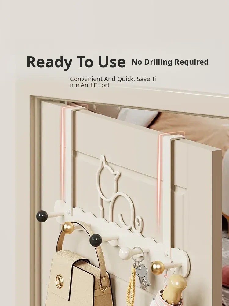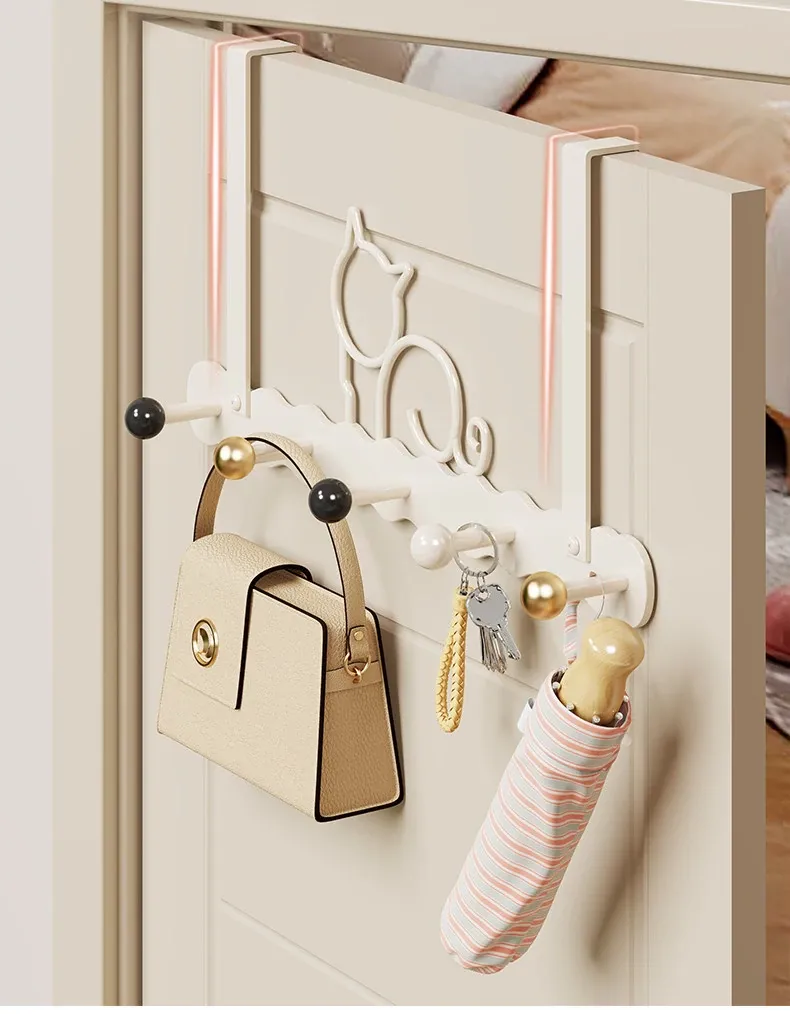 Door-Mounted Hook Rack - No Drill Wall-Mounted Coat and Hat Hooks for Bedroom and Kitchen Storage Organizer, Over-the-Door Hanger for Clothes and Accessories