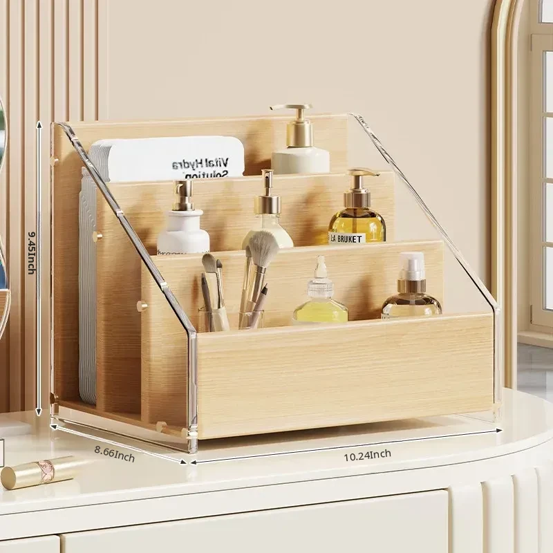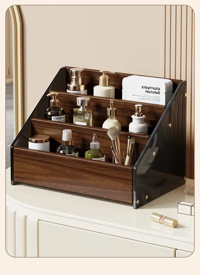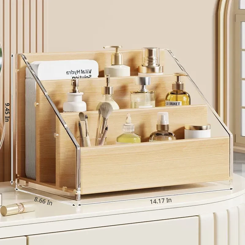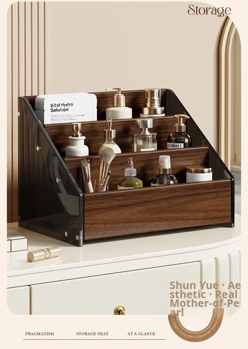 Elegant Acrylic Makeup Vanity Organizer - Multi-Layer Perfume and Skincare Storage Rack for Desktop, Stylish Cosmetic Display Shelf