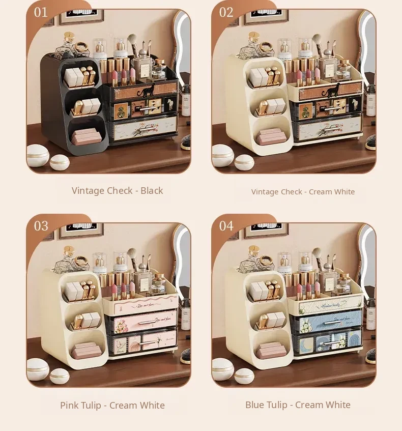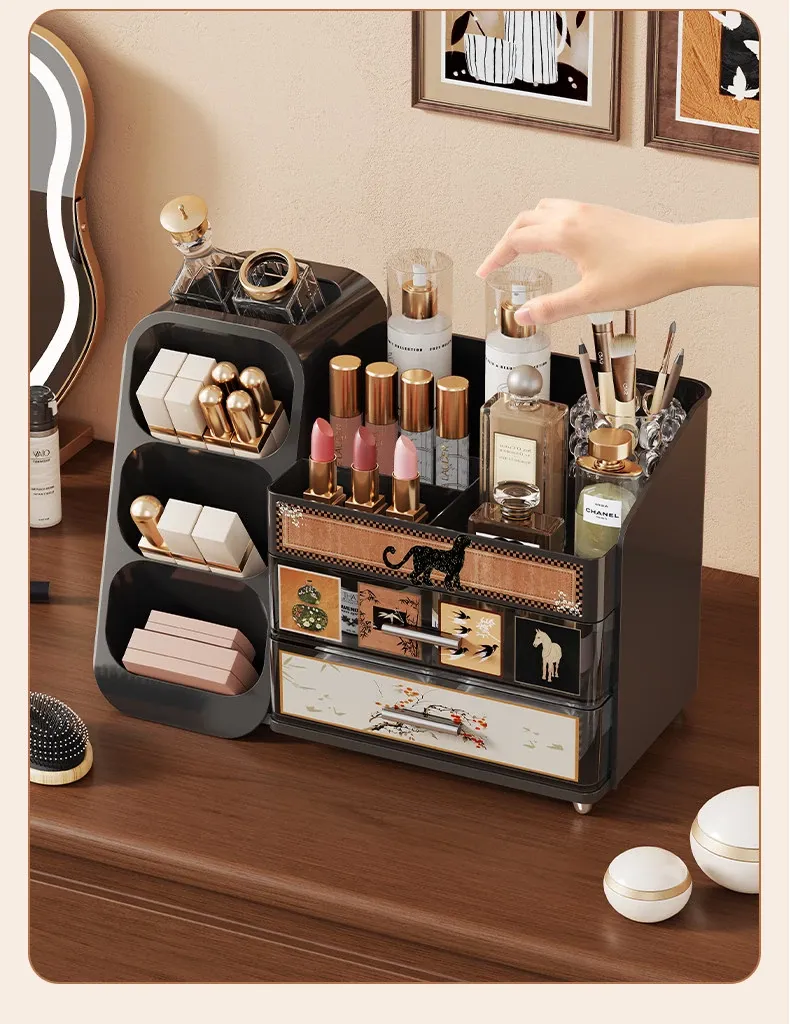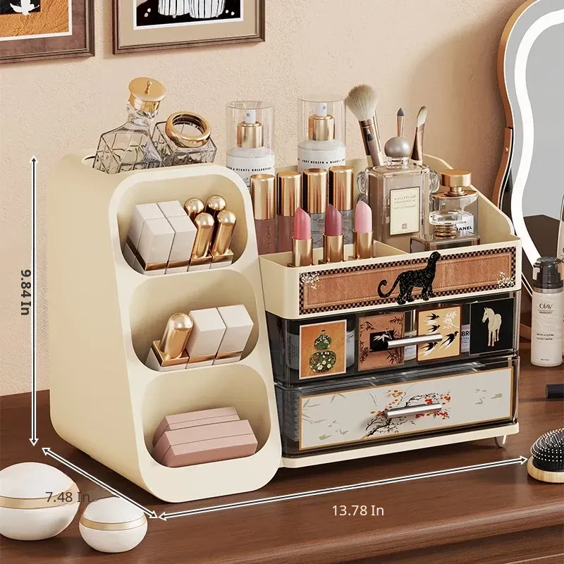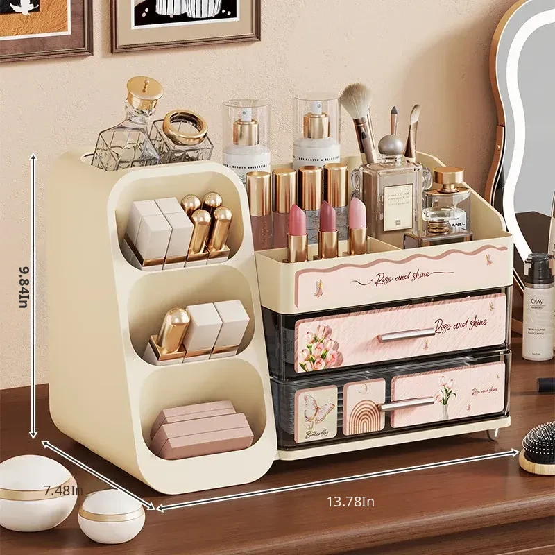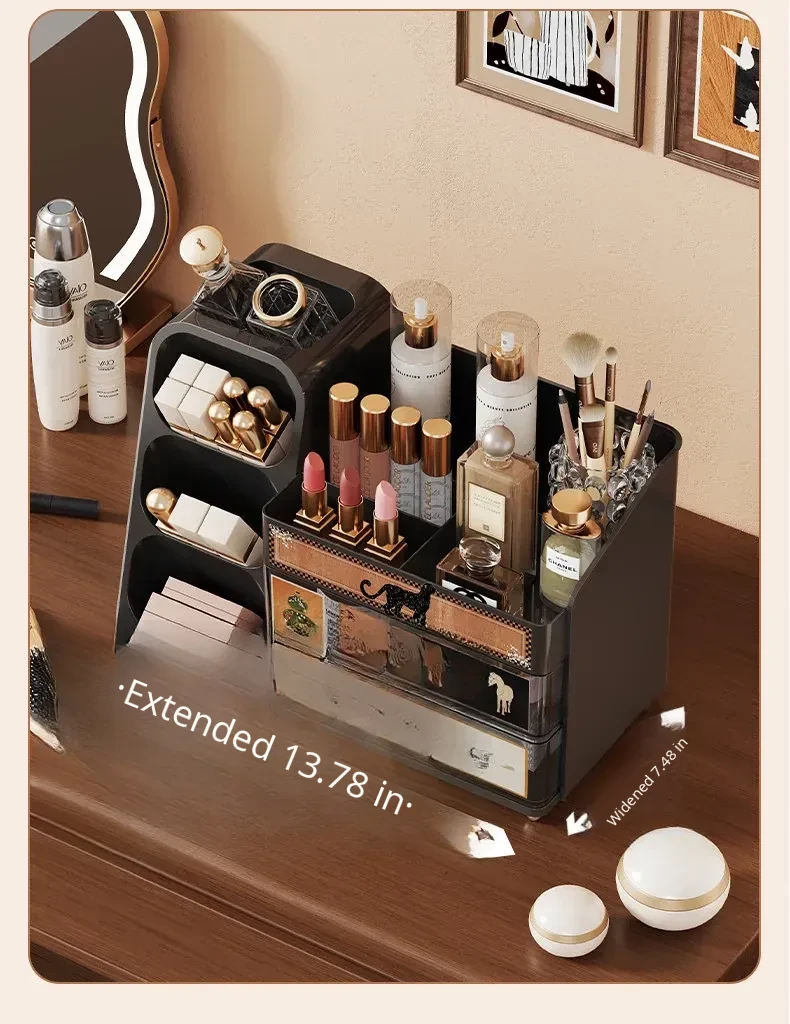 Elegant Large Capacity Makeup Organizer with Drawers - Multi-functional Storage Solution for Skincare and Cosmetics, Perfect for Your Dressing Table!