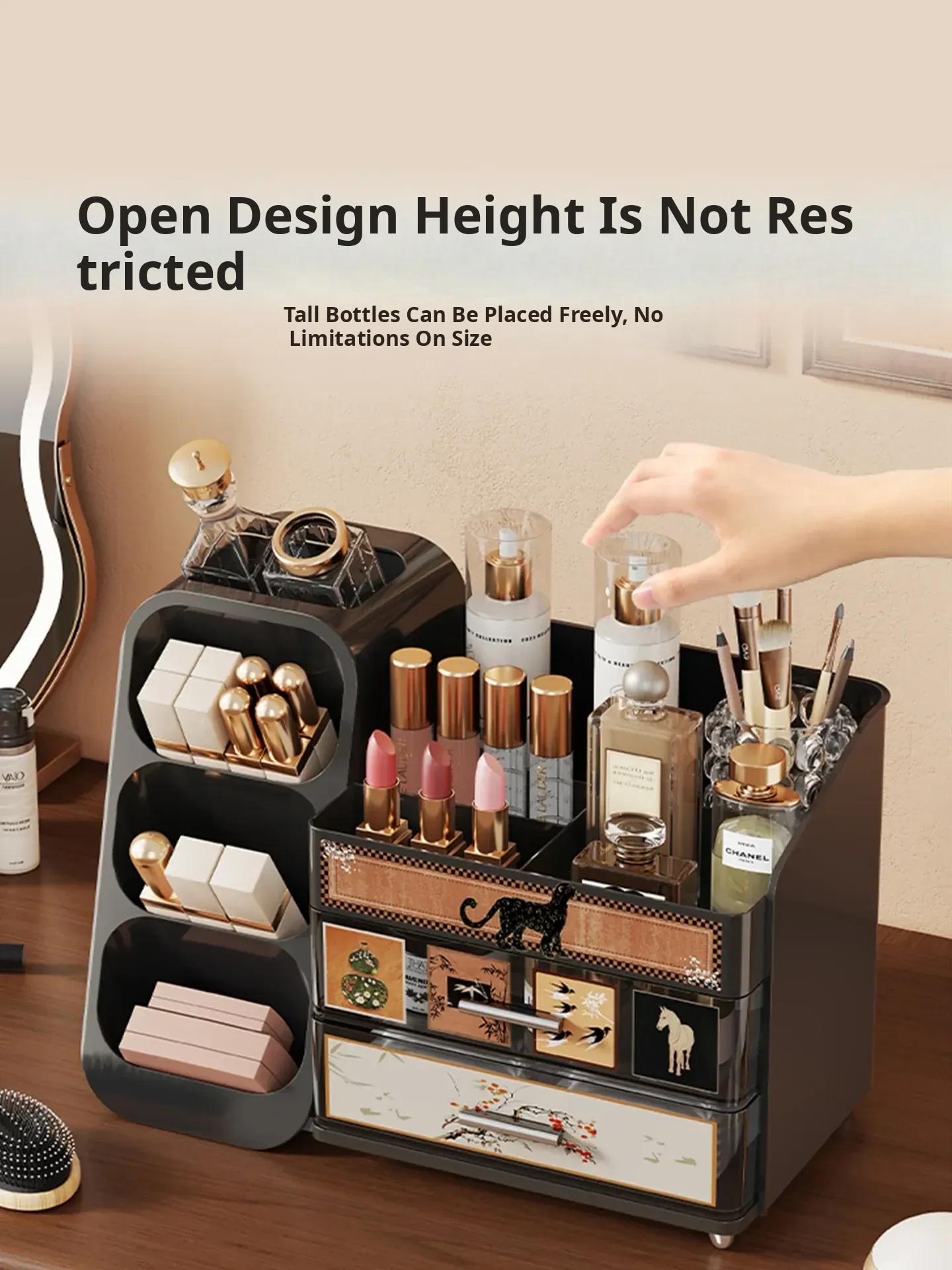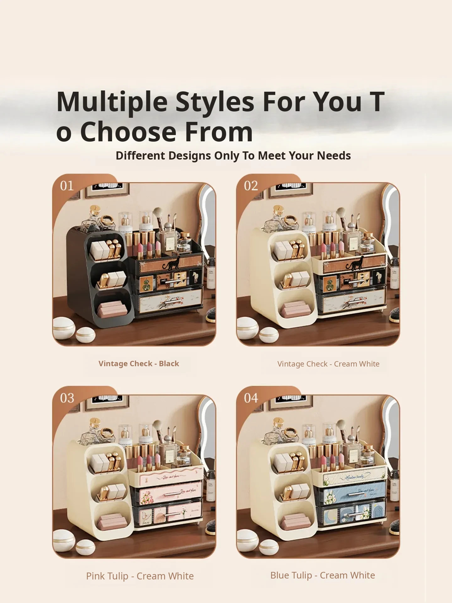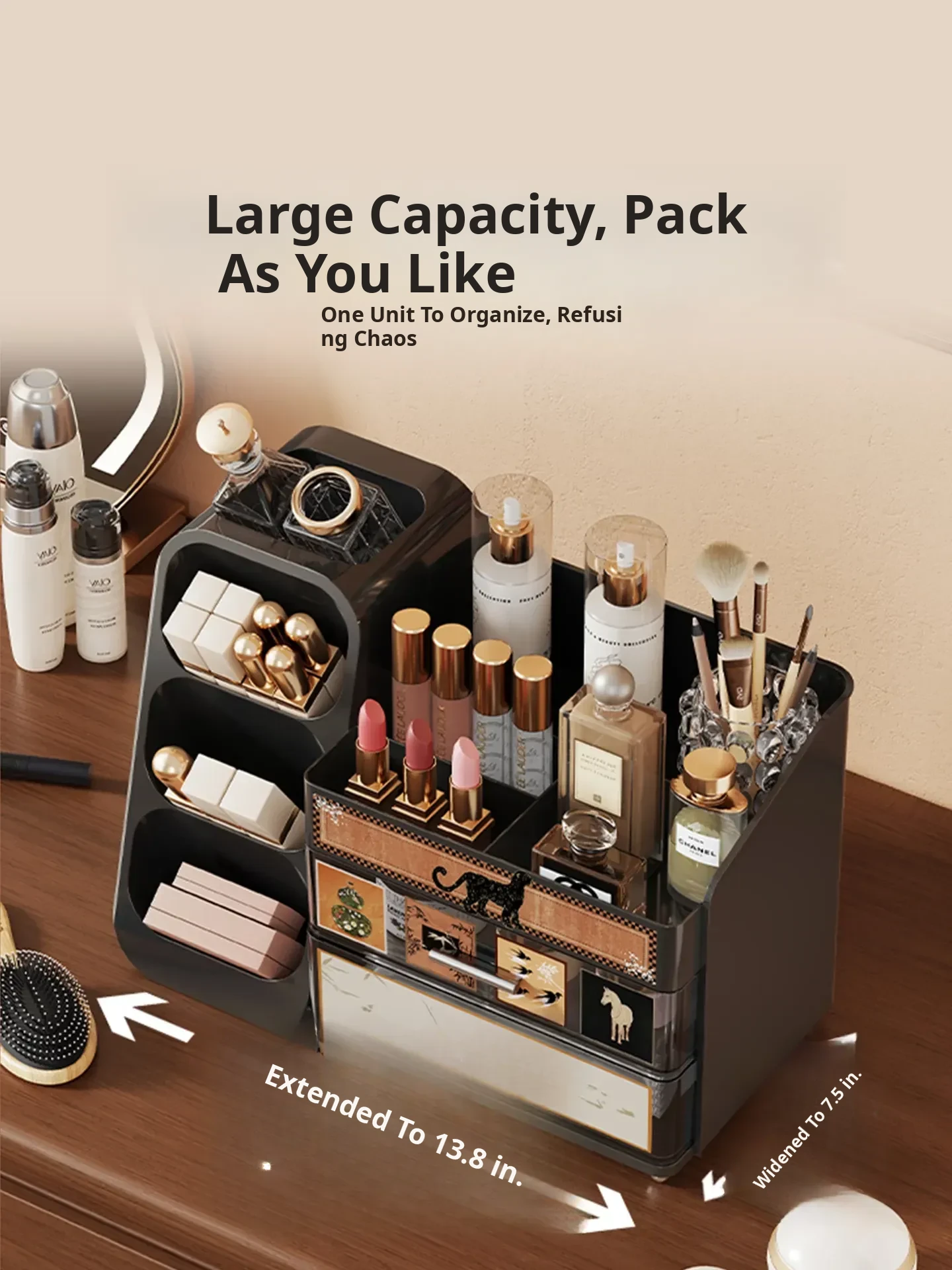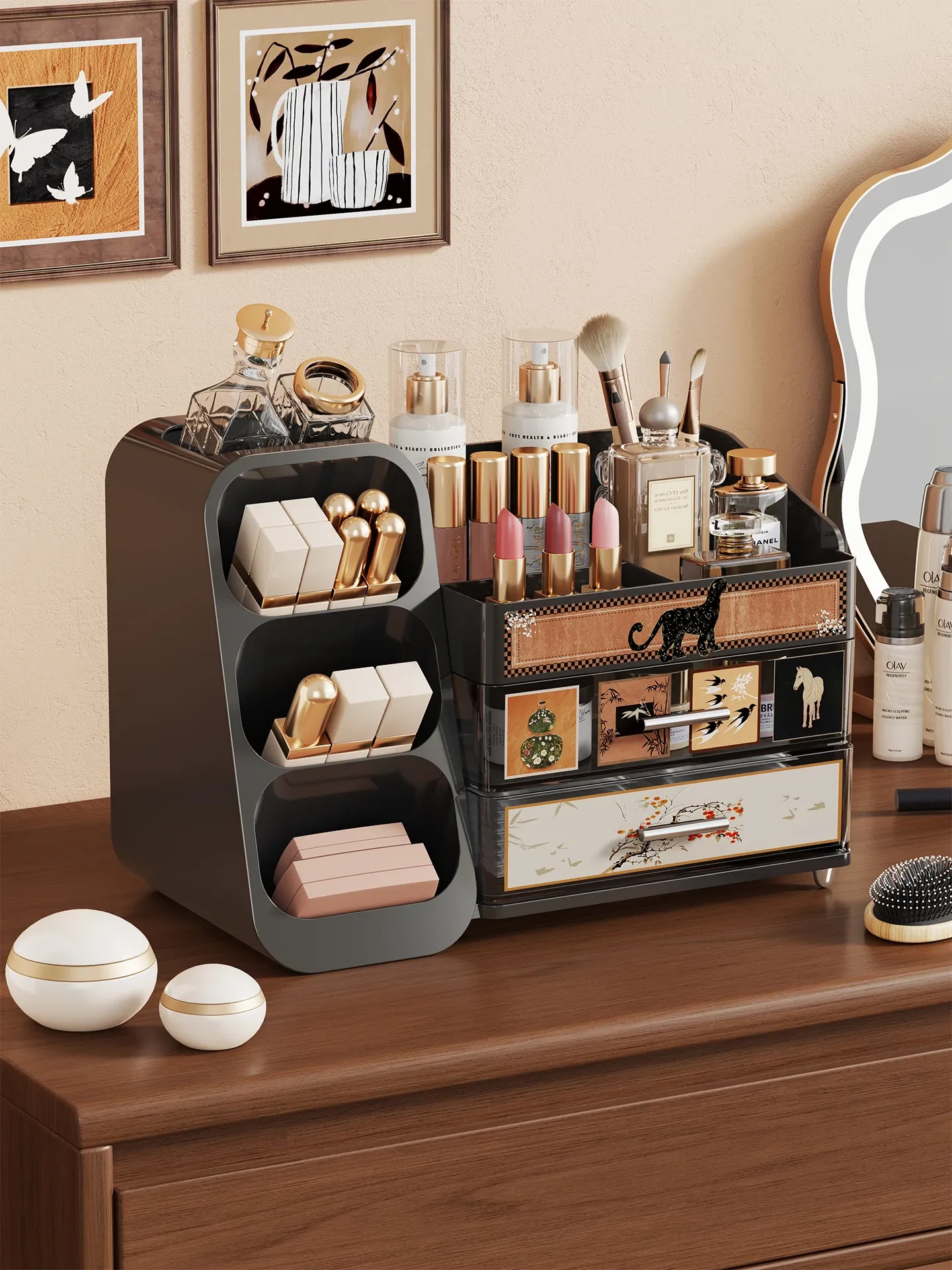 Elegant Large Capacity Makeup Organizer with Drawers - Multi-functional Storage Solution for Skincare and Cosmetics, Perfect for Your Dressing Table!
