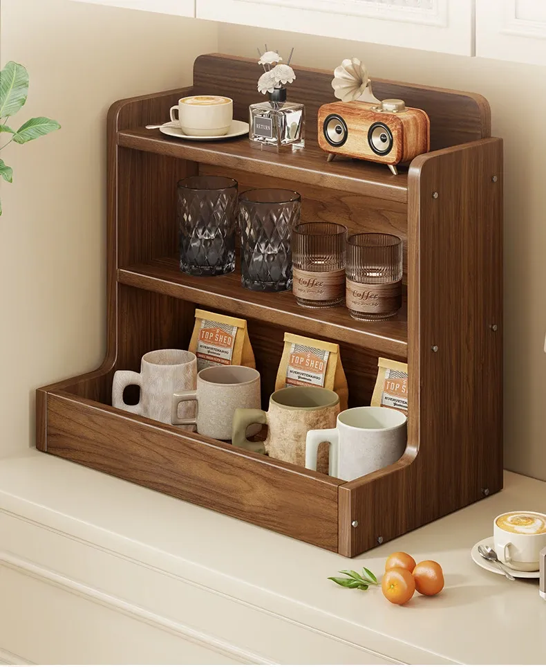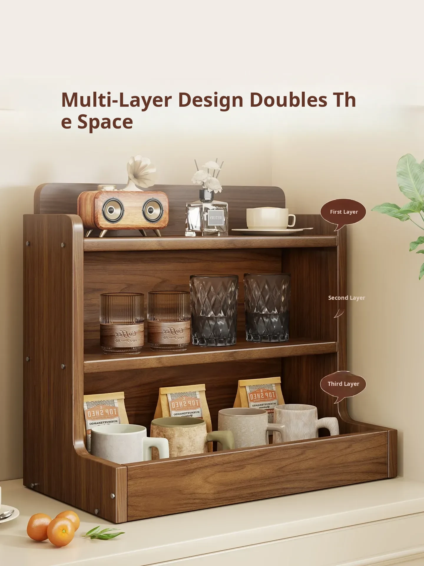 Elegant Tea Set Storage Rack - Multi-Functional Desktop Organizer for Teacups, Snacks, and Kitchen Essentials - Stylish Side Table Cabinet for Dining Room and Kitchen - Perfect for Tidying Up Your Space!