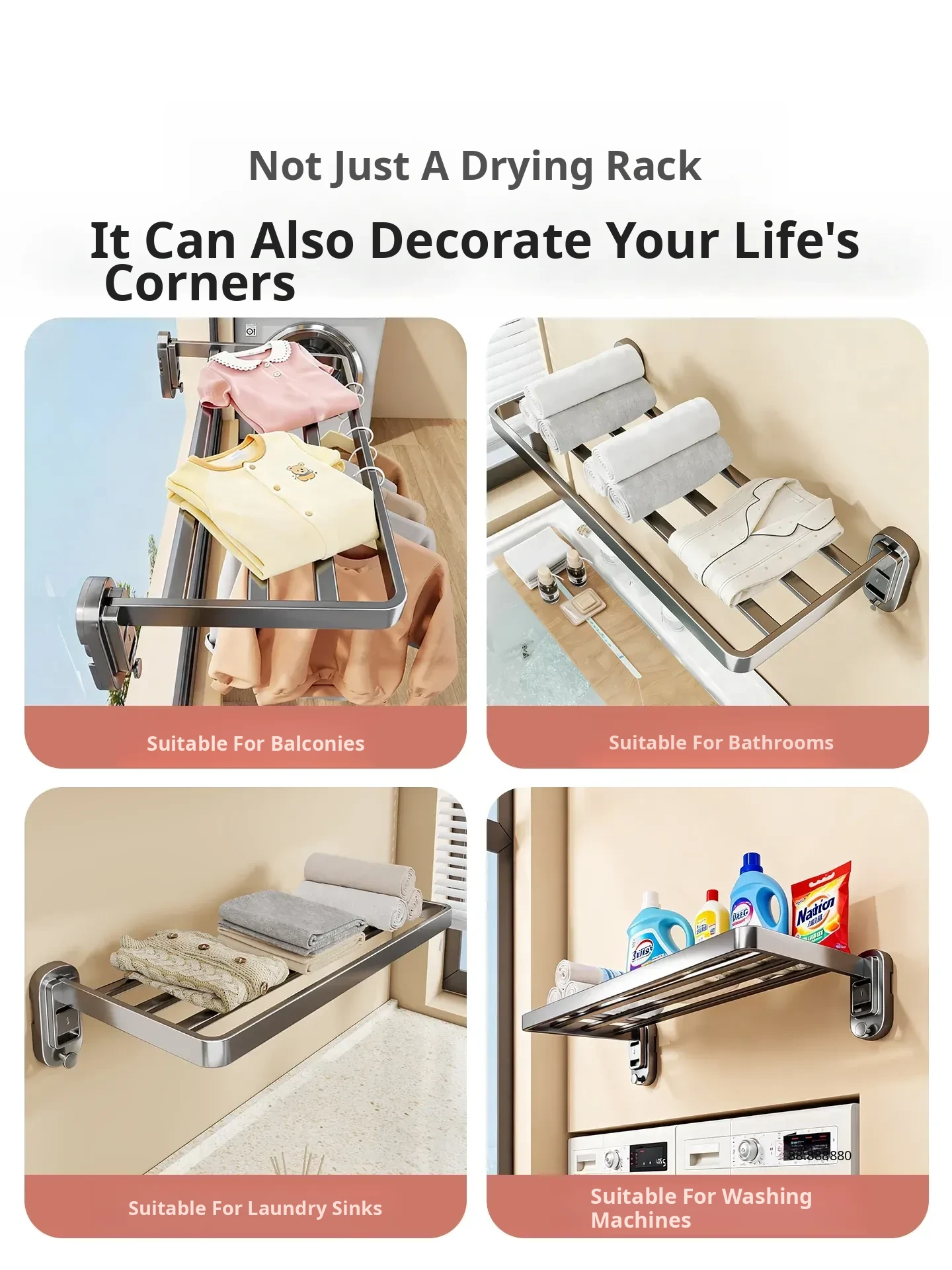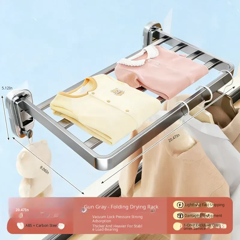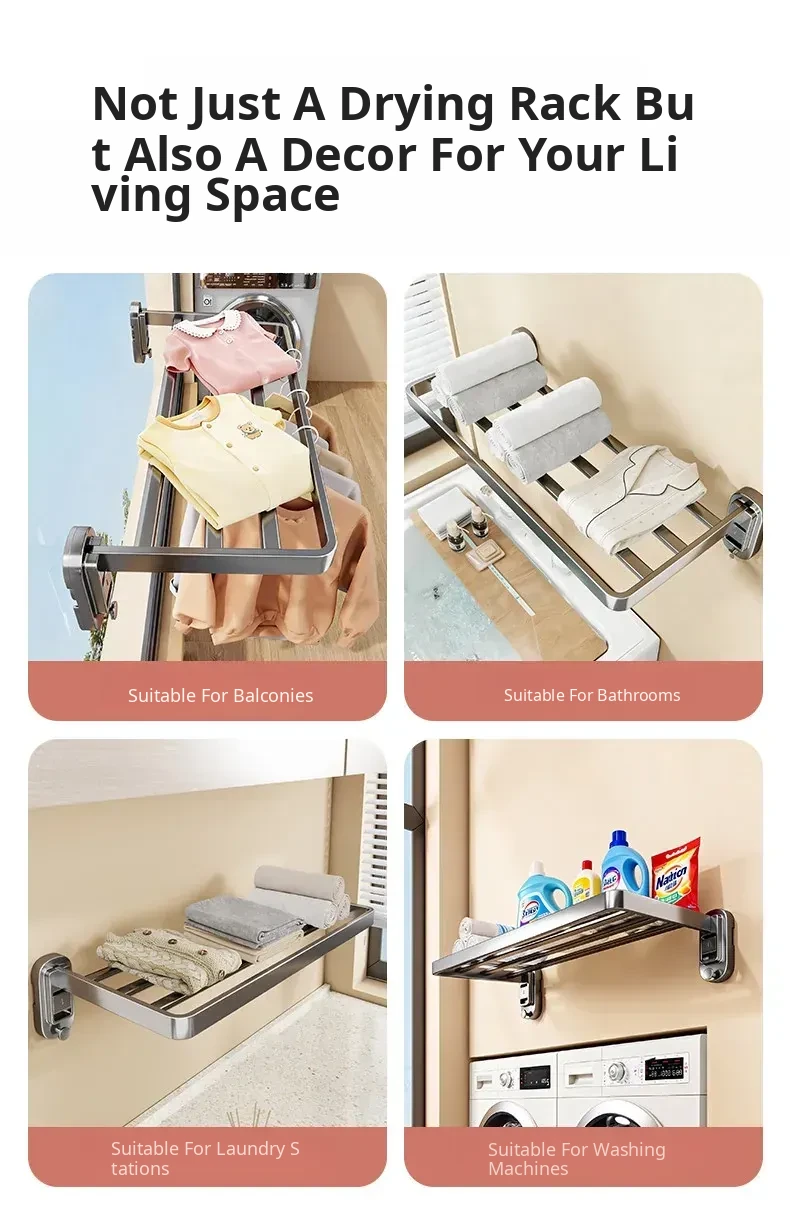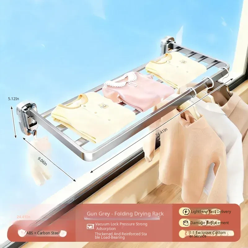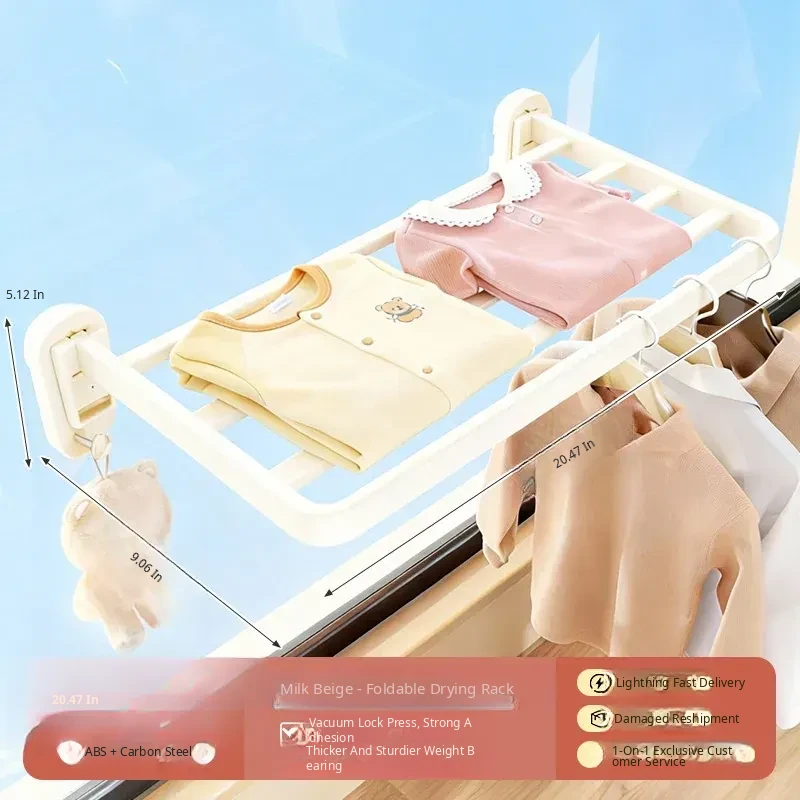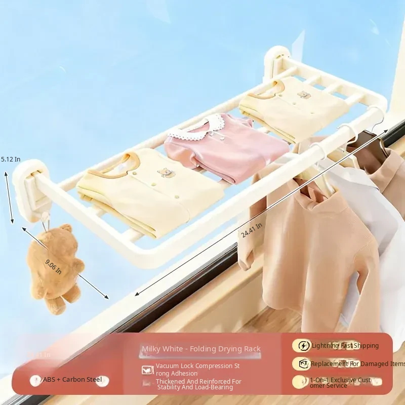 Foldable Balcony Clothes Drying Rack - No Drilling, Suction Cup Design, Compact and Convenient Laundry Solution for Home Use