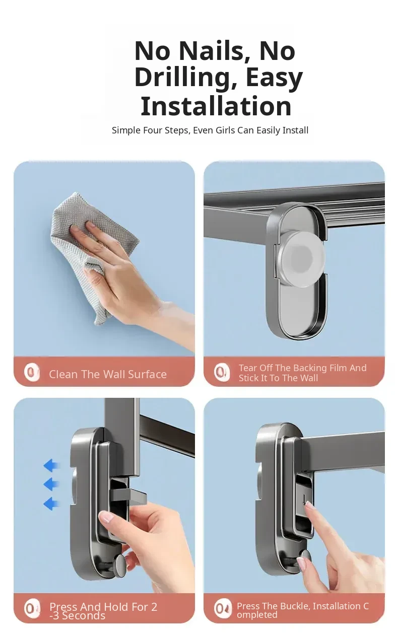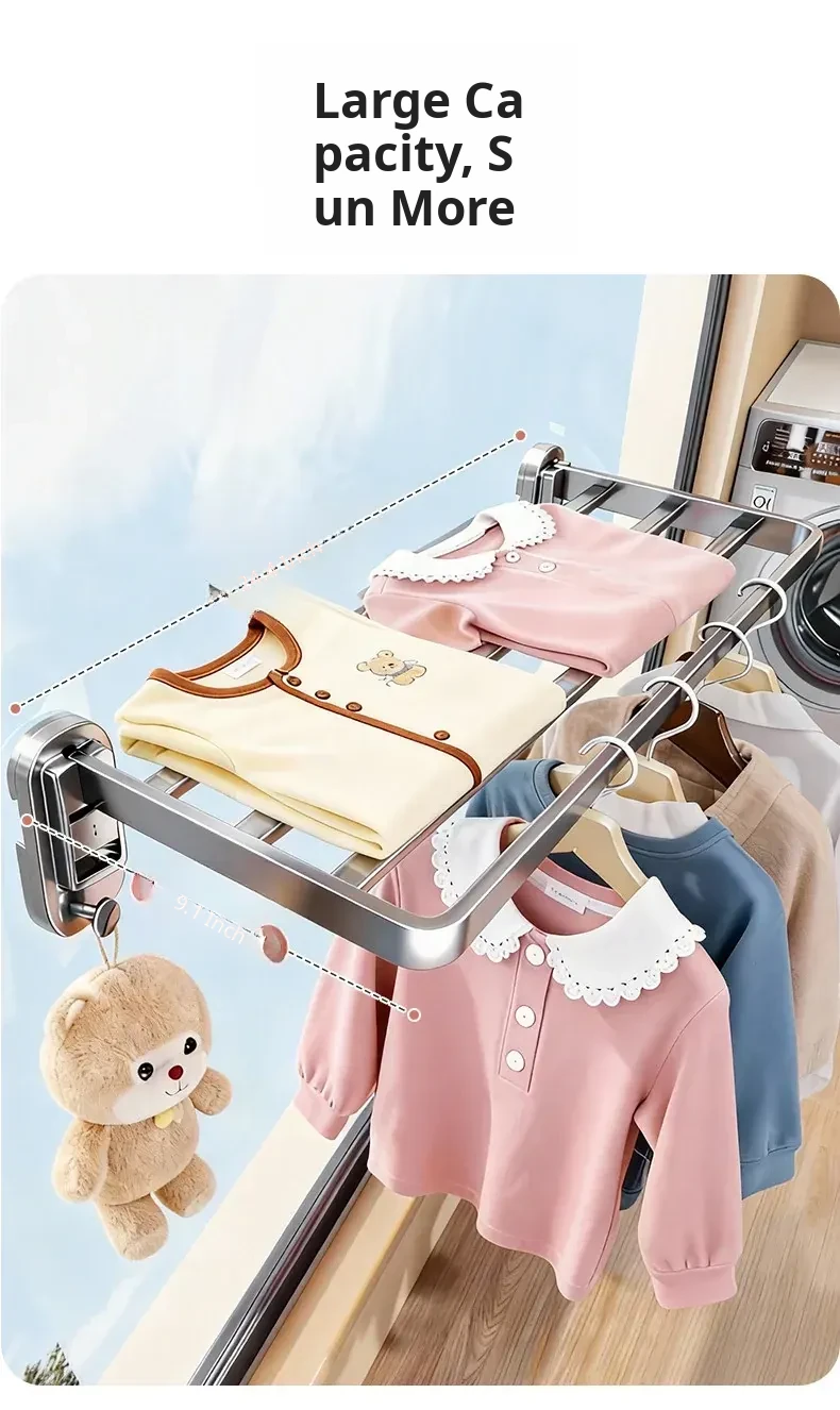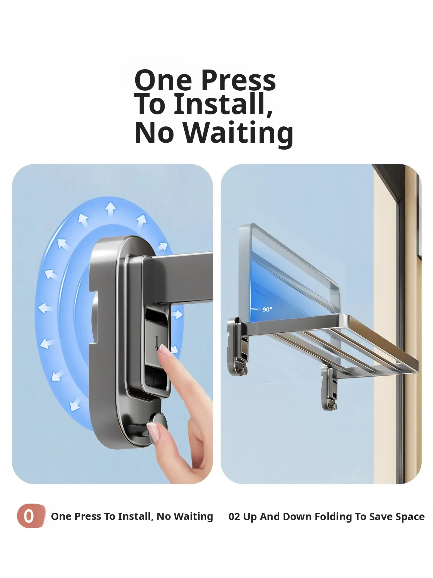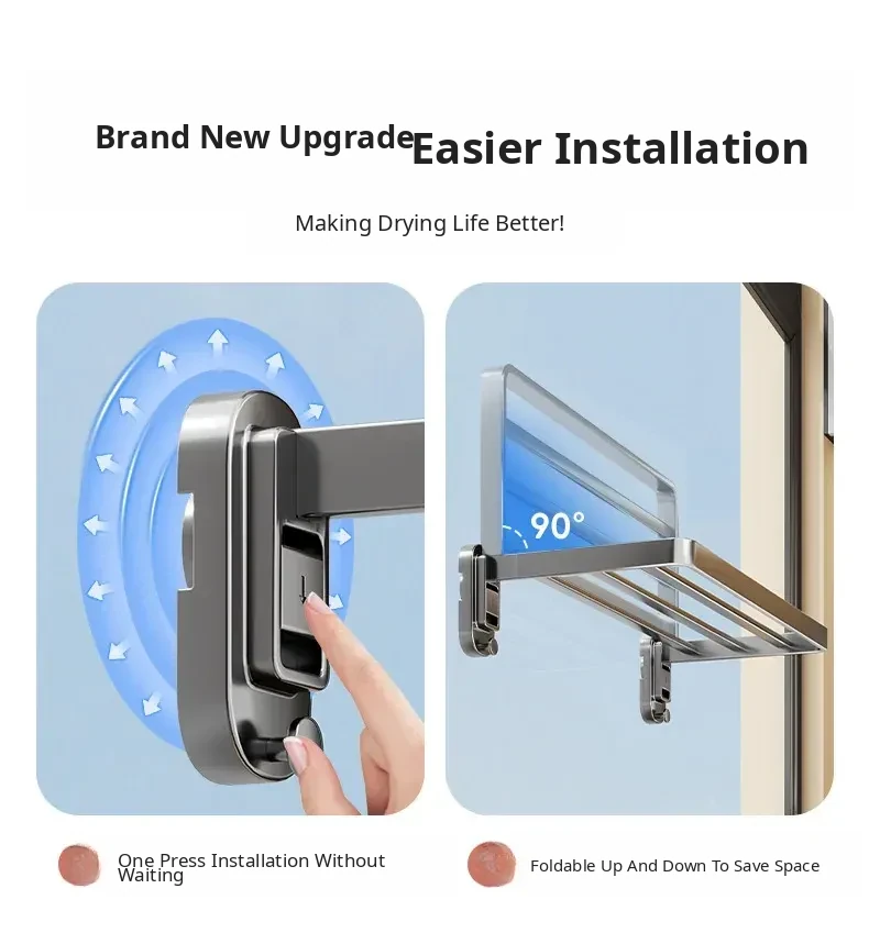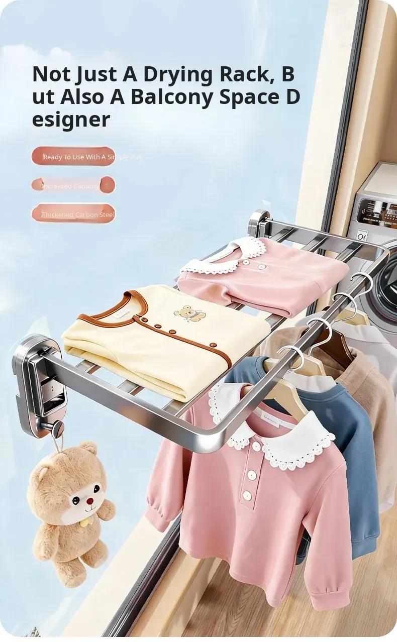 Foldable Balcony Clothes Drying Rack - No Drilling, Suction Cup Design, Compact and Convenient Laundry Solution for Home Use