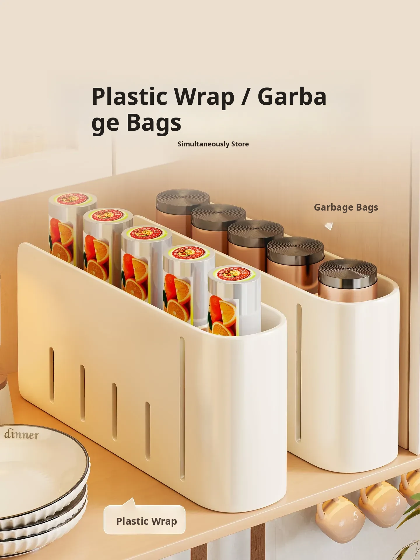 Cream White-Garbage Bag Storage Box [Seamless Sticker Nail-Free Installation]