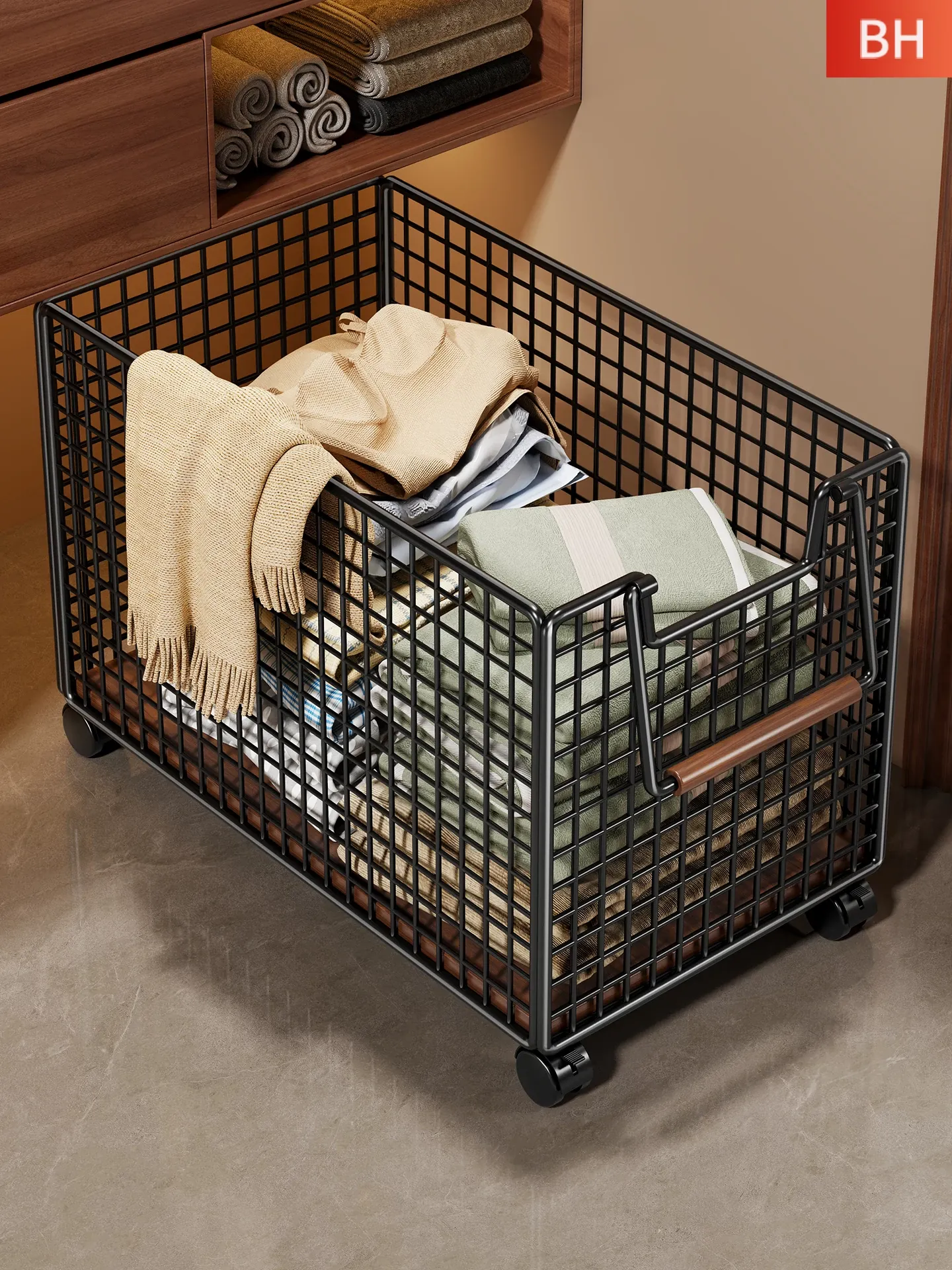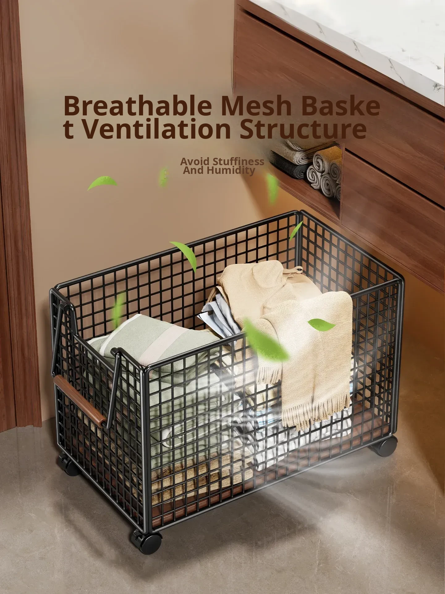Large Capacity Laundry Basket with Wheels - Portable and Movable Hamper for Home, Perfect for Bathroom and Laundry Room Storage