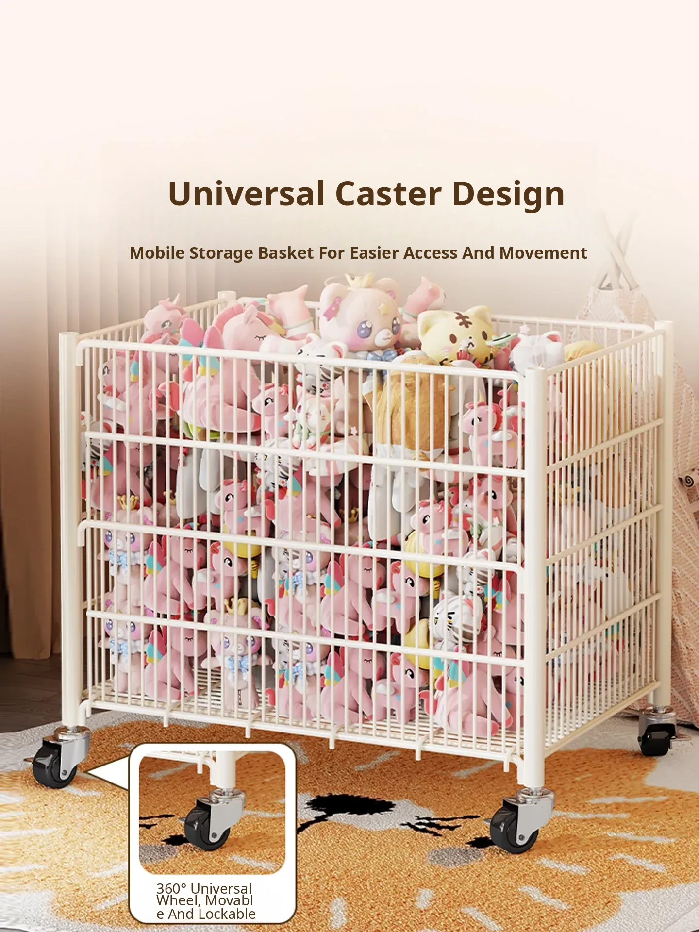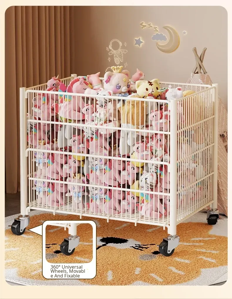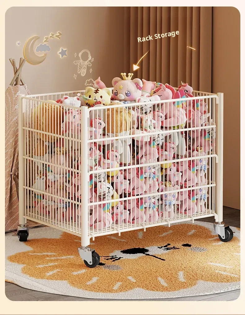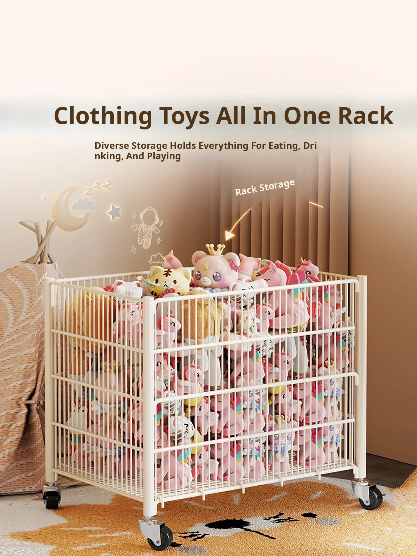 Large Capacity Toy Storage Rack for Kindergarten - Movable Doll Organizer and Kids' Room Display Shelf for Stuffed Animals and Figurines
