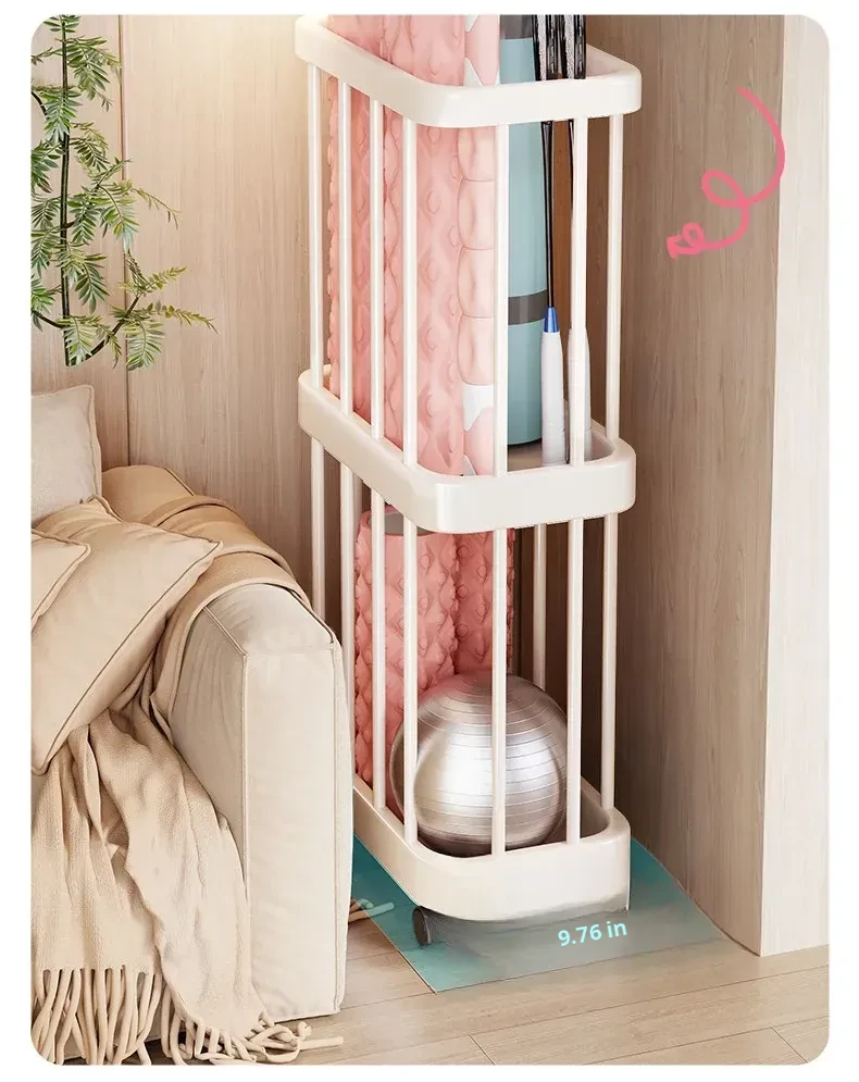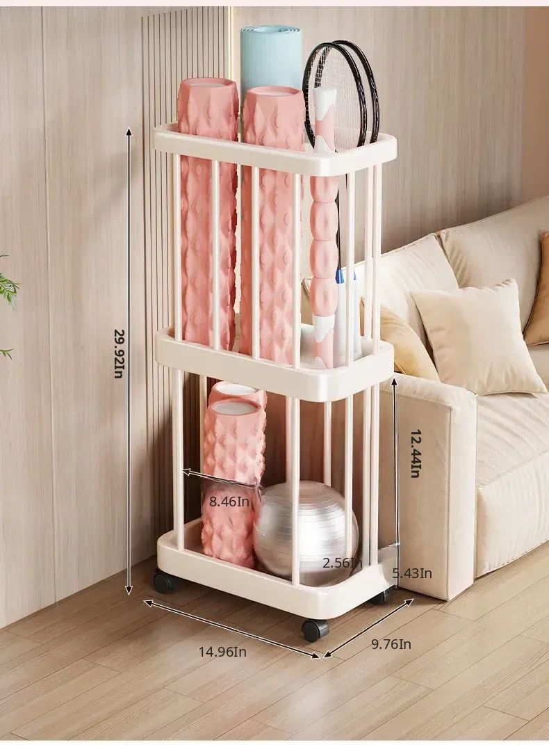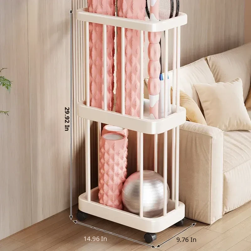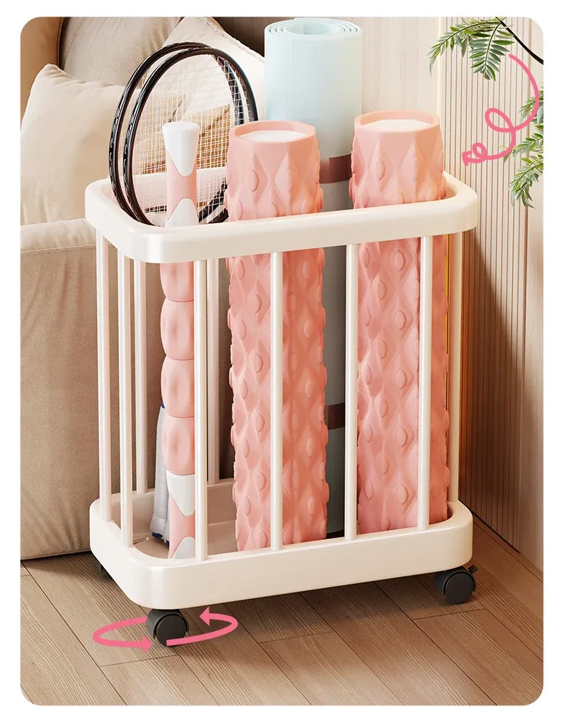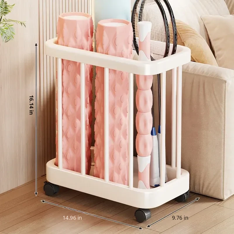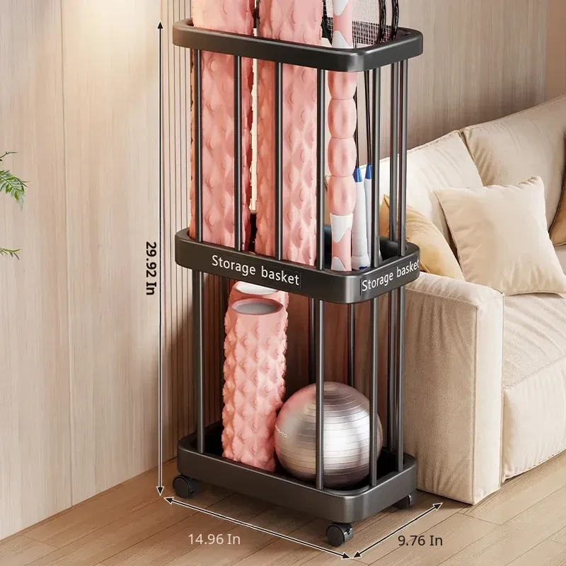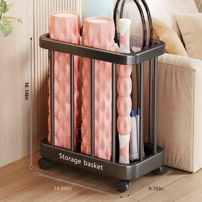 Large Capacity Yoga Mat Storage Basket with Wheels - Multi-layer Foam Roller Organizer for Home Gym Equipment, Portable and Convenient