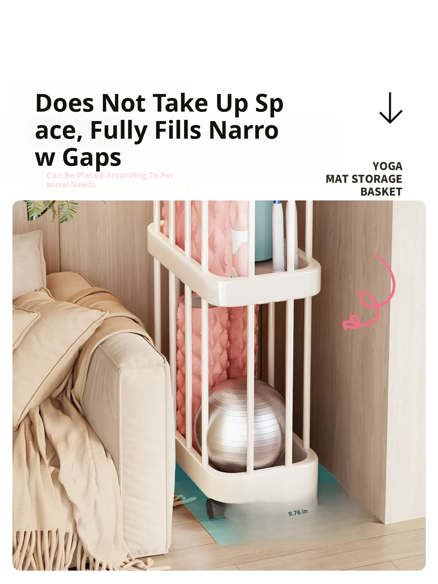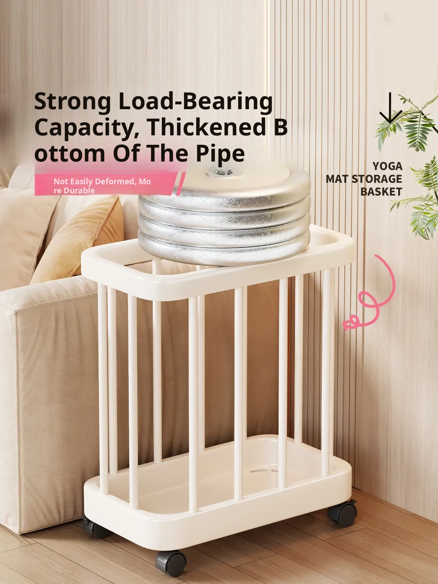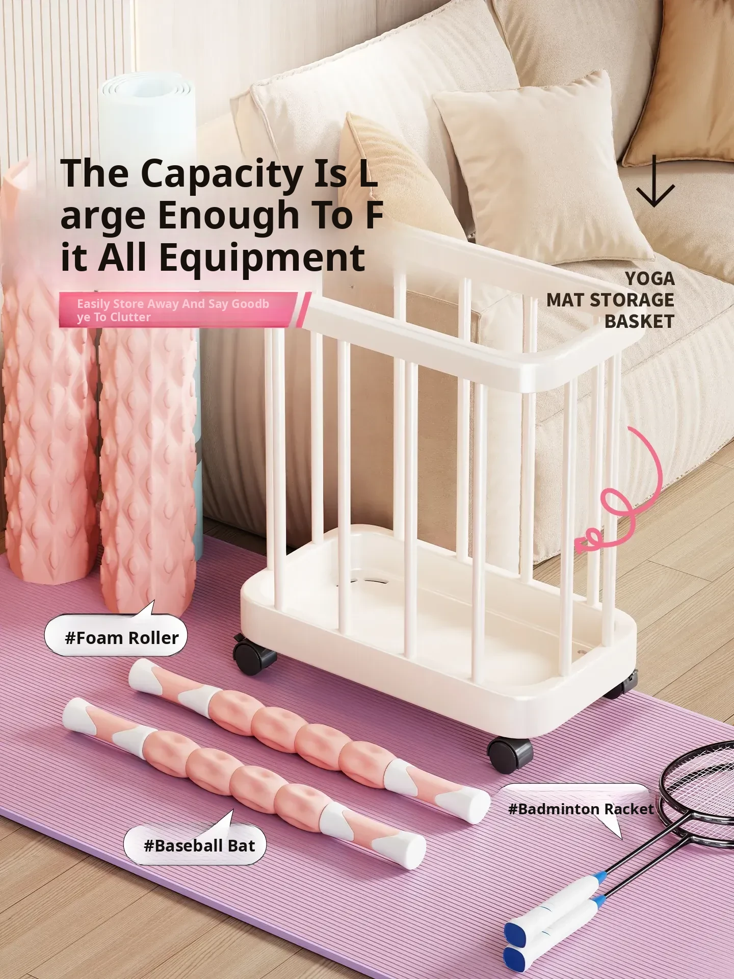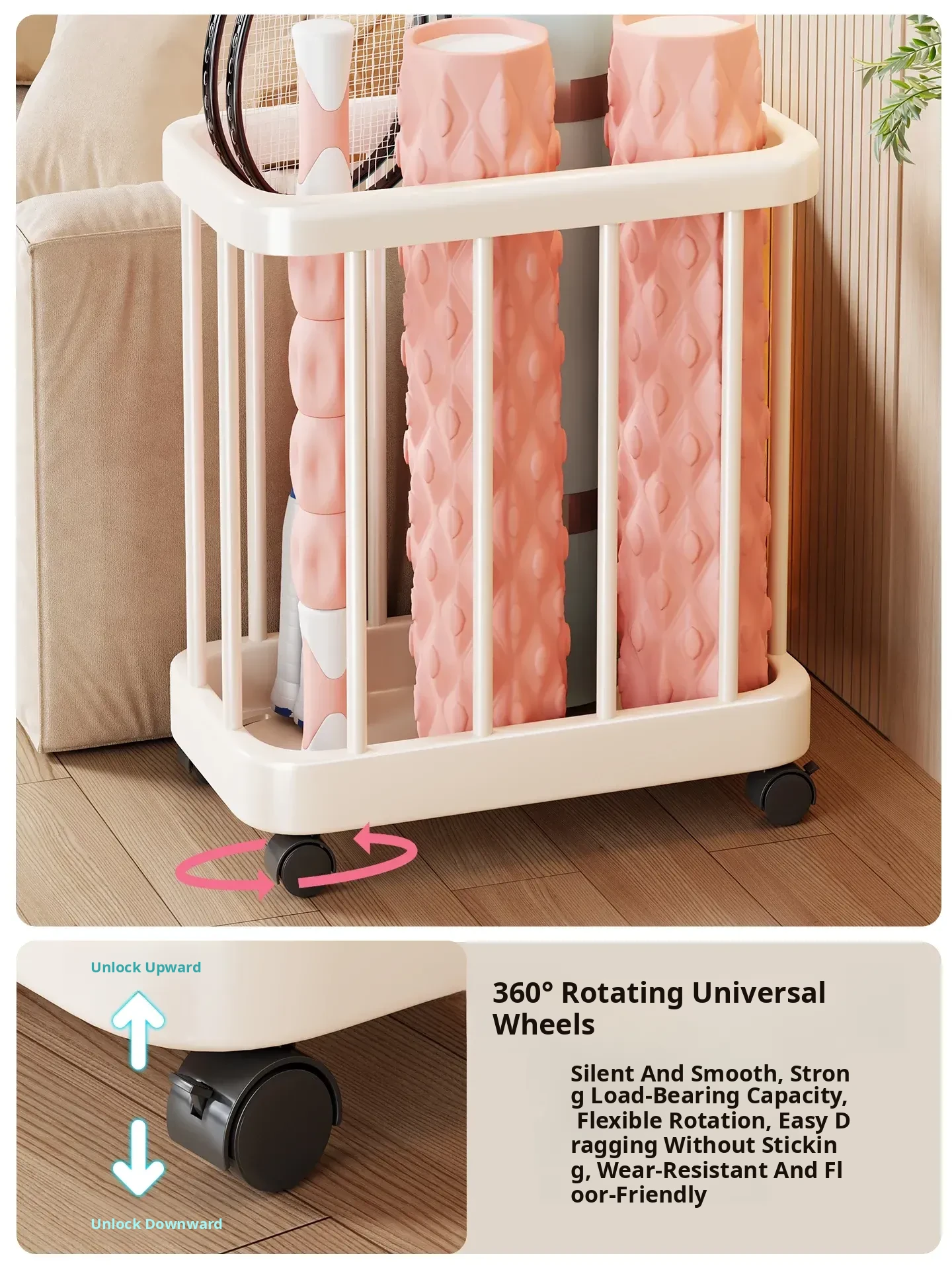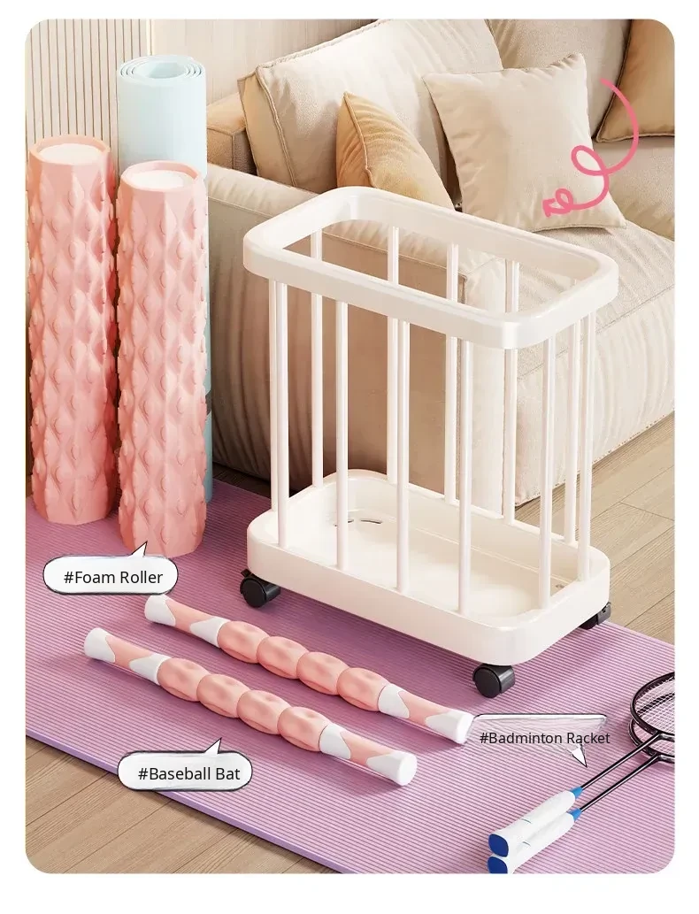 Large Capacity Yoga Mat Storage Basket with Wheels - Multi-layer Foam Roller Organizer for Home Gym Equipment, Portable and Convenient