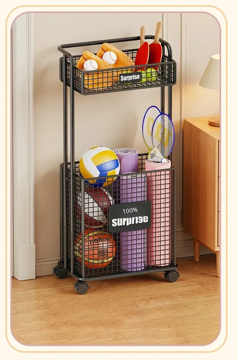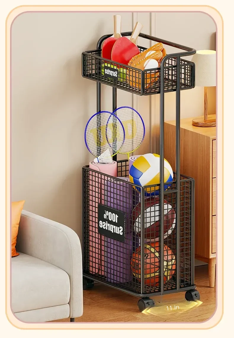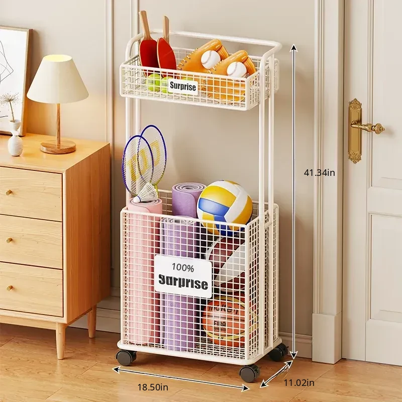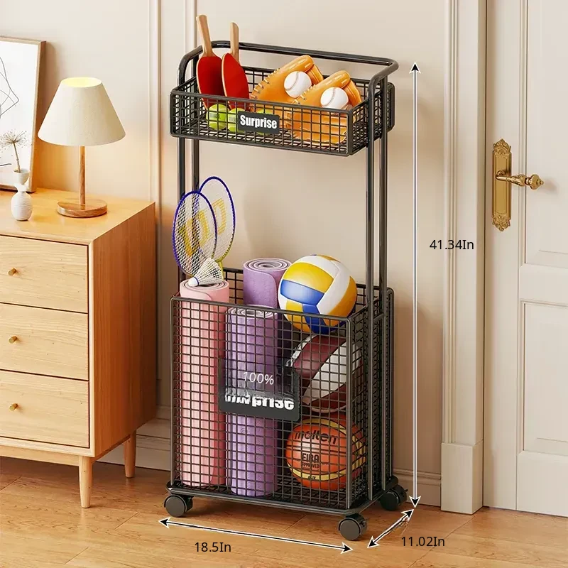 Large Capacity Yoga Mat Storage Basket with Wheels - Portable Organizer for Home, Perfect for Sports Equipment and Badminton Racket Storage