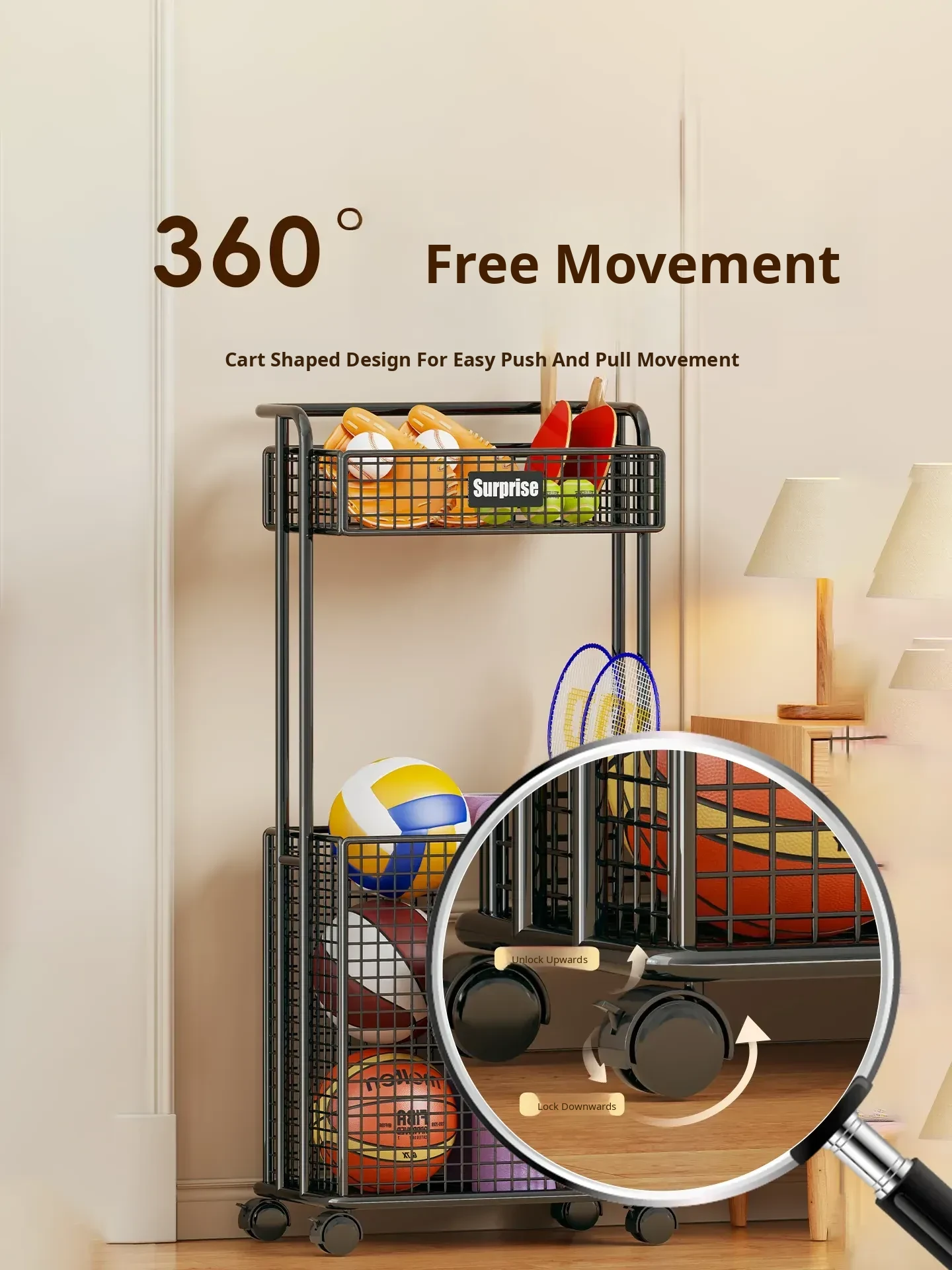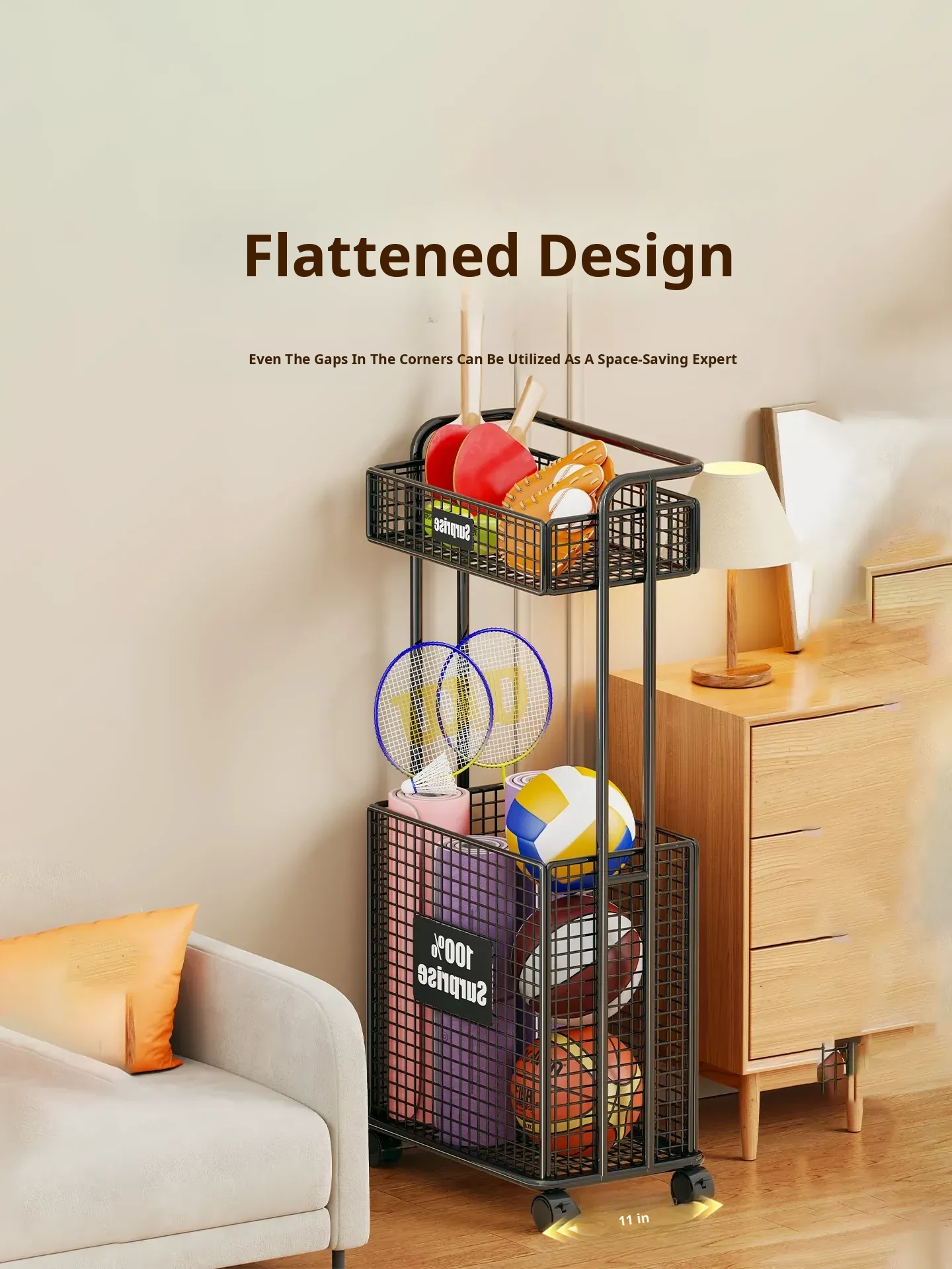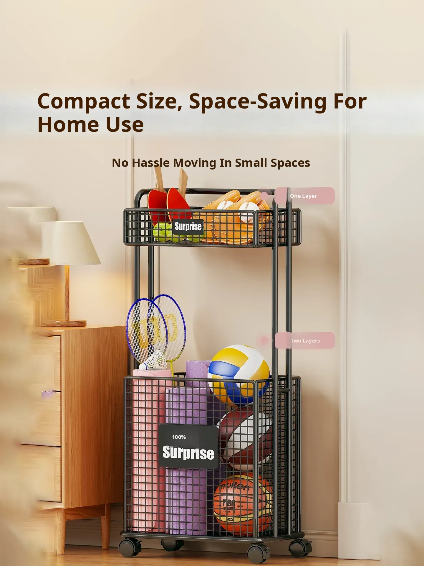 Large Capacity Yoga Mat Storage Basket with Wheels - Portable Organizer for Home, Perfect for Sports Equipment and Badminton Racket Storage