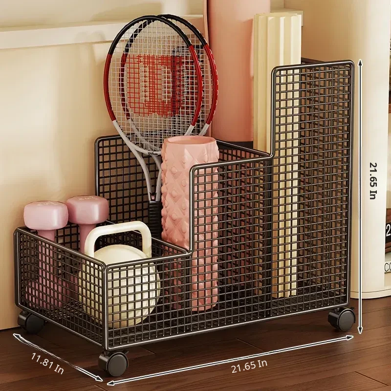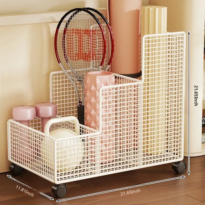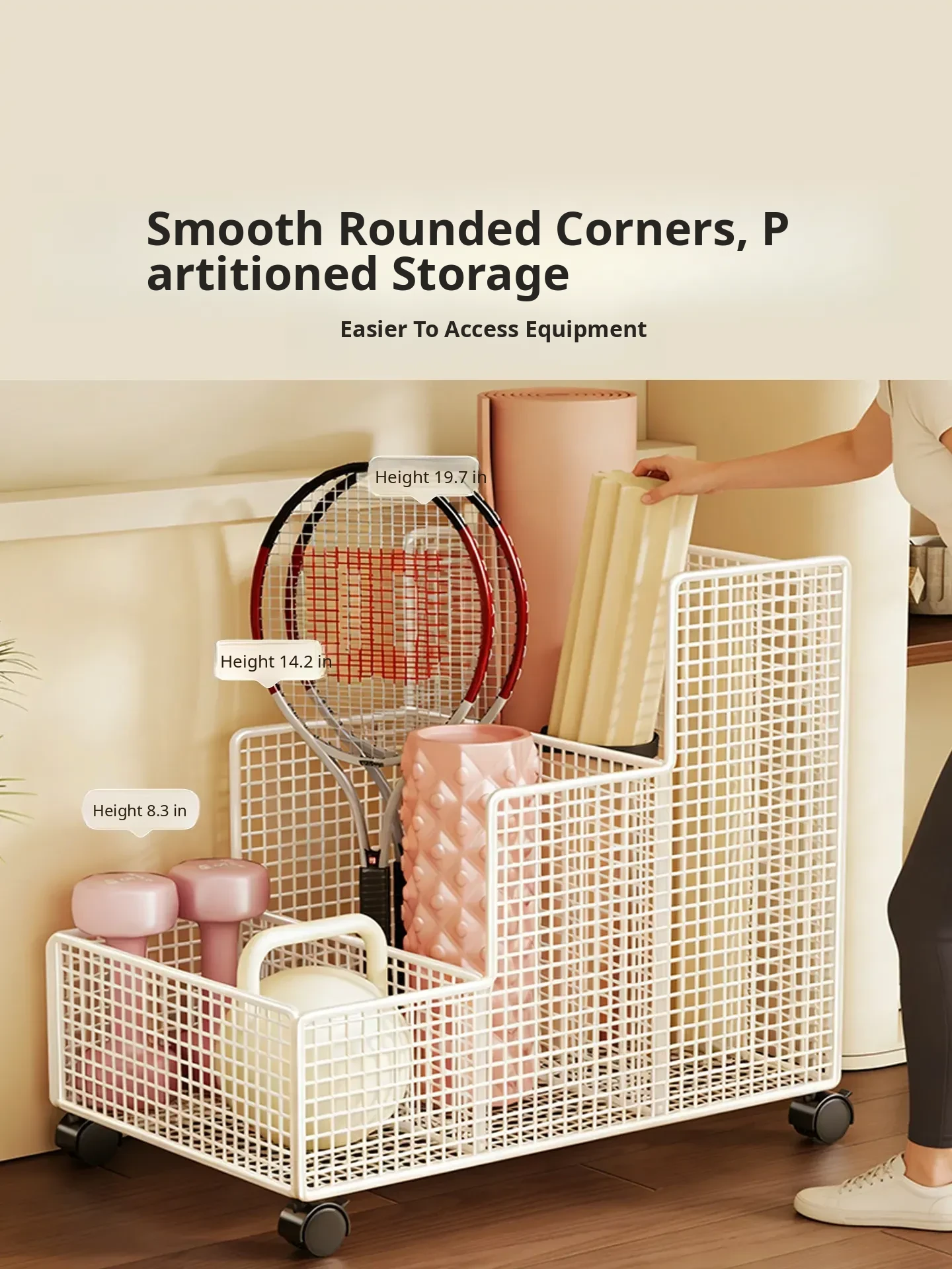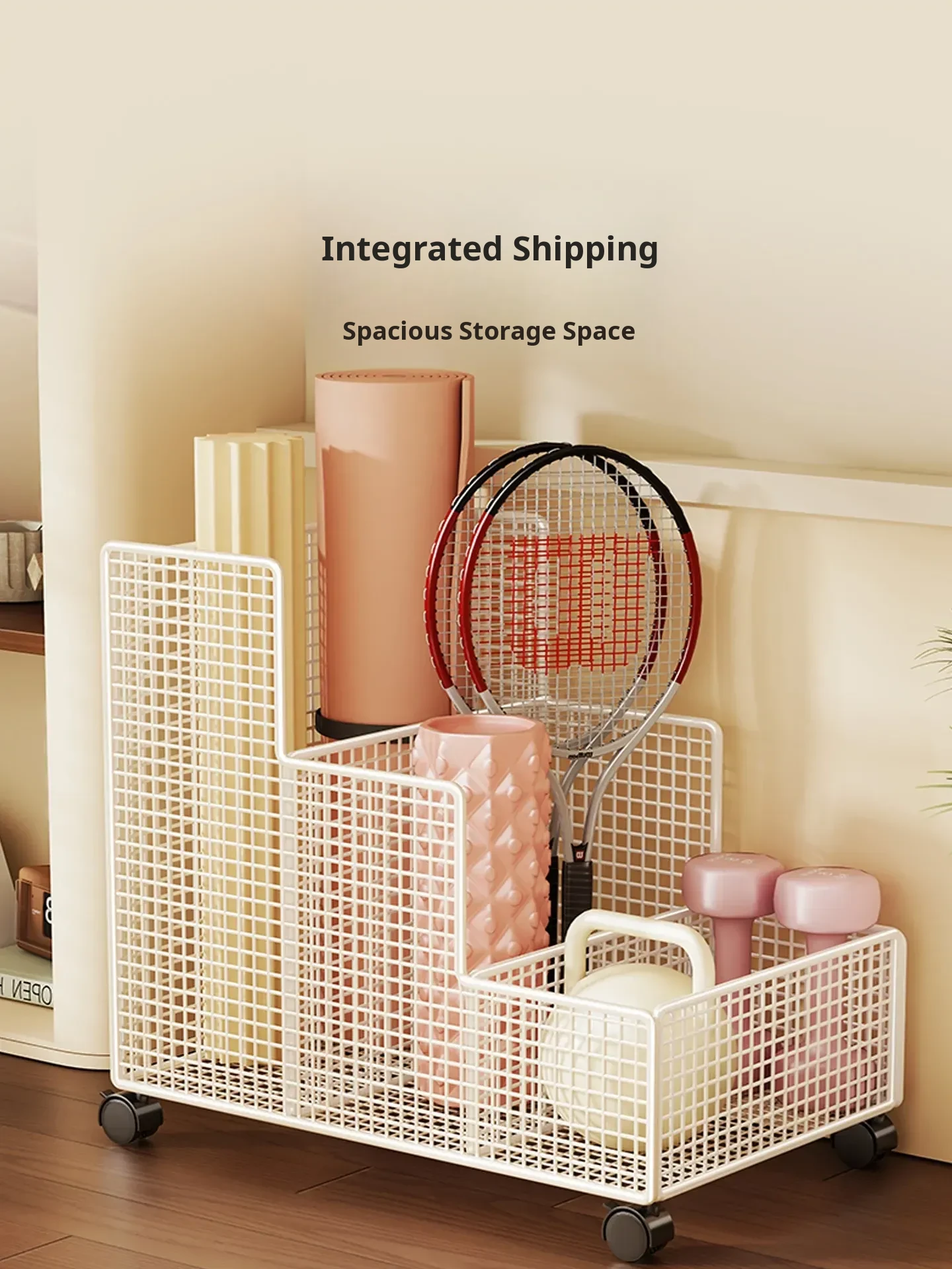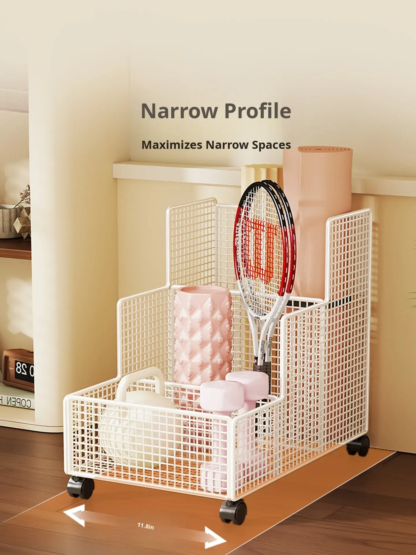 Large Capacity Yoga Mat Storage Basket with Wheels - Portable Organizer for Sports Equipment and Fitness Gear, Perfect for Narrow Spaces and Home Use!