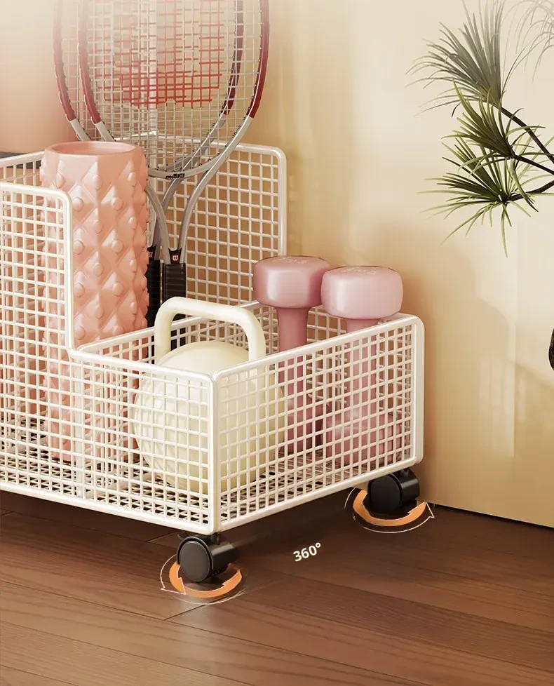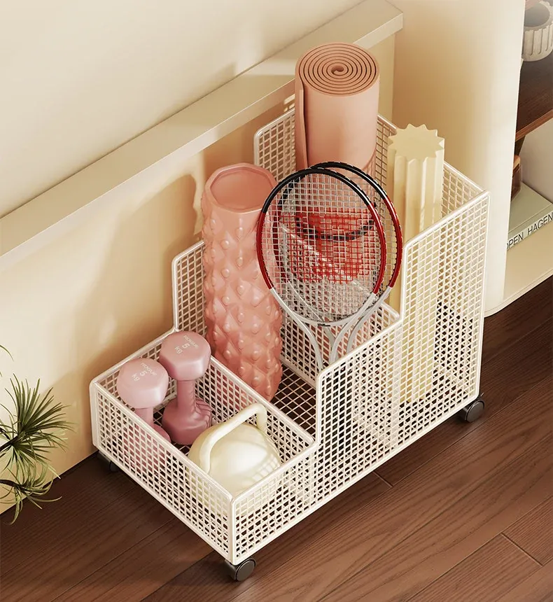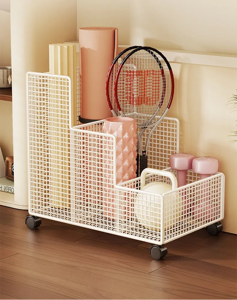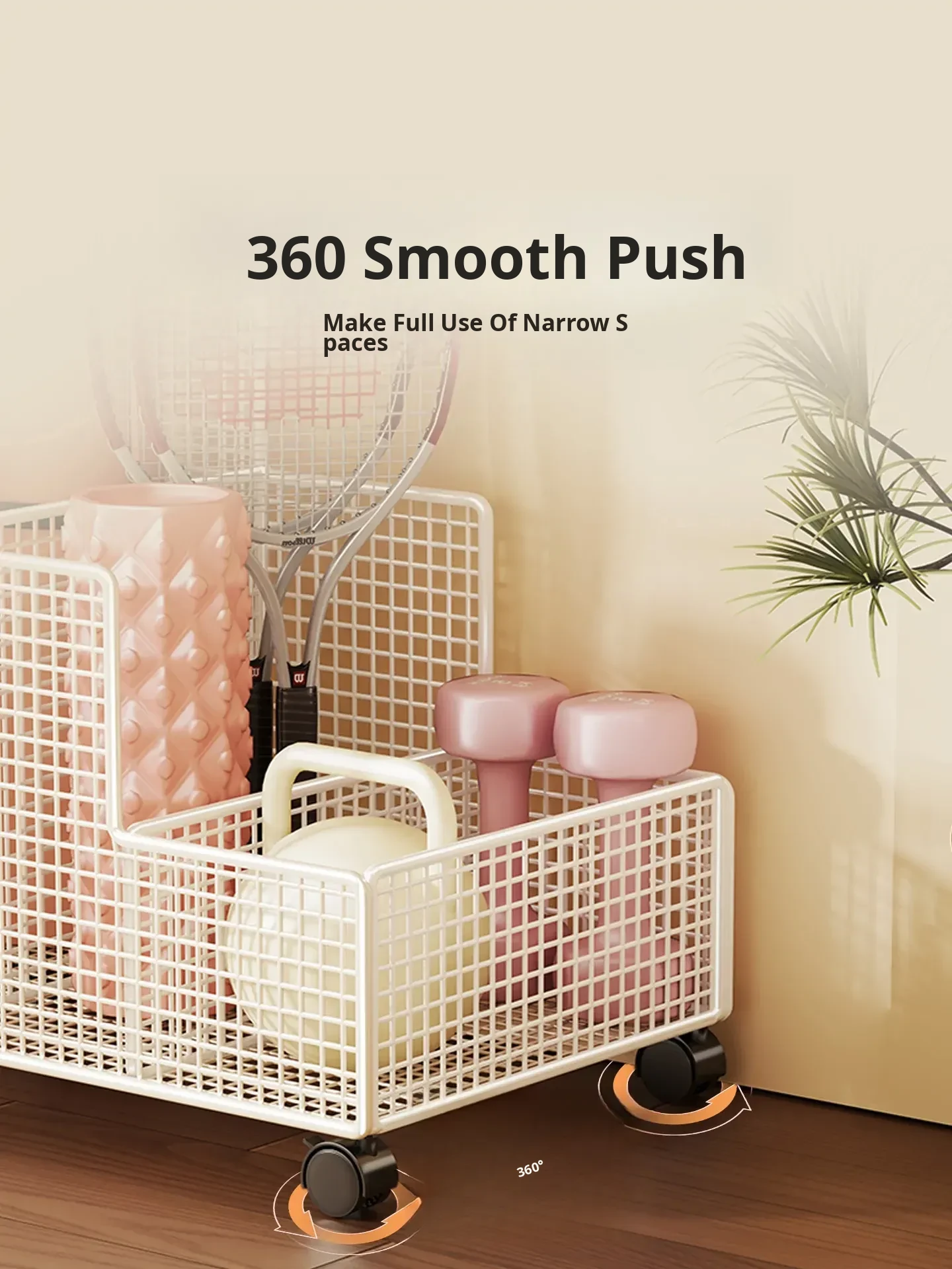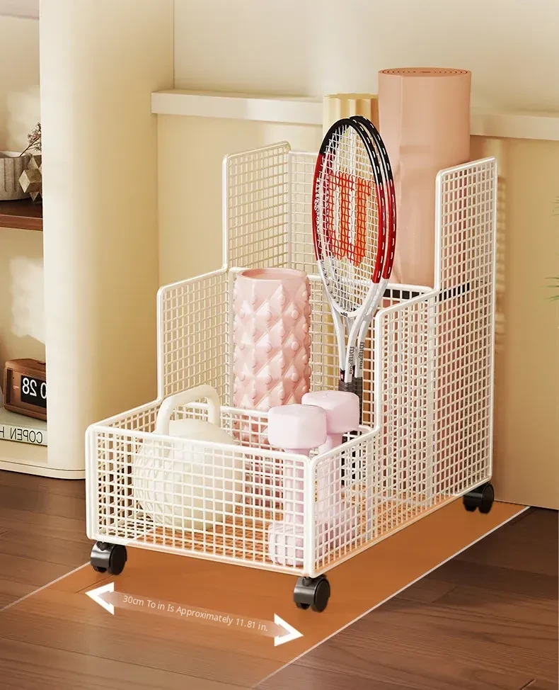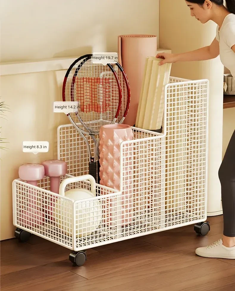Large Capacity Yoga Mat Storage Basket with Wheels - Portable Organizer for Sports Equipment and Fitness Gear, Perfect for Narrow Spaces and Home Use!