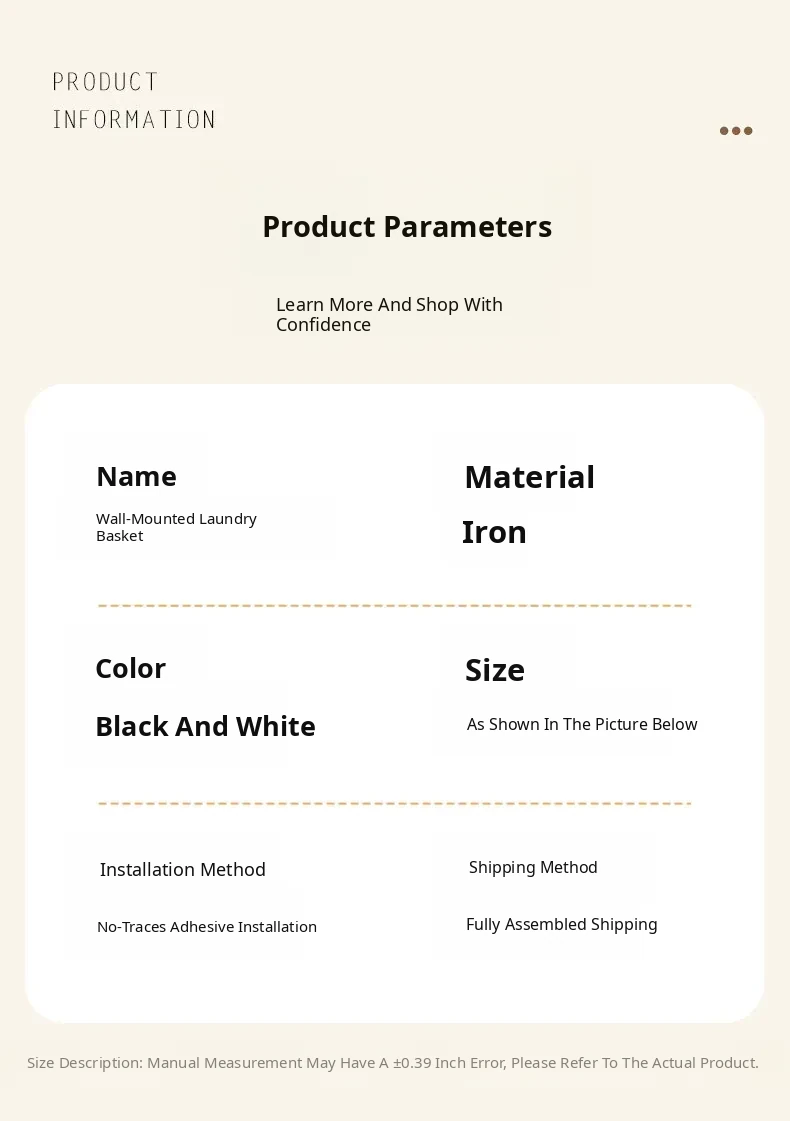 Large Wall-Mounted Laundry Basket - No Drilling Needed, Perfect for Bathroom and Laundry Room, Ideal Storage Solution for Dirty Clothes