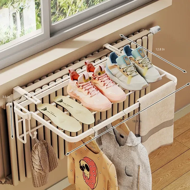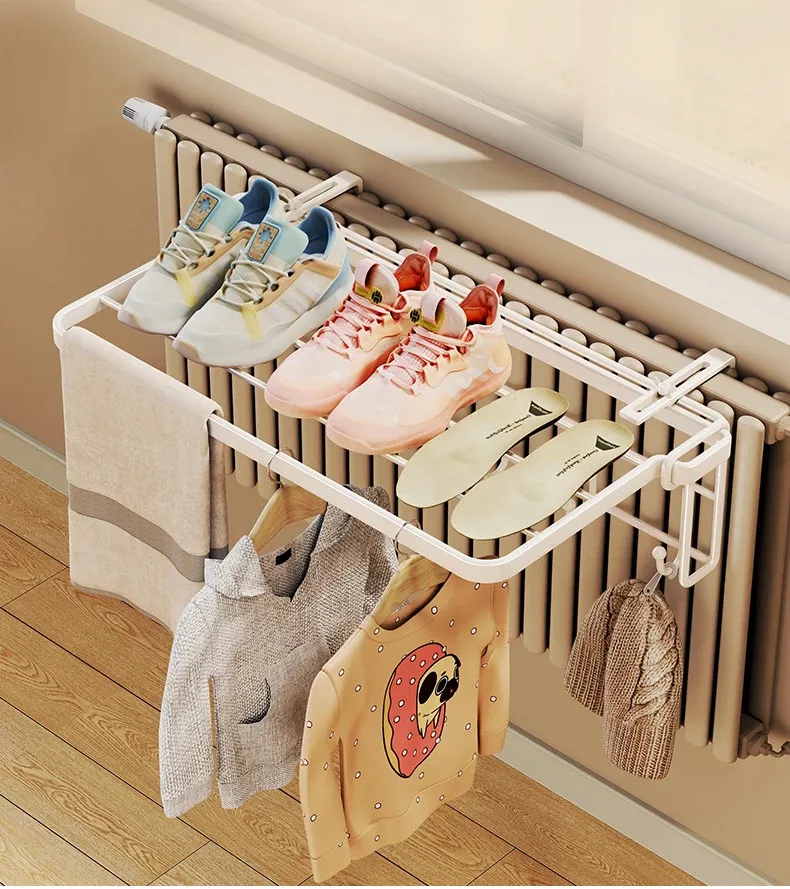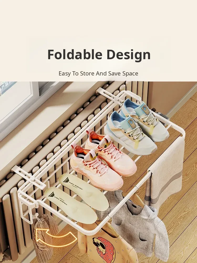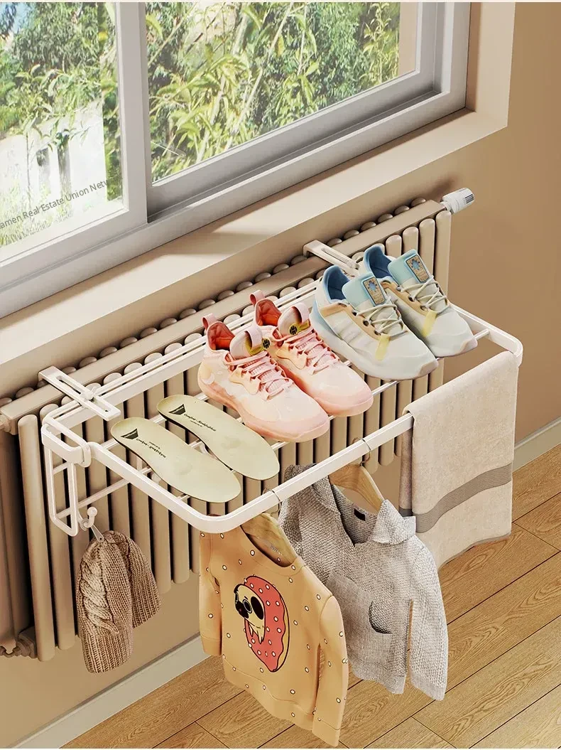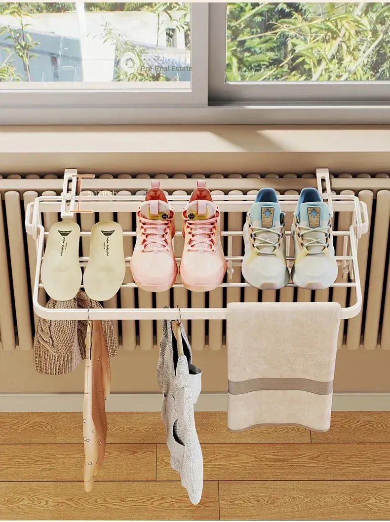 Magic Space-Saving Clothes Drying Rack for Radiators - Foldable and Versatile Home Organizer with Hooks for Efficient Clothing Storage and Easy Drying!