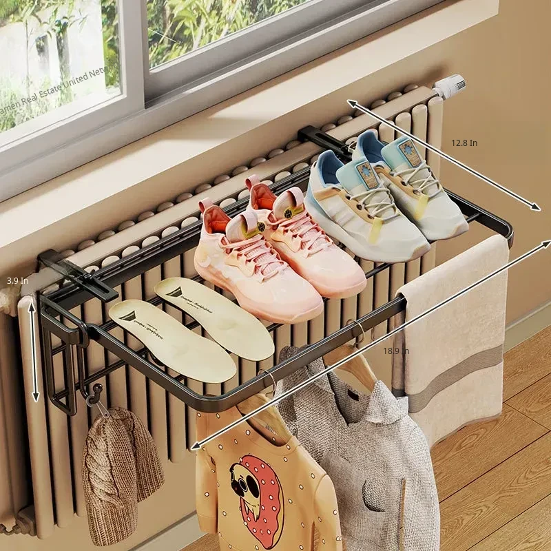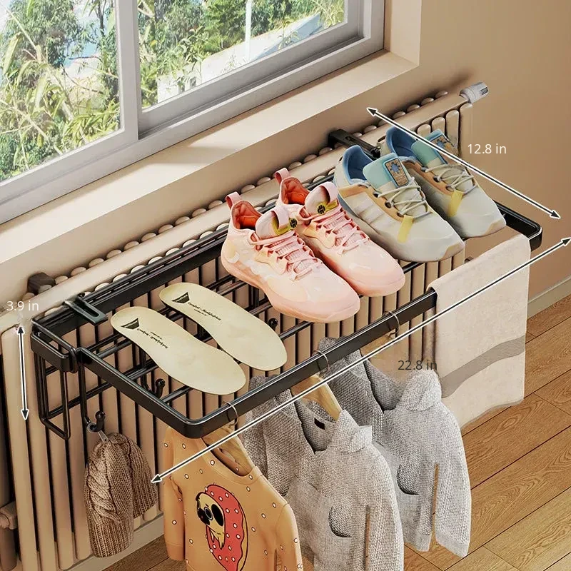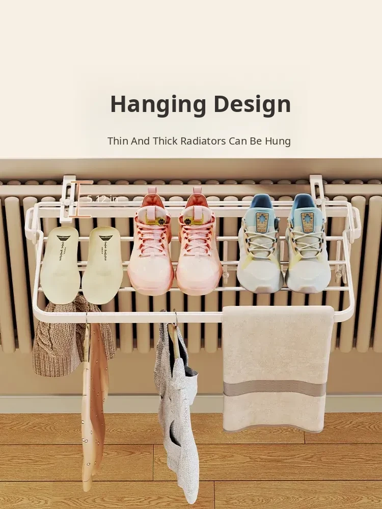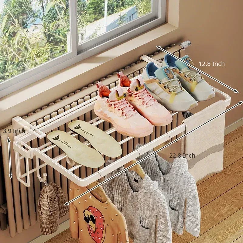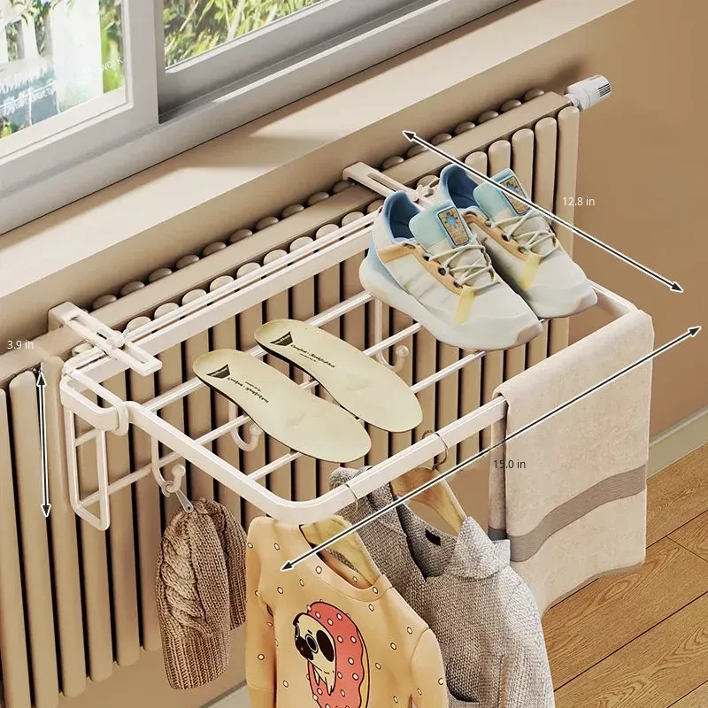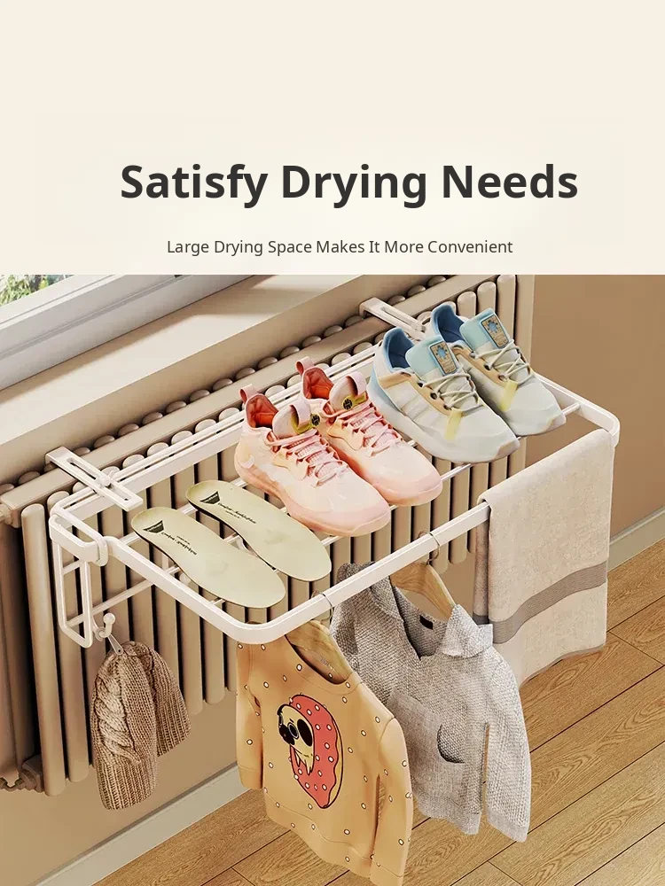 Magic Space-Saving Clothes Drying Rack for Radiators - Foldable and Versatile Home Organizer with Hooks for Efficient Clothing Storage and Easy Drying!