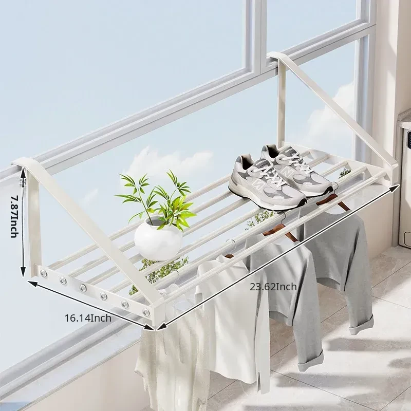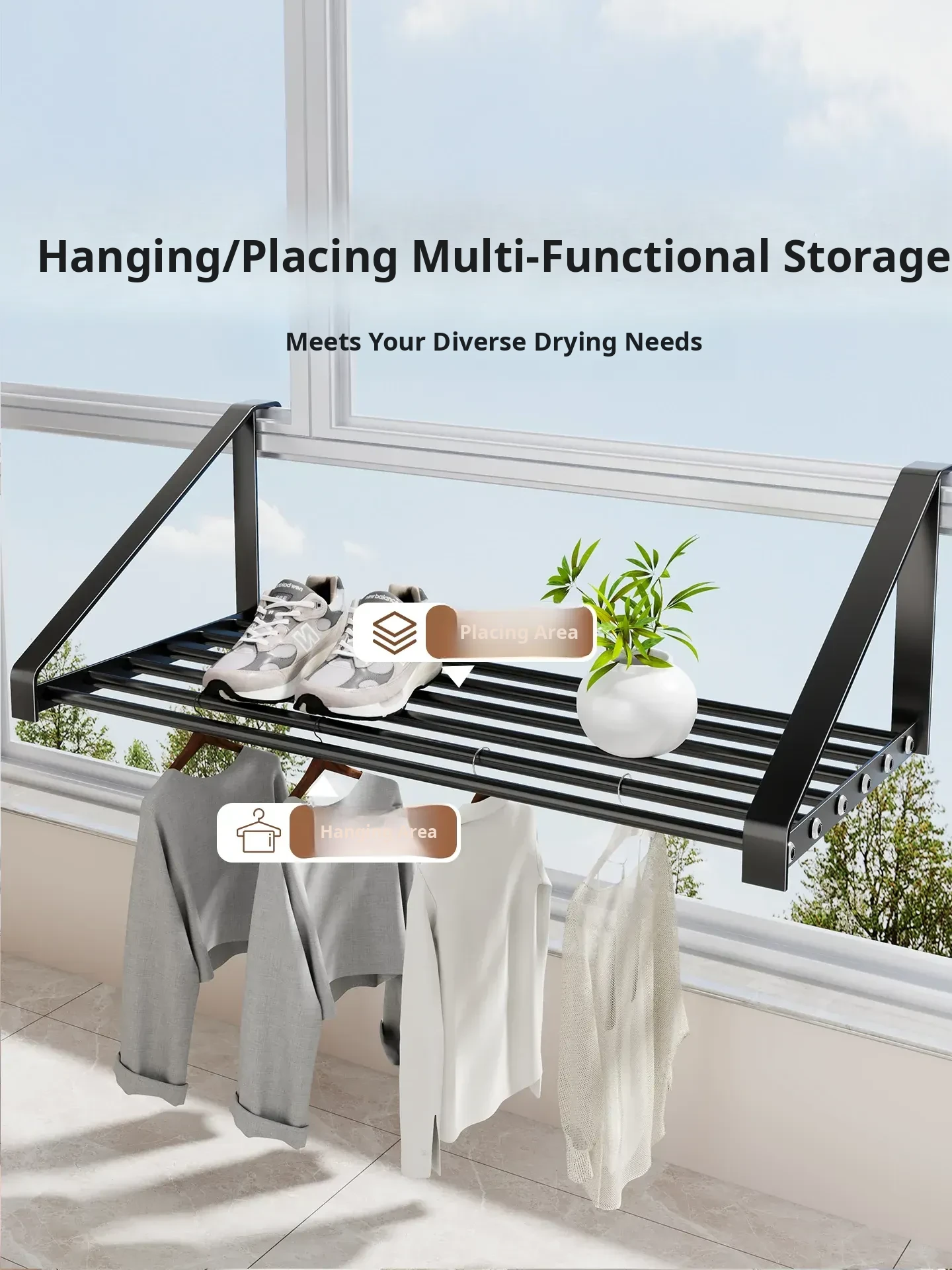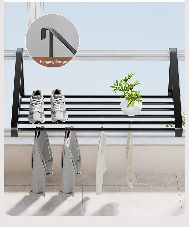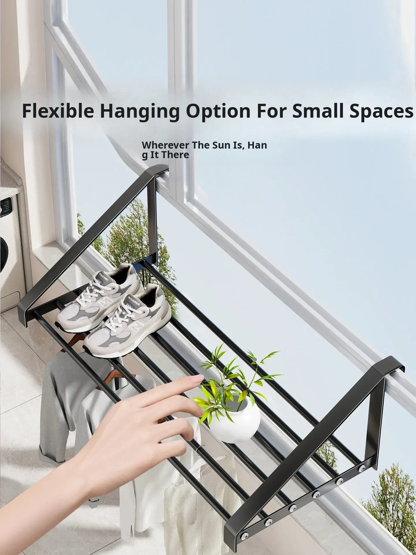 Multifunctional Balcony Clothes Drying Rack - Space-Saving Storage Rail with Hooks for Outdoor Use, Perfect for Drying Clothes and Organizing Shoes! Ideal Home Solution!