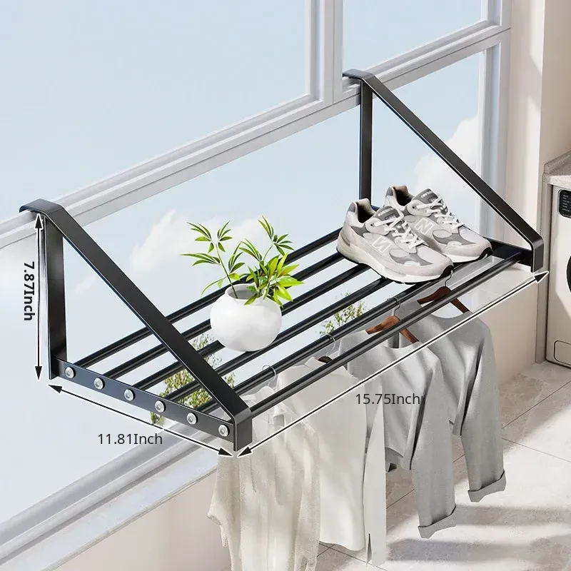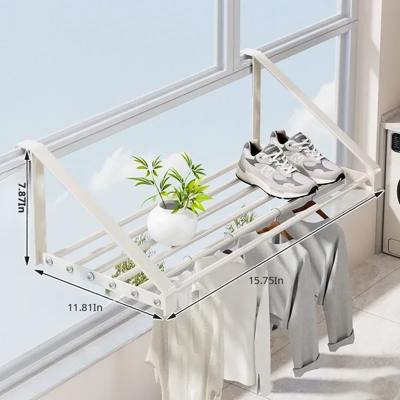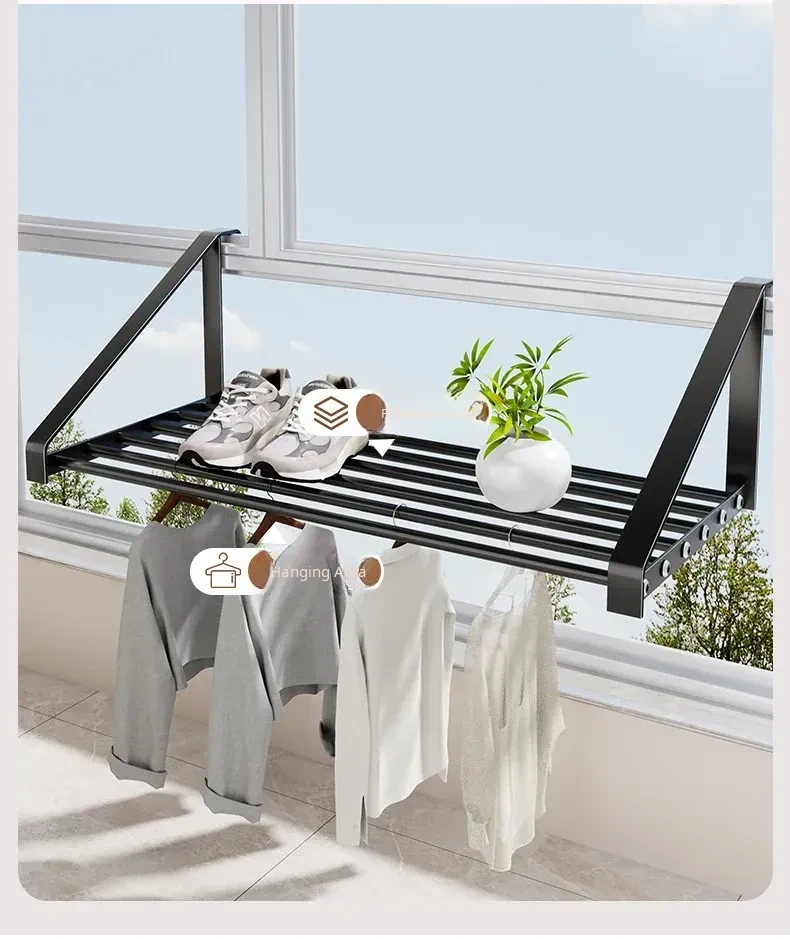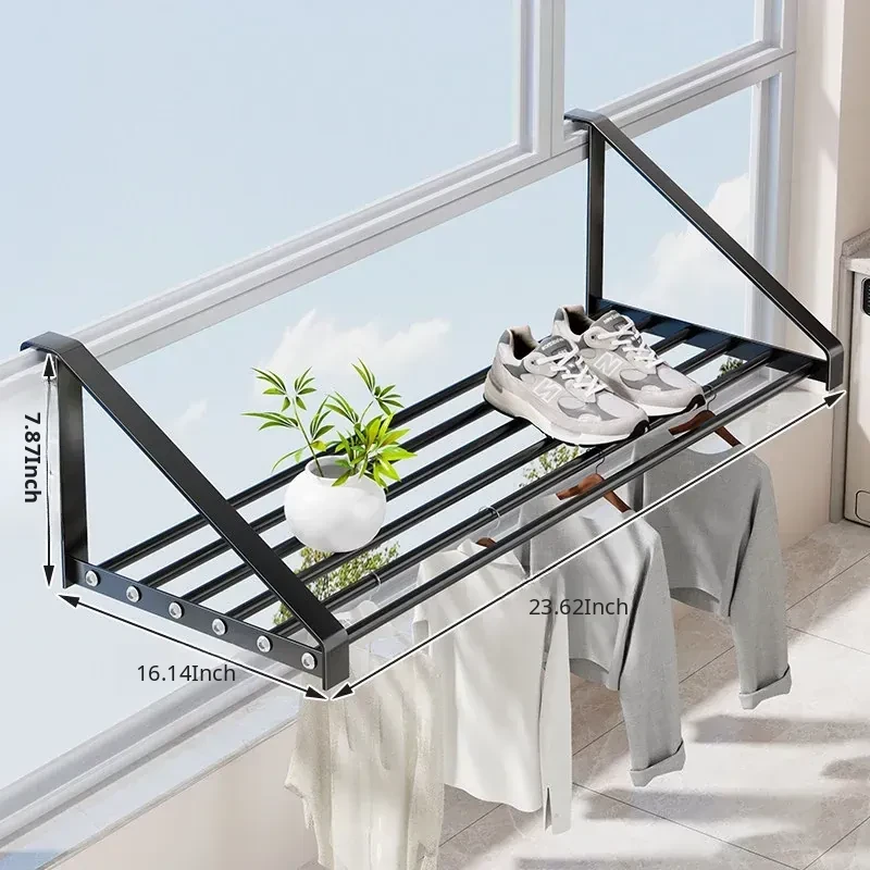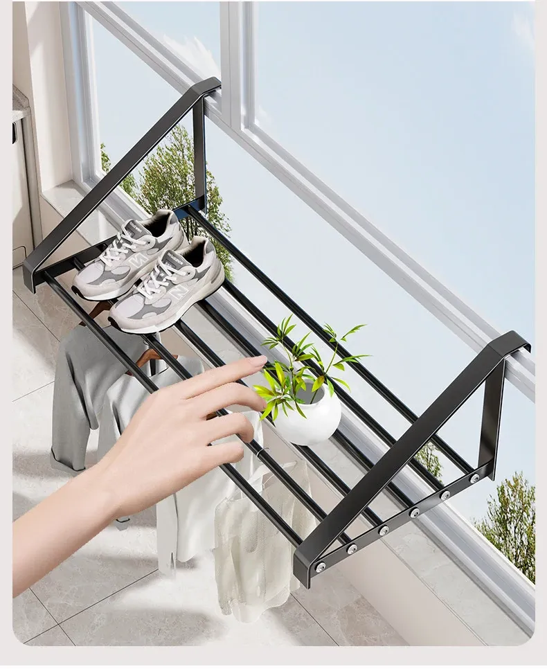 Multifunctional Balcony Clothes Drying Rack - Space-Saving Storage Rail with Hooks for Outdoor Use, Perfect for Drying Clothes and Organizing Shoes! Ideal Home Solution!