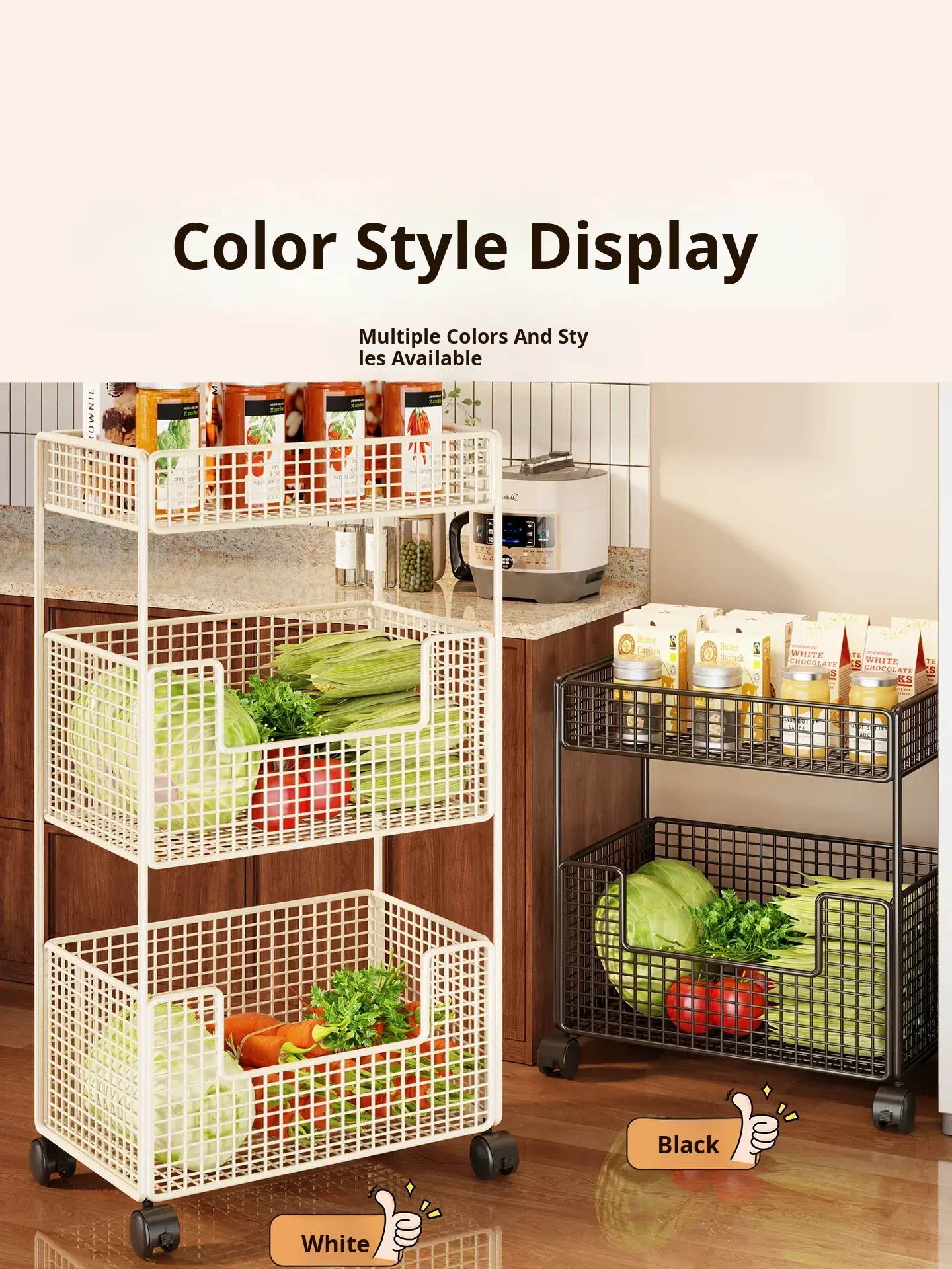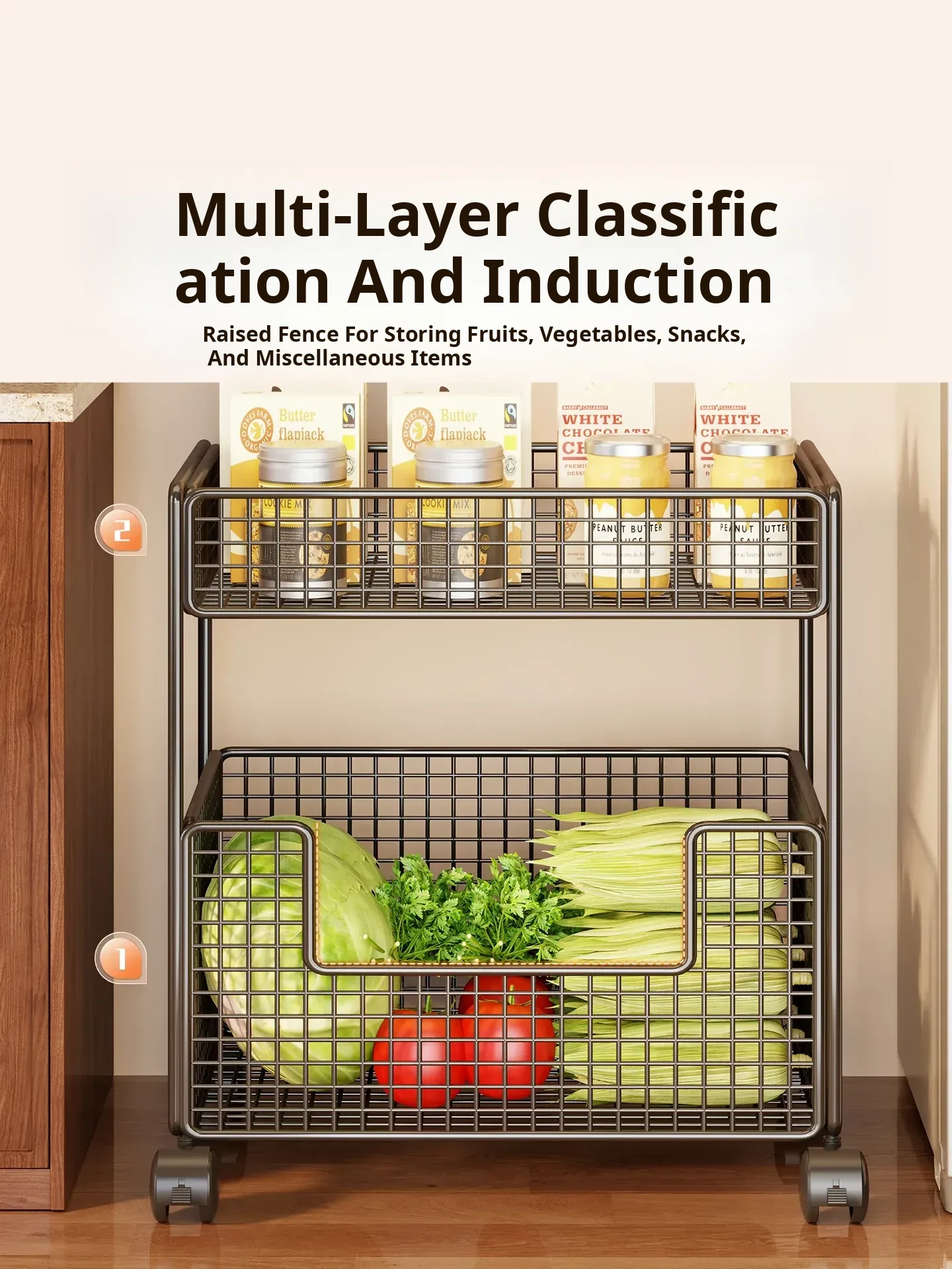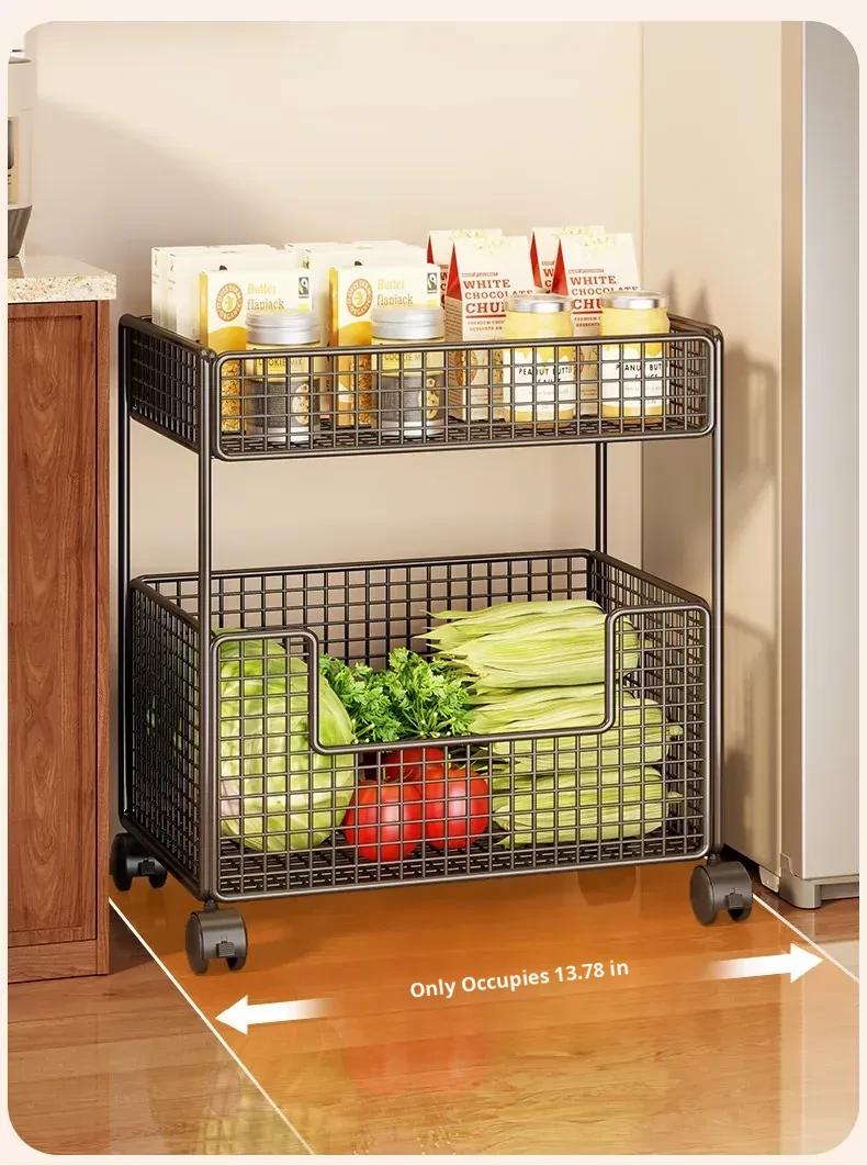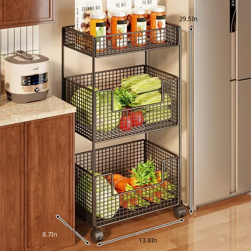 Multi-Functional Kitchen Storage Cart - Rolling Vegetable and Snack Trolley with Multiple Layers for Easy Mobility - Perfect for Organizing Fruits and Vegetables!