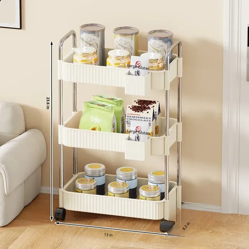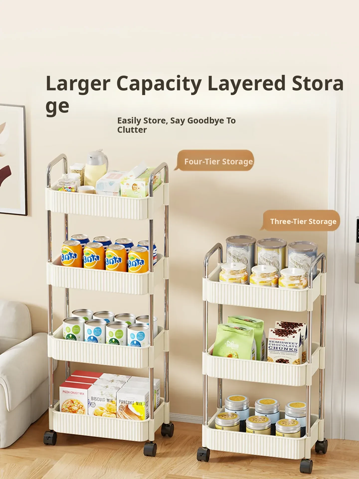 Multifunctional Rolling Snack Storage Cart - Mobile Floor Rack for Bedroom and Living Room, Ideal for Toy Organization and Easy Access!
