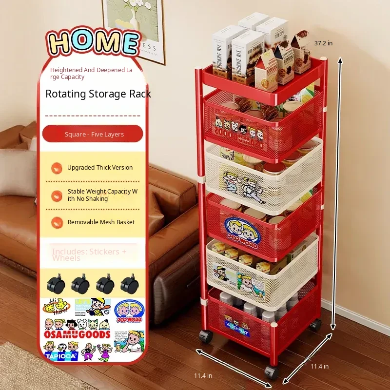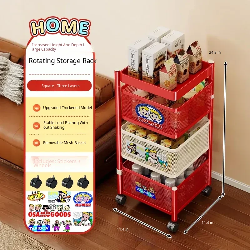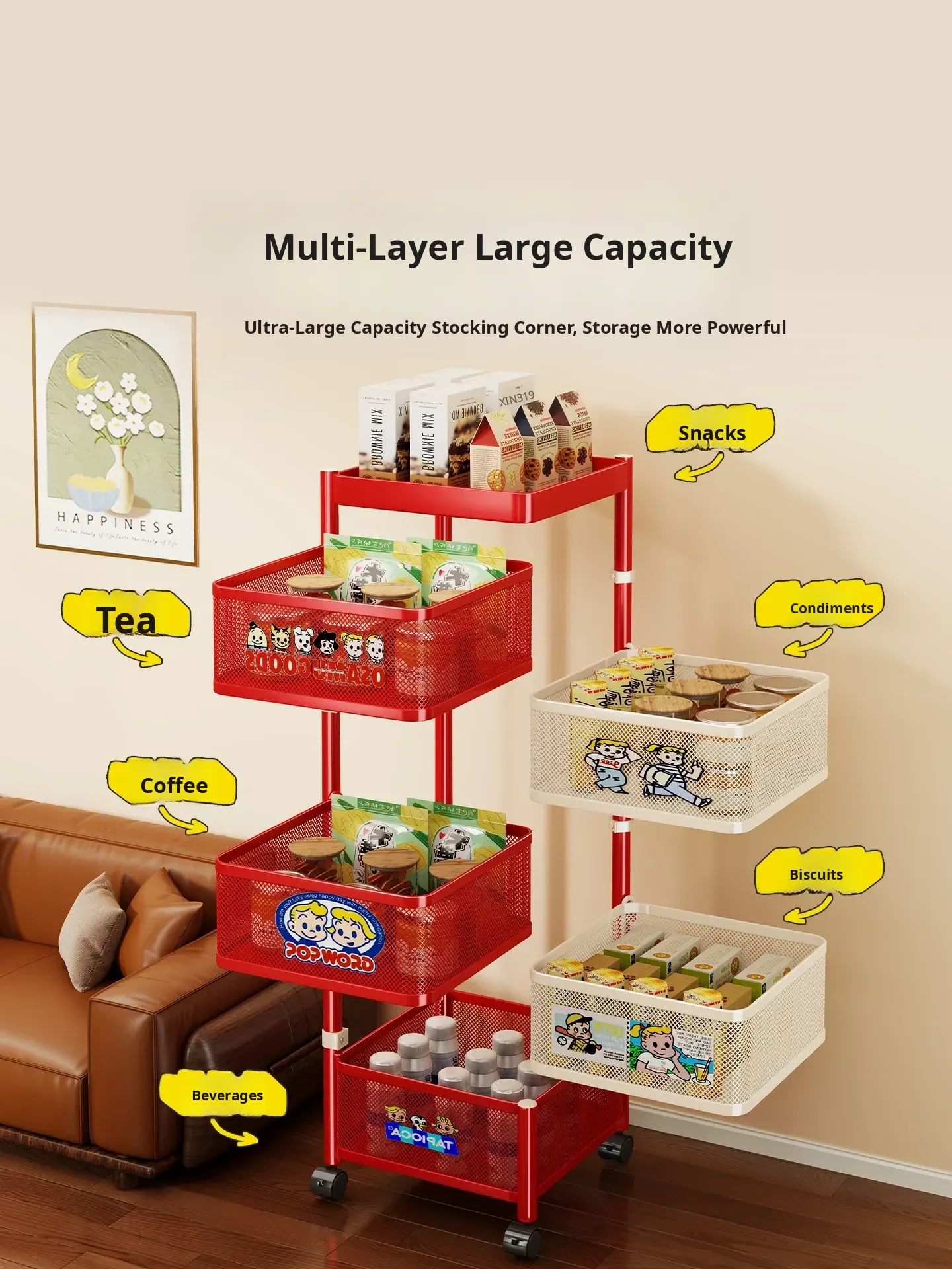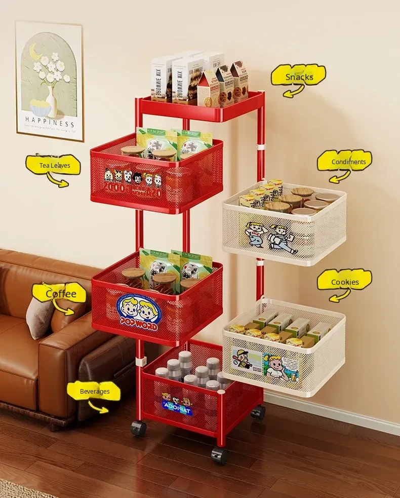 Multifunctional Rotating Storage Rack - Space-Saving Trolley Shelf for Living Room, Perfect for Organizing with a Touch of Style! Ideal for Small Spaces, Your Ultimate Mobile Storage Solution!