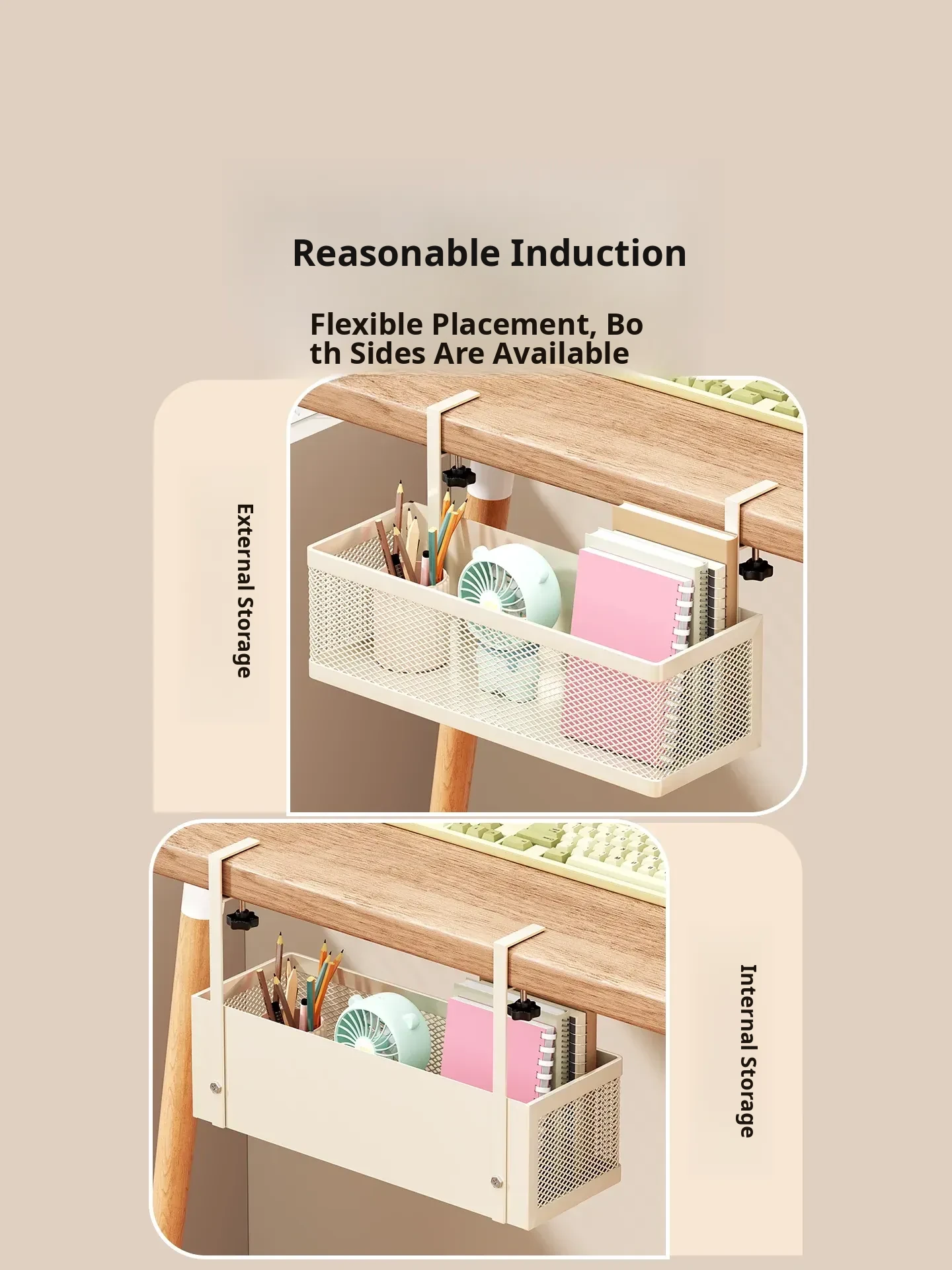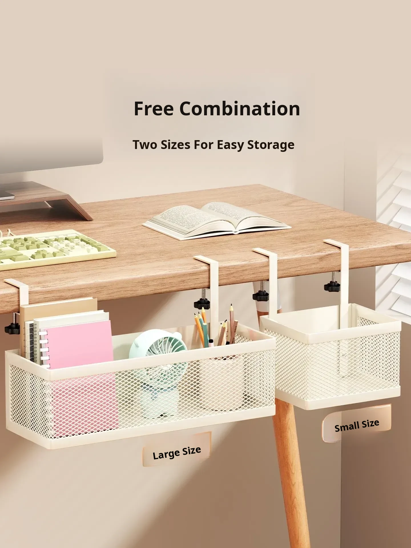 Multi-Functional Under-Desk Storage Shelf for Study Supplies - Ideal for Organizing Dorm Room, Charging Cables, and Headphone Cases