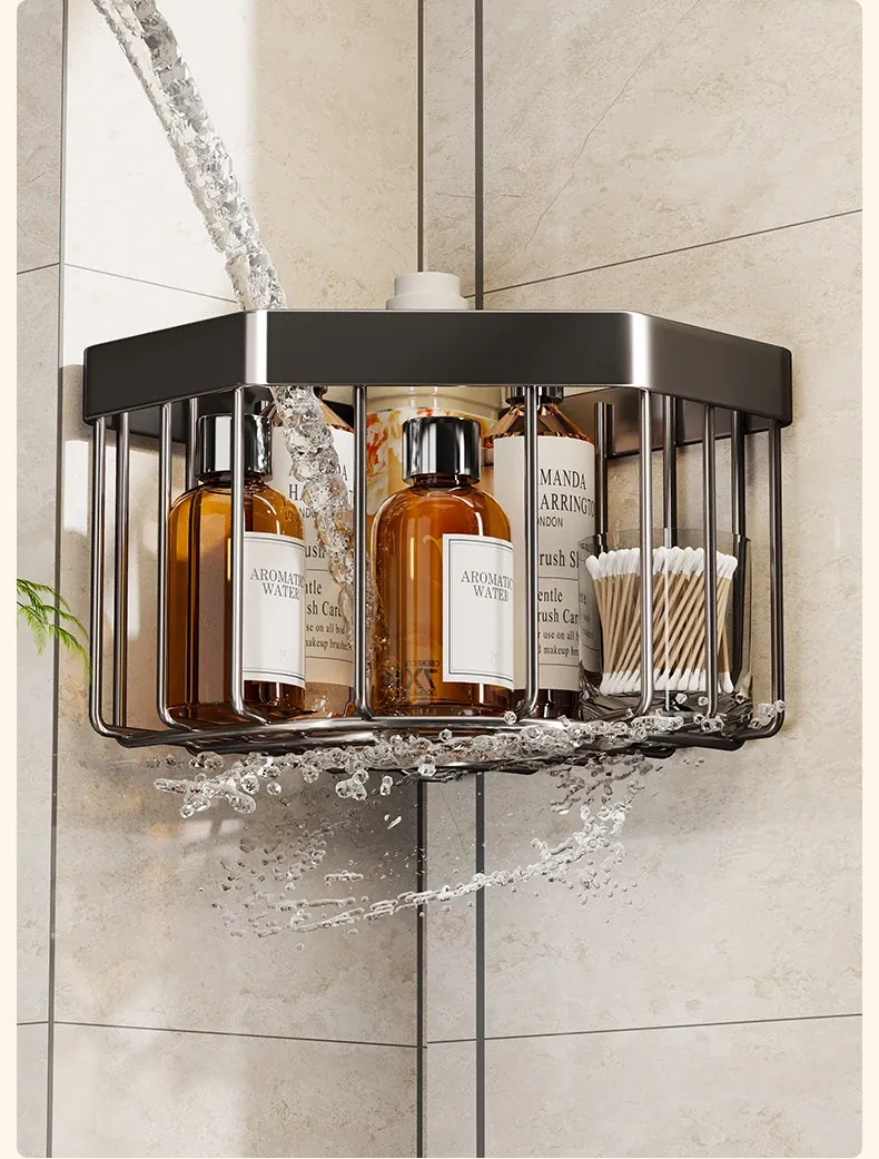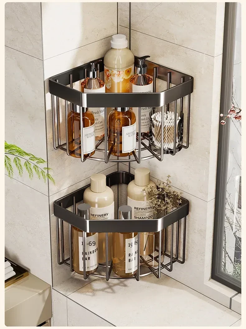 Multi-Functional Wall-Mounted Bathroom Storage Rack - No Drill Organizer for Toiletries, Stylish and Practical Shelving Solution for Your Bathroom!