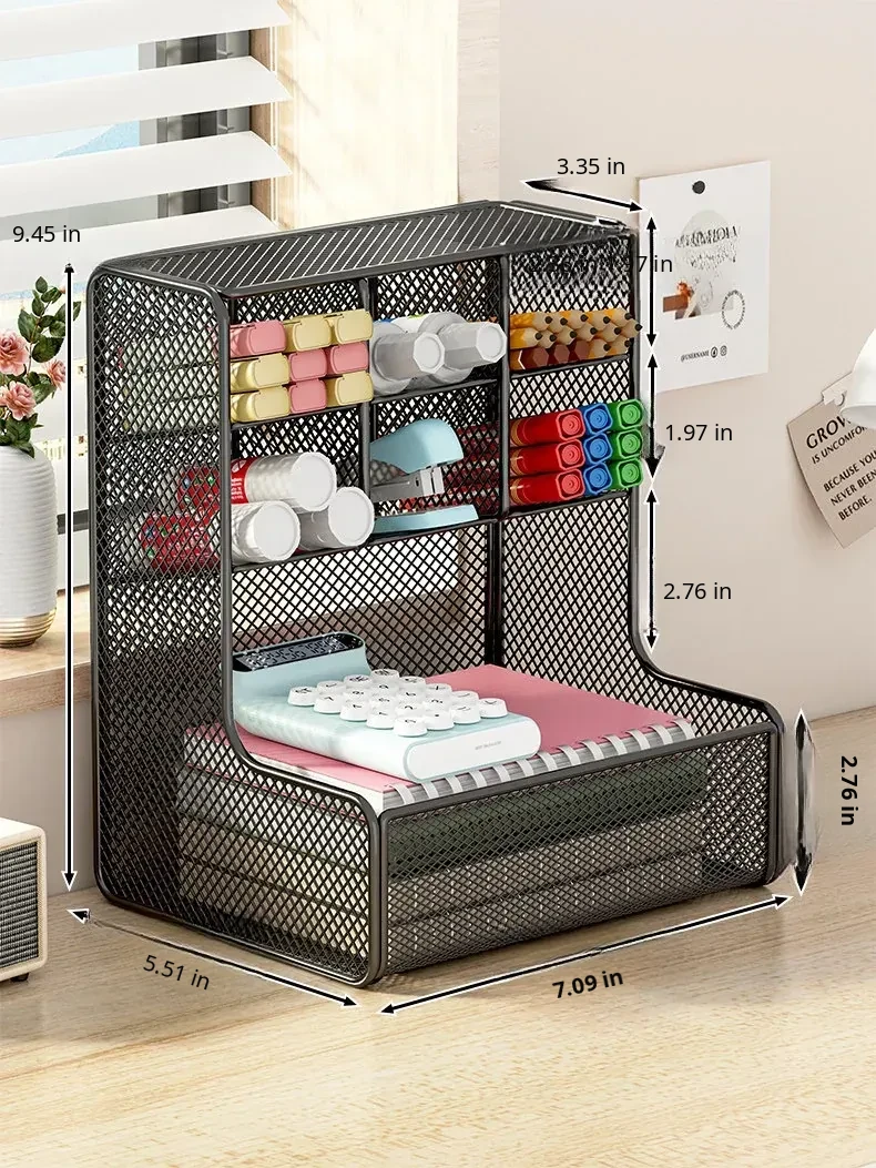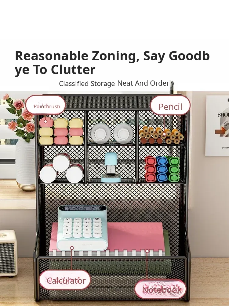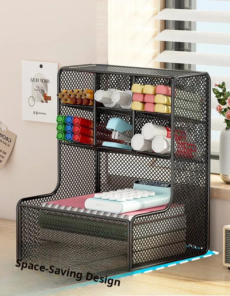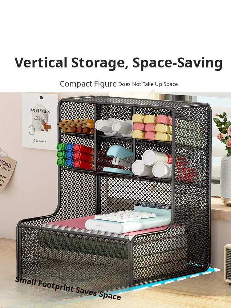 Multilayer Desktop Bookshelf Organizer - Space-Saving Office Desk Storage Rack for Books and Supplies, Ideal for Home and Office Use