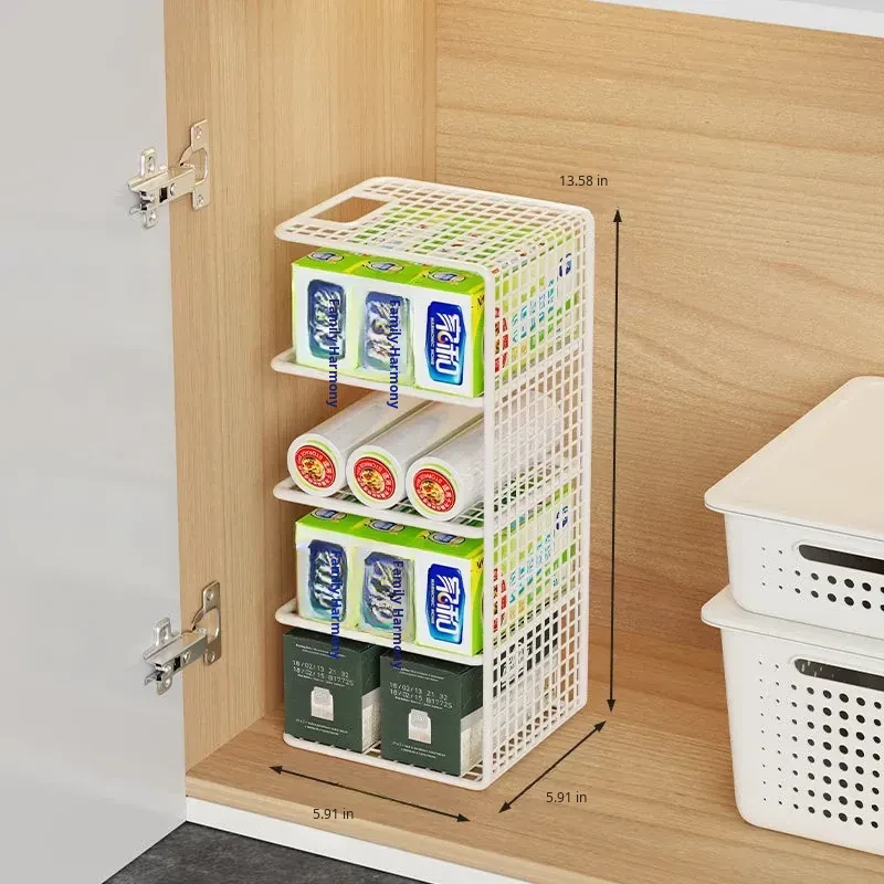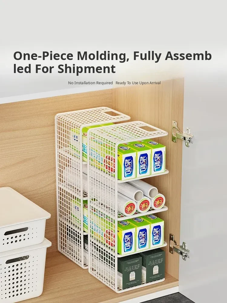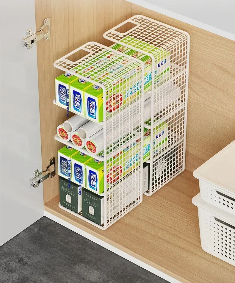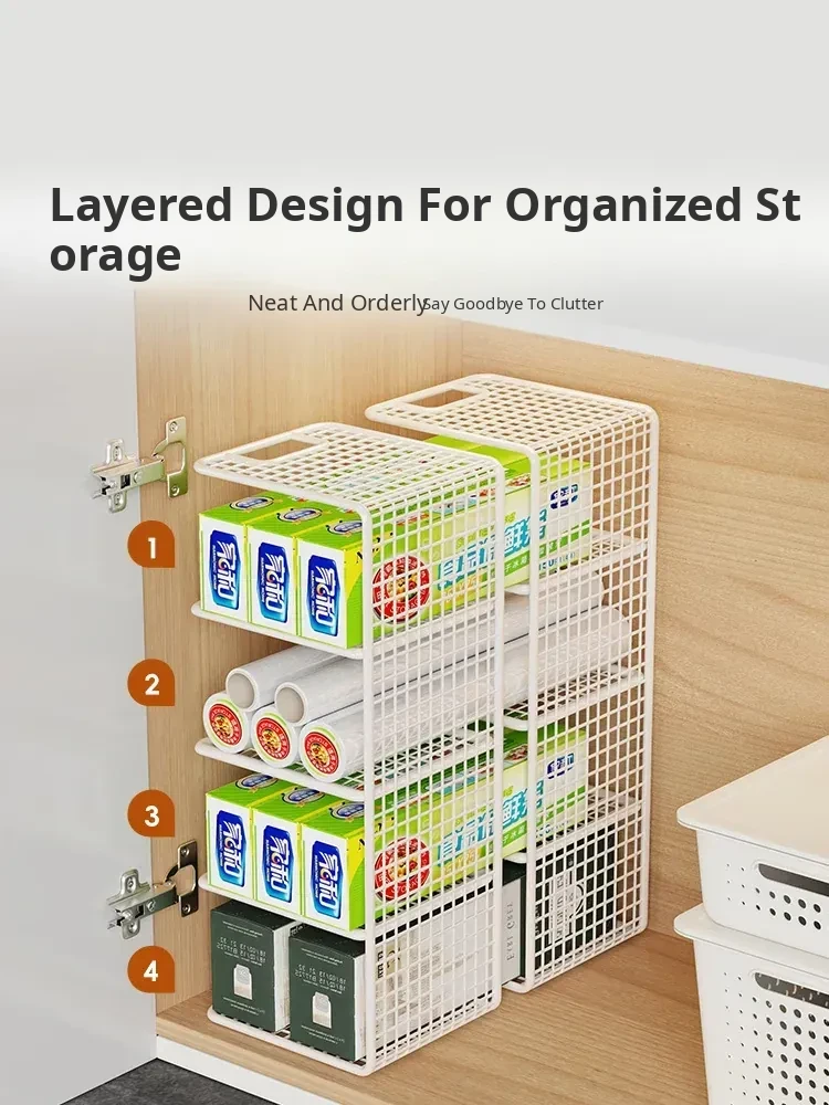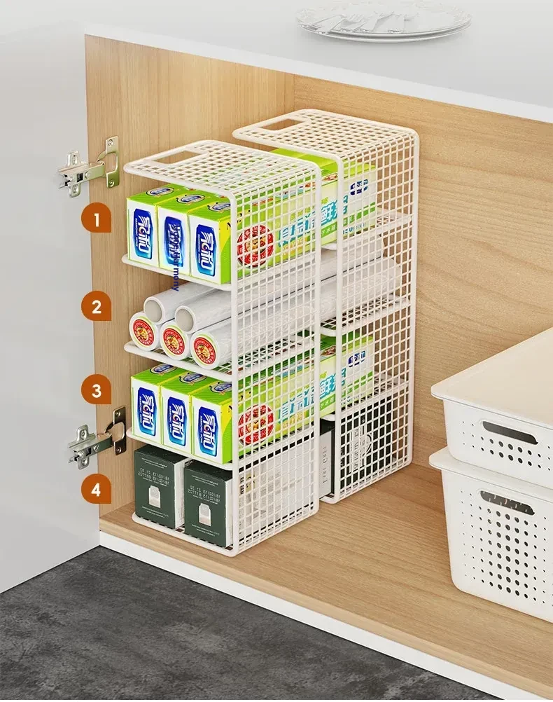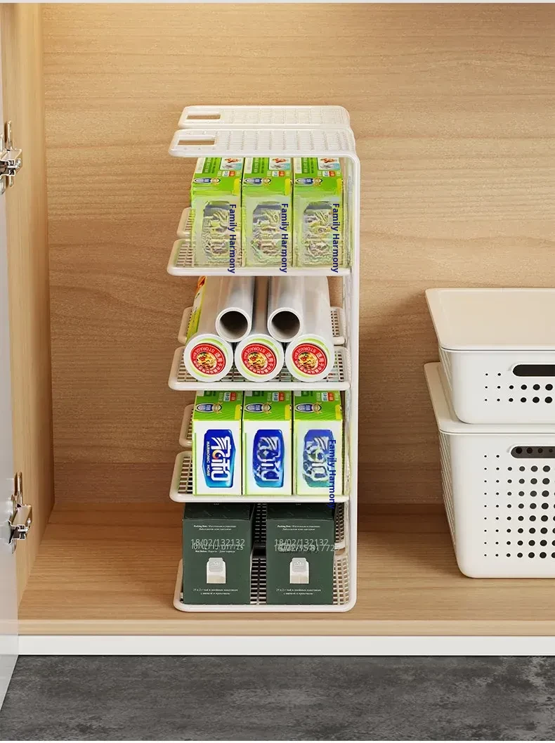 Multi-Layer Kitchen Storage Rack – Under-Sink Organizer for Plastic Wrap and Kitchen Supplies, Maximizing Space in Cabinets with Clever Dividers