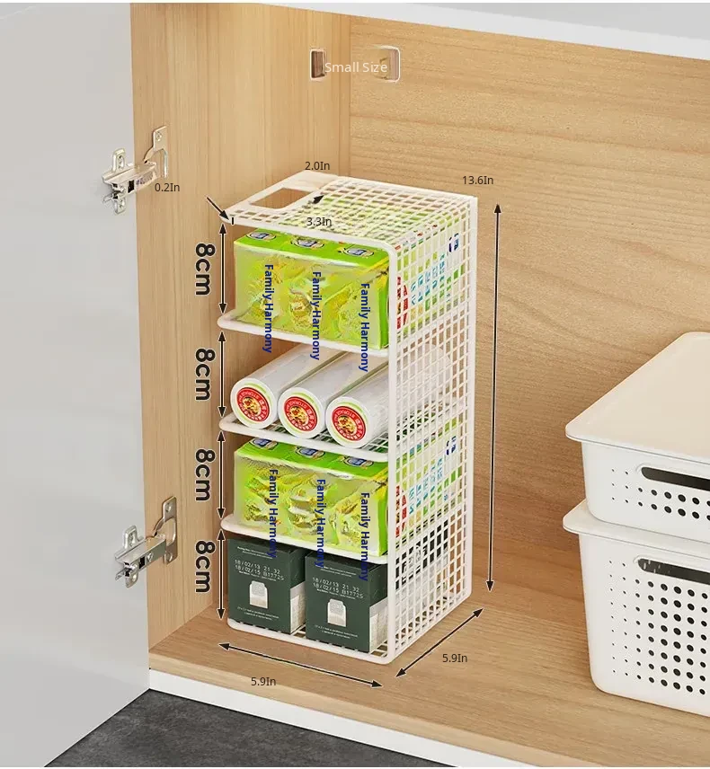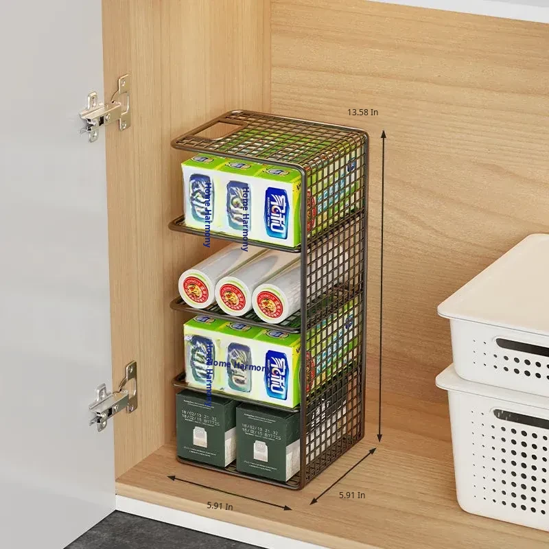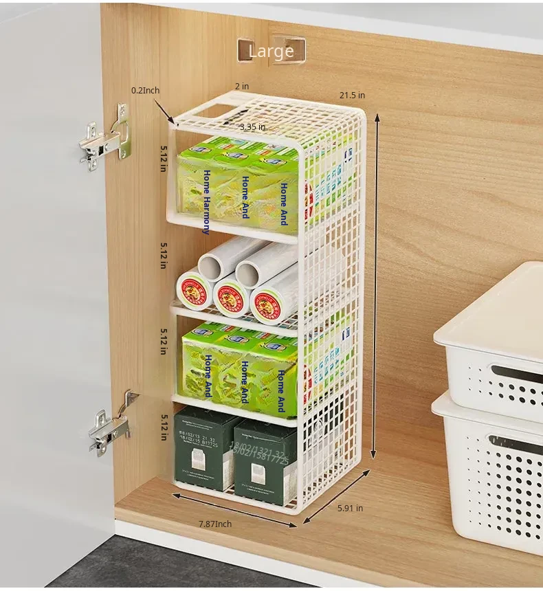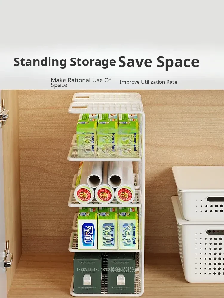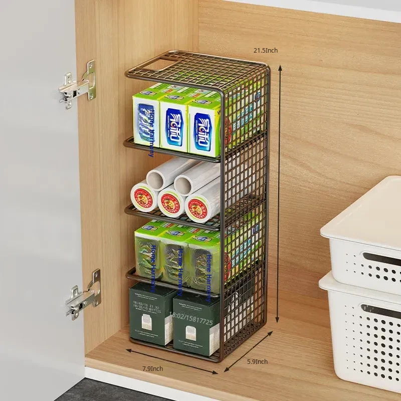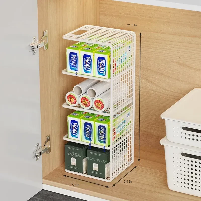 Multi-Layer Kitchen Storage Rack – Under-Sink Organizer for Plastic Wrap and Kitchen Supplies, Maximizing Space in Cabinets with Clever Dividers