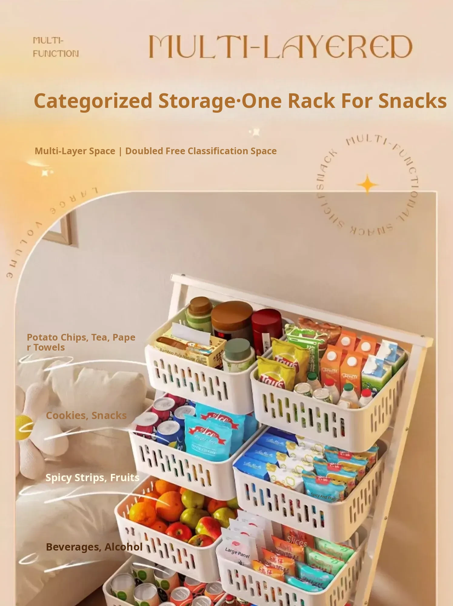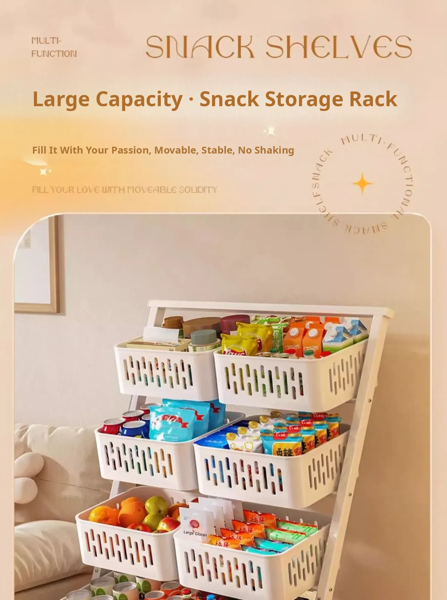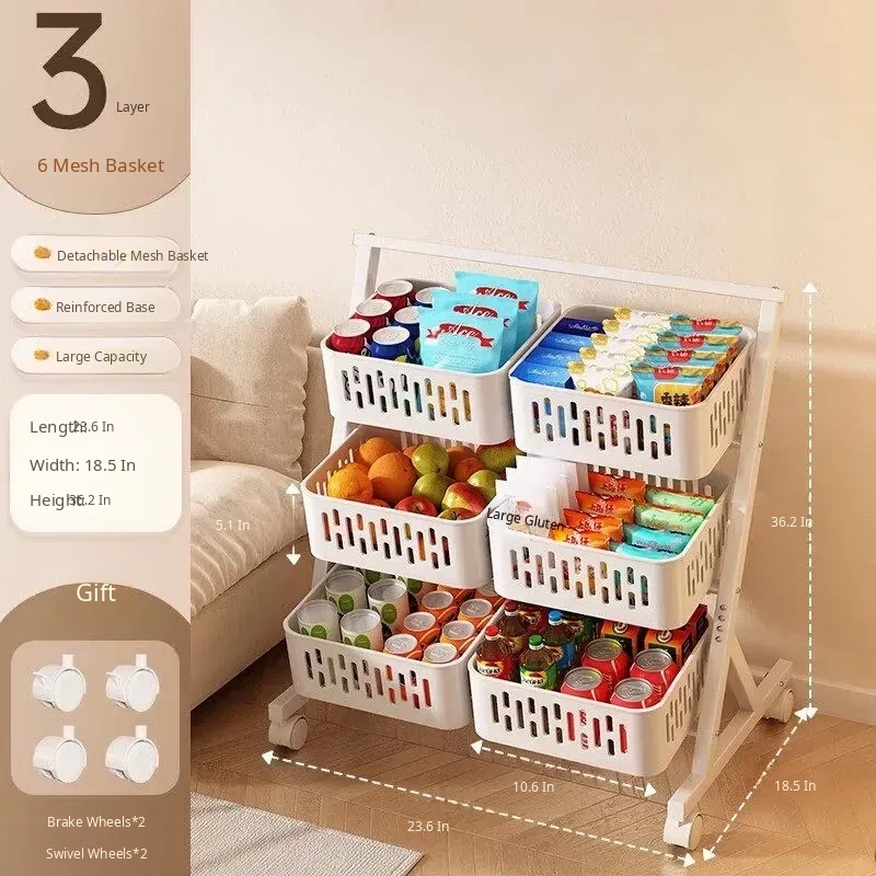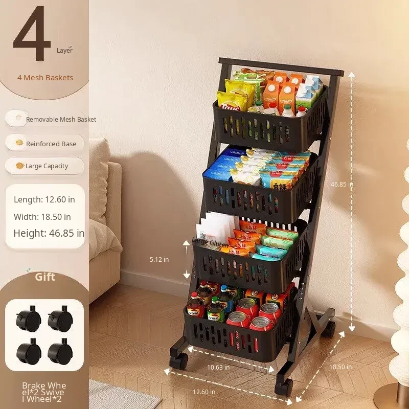 Multi-Tier Snack Storage Rack for Supermarkets - Versatile Kitchen Cabinet Organizer for Fruits and Vegetables - Stylish Living Room Storage Solution