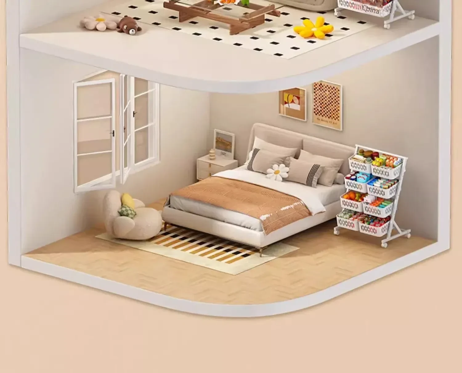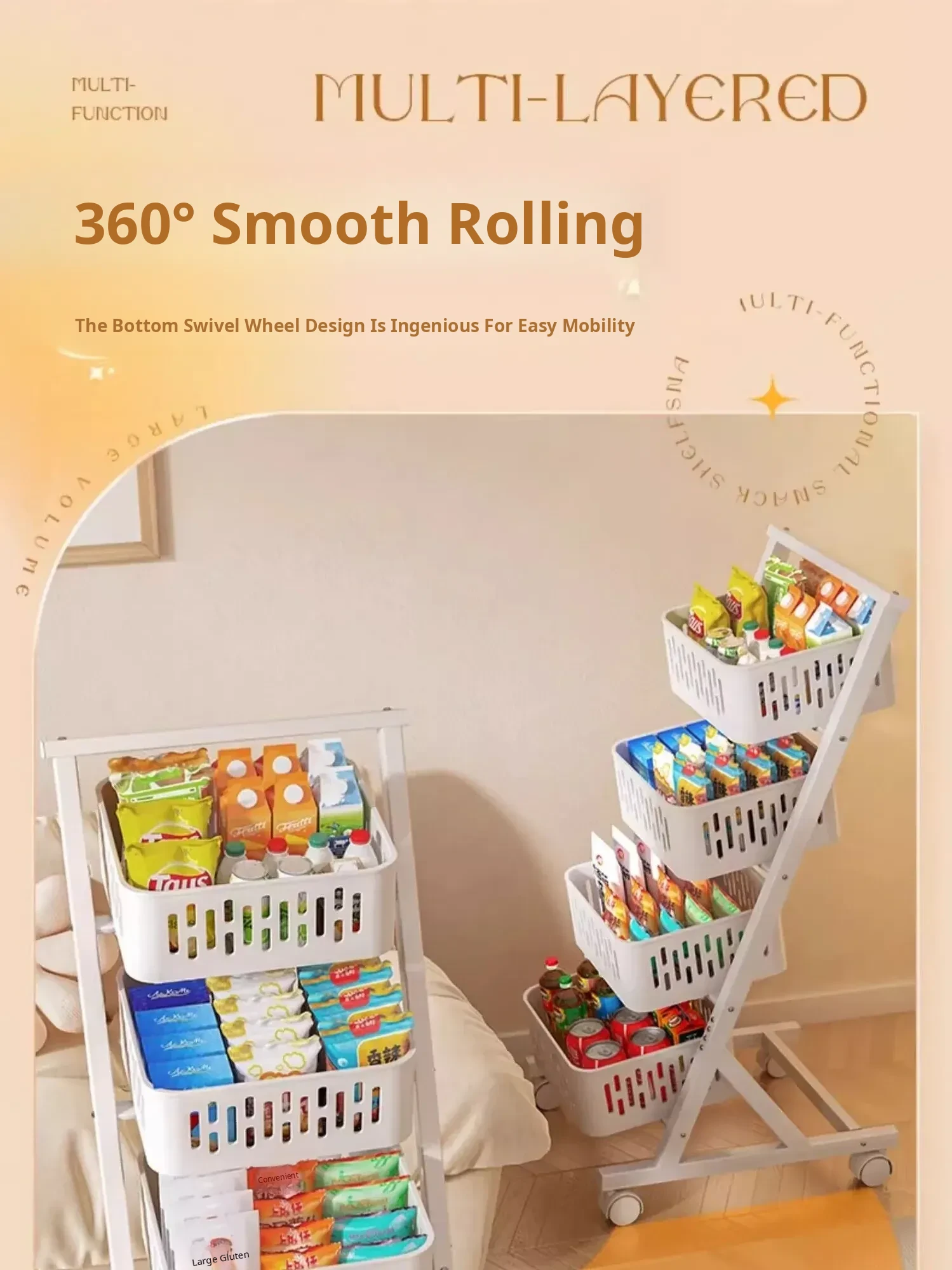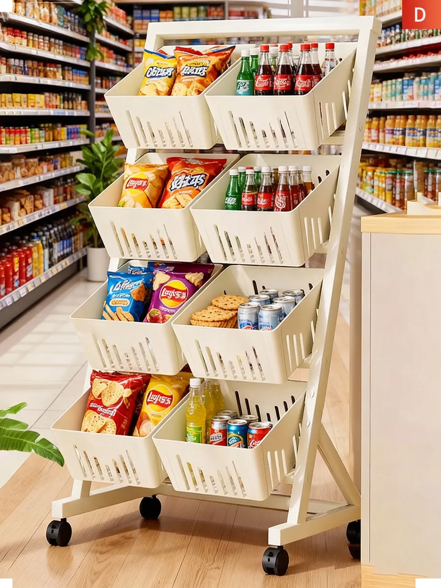 Multi-Tier Snack Storage Rack for Supermarkets - Versatile Kitchen Cabinet Organizer for Fruits and Vegetables - Stylish Living Room Storage Solution