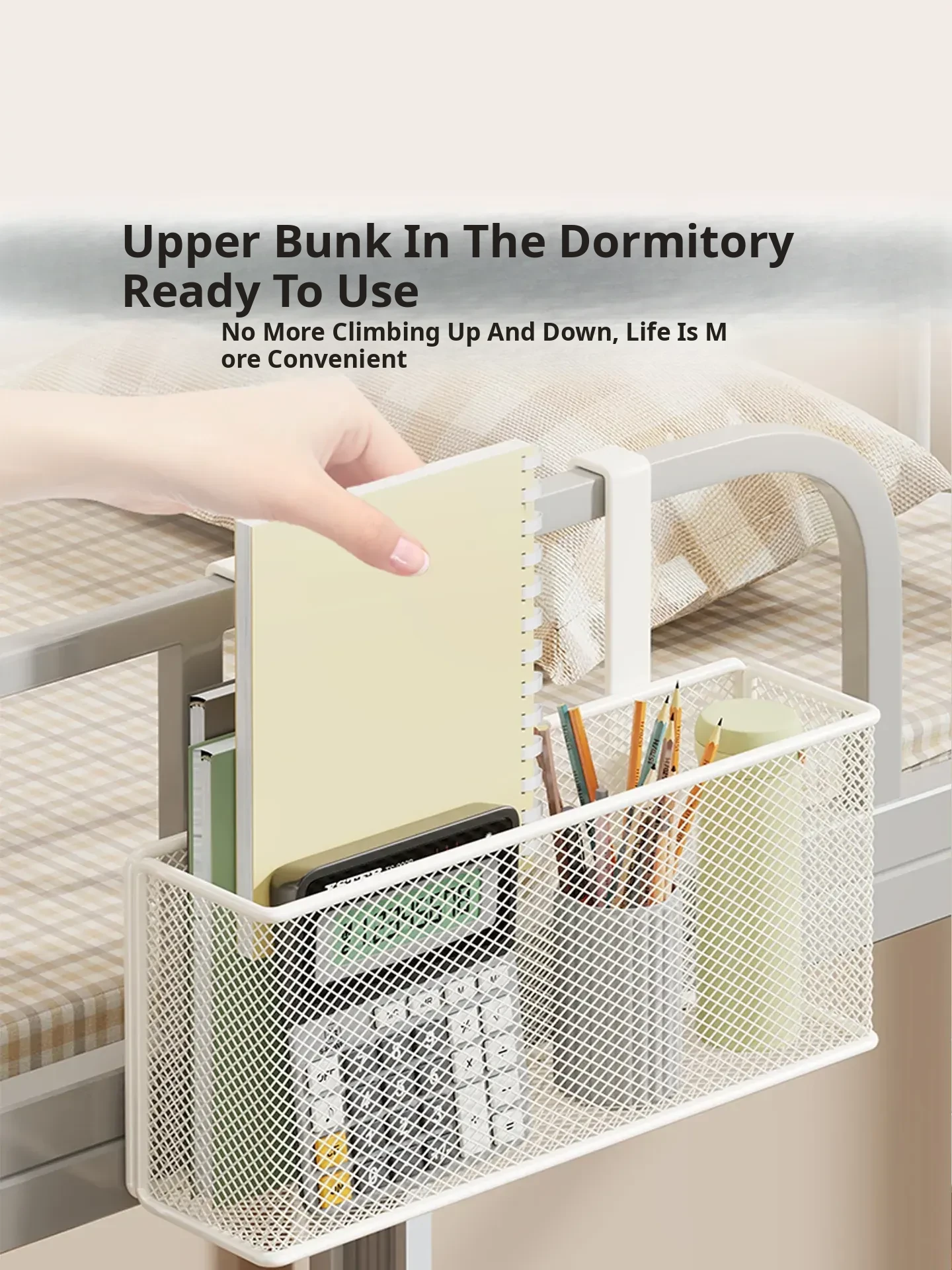 No-Drill Dorm Bedside Storage Rack - Large Capacity Hanging Basket for Top Bunk - Perfect Organizer for Snacks in Student Dorms