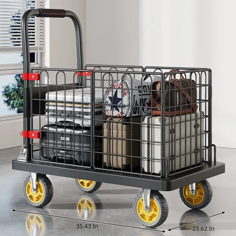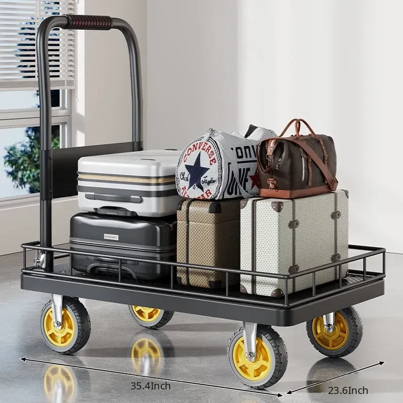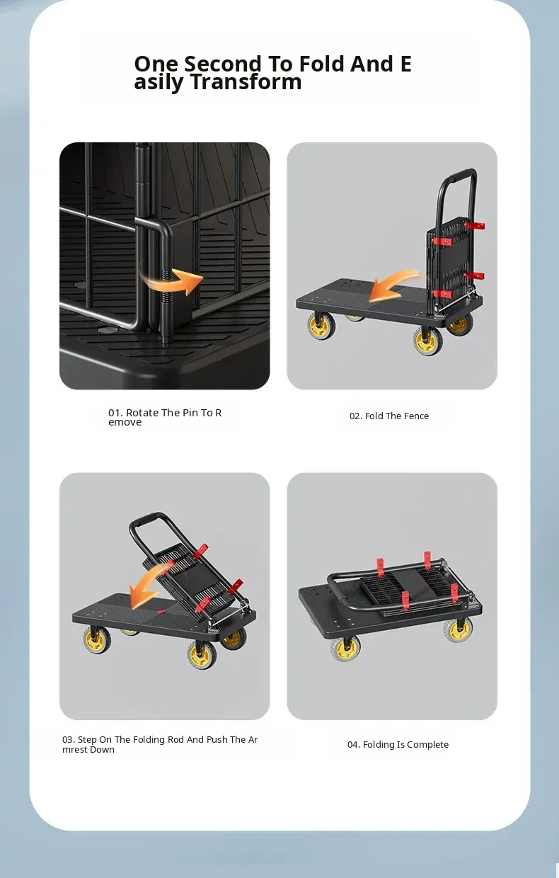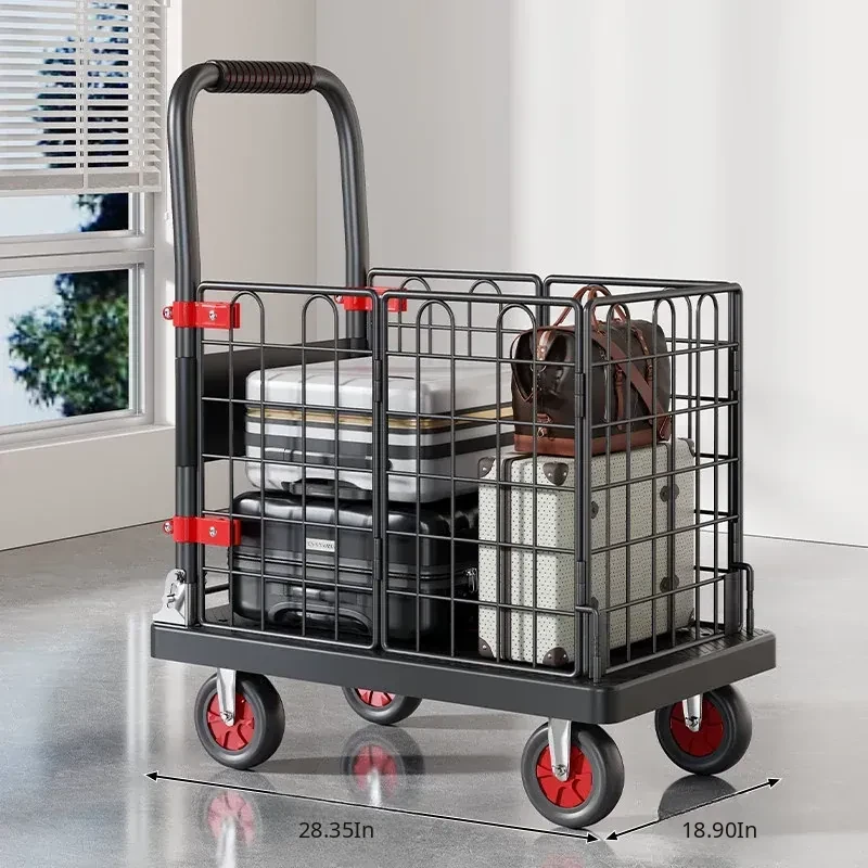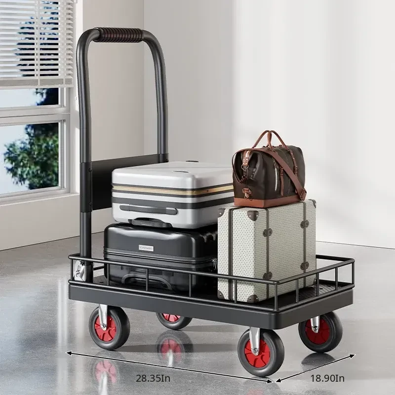 Portable Folding Quiet Flat Cart - Ideal for Home Use, Delivery, and Warehouse Transport - Convenient Hand-Pulled Trolley for Easy Moving