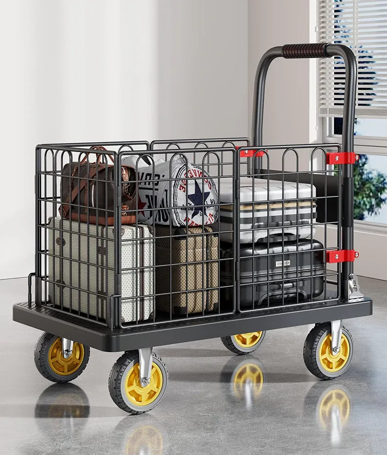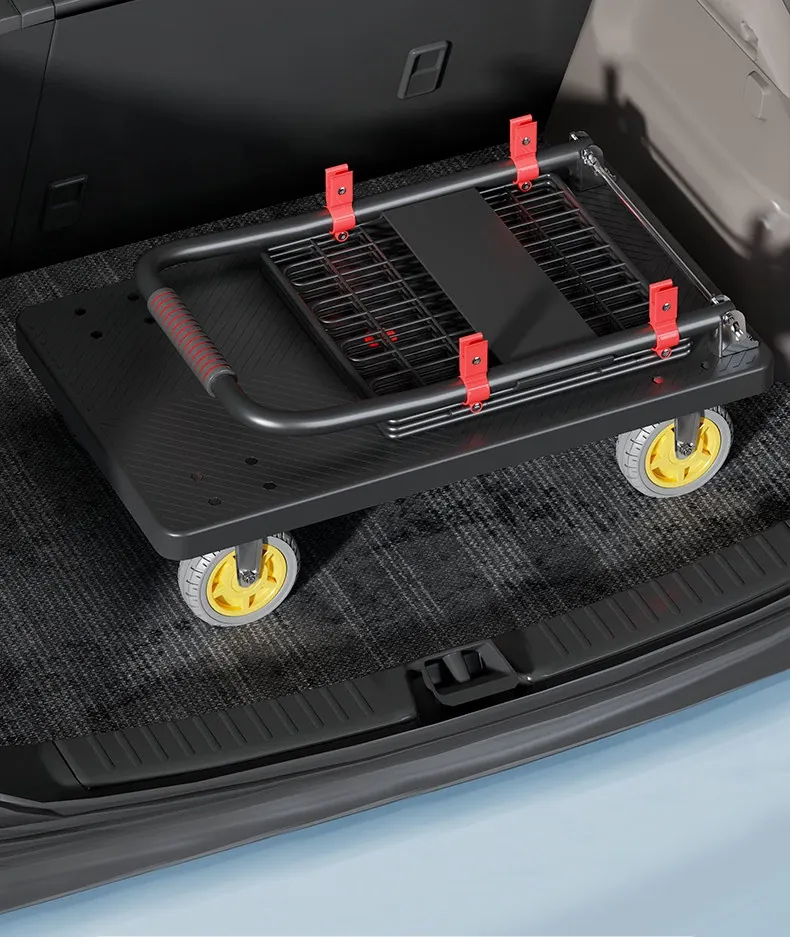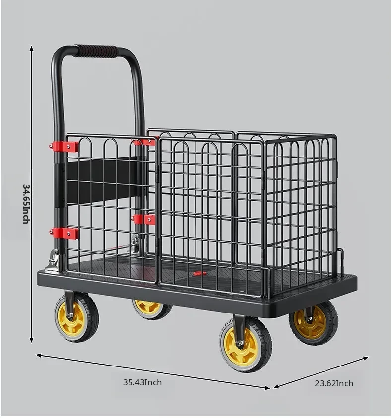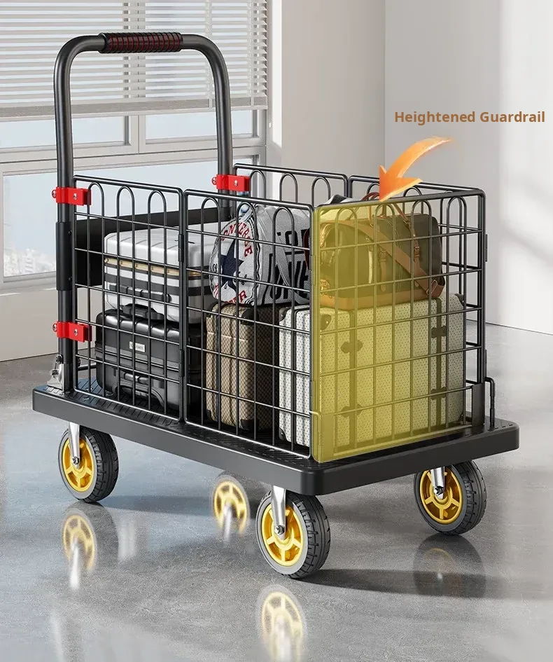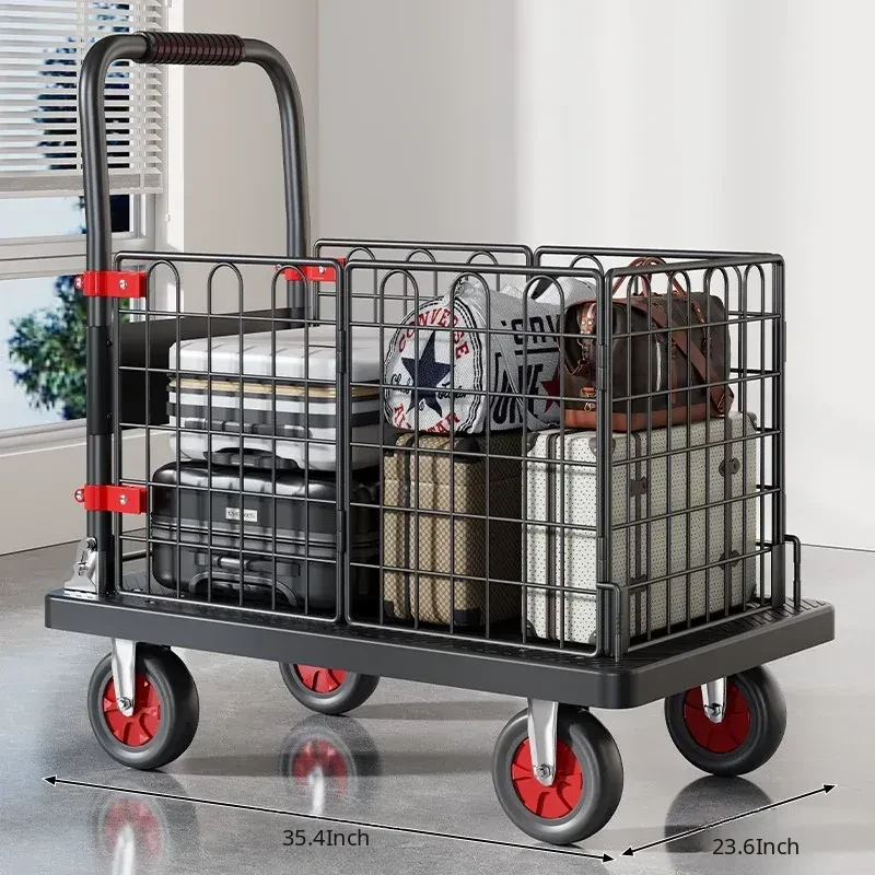 Portable Folding Quiet Flat Cart - Ideal for Home Use, Delivery, and Warehouse Transport - Convenient Hand-Pulled Trolley for Easy Moving