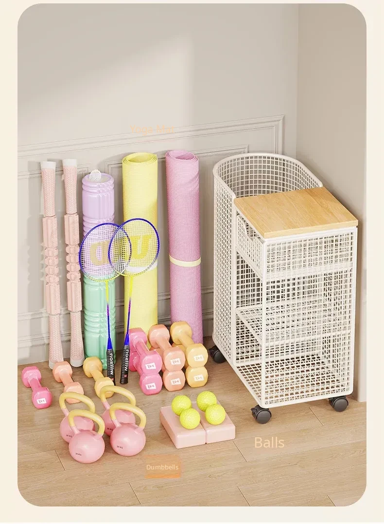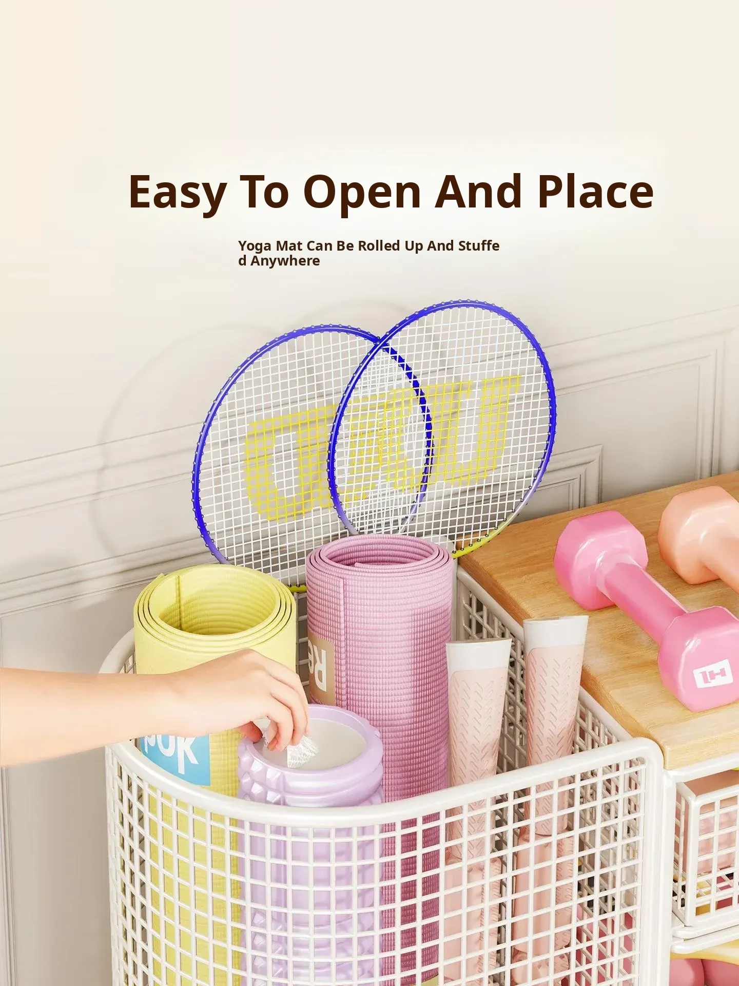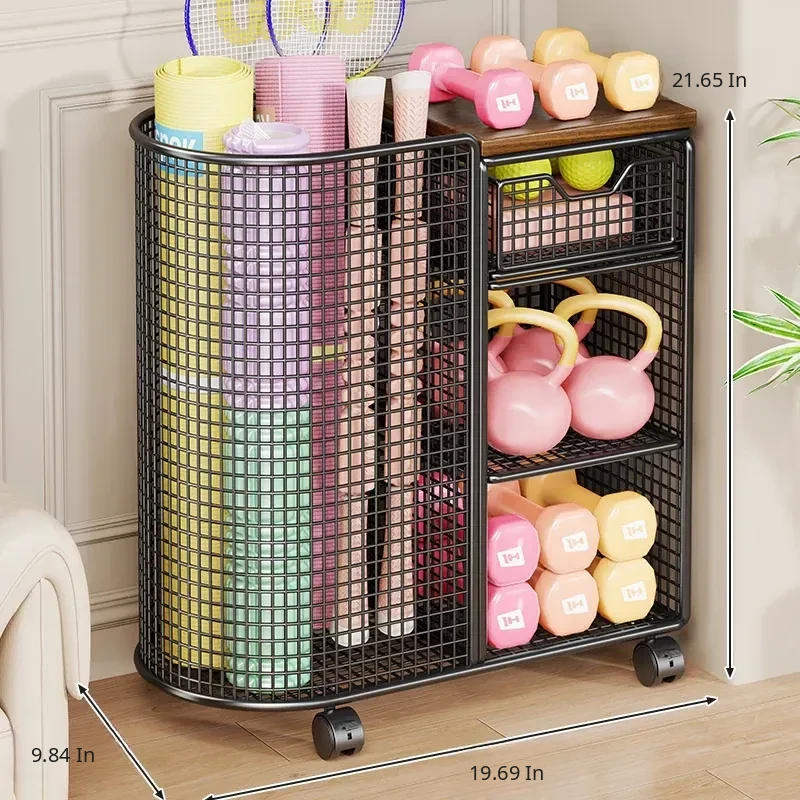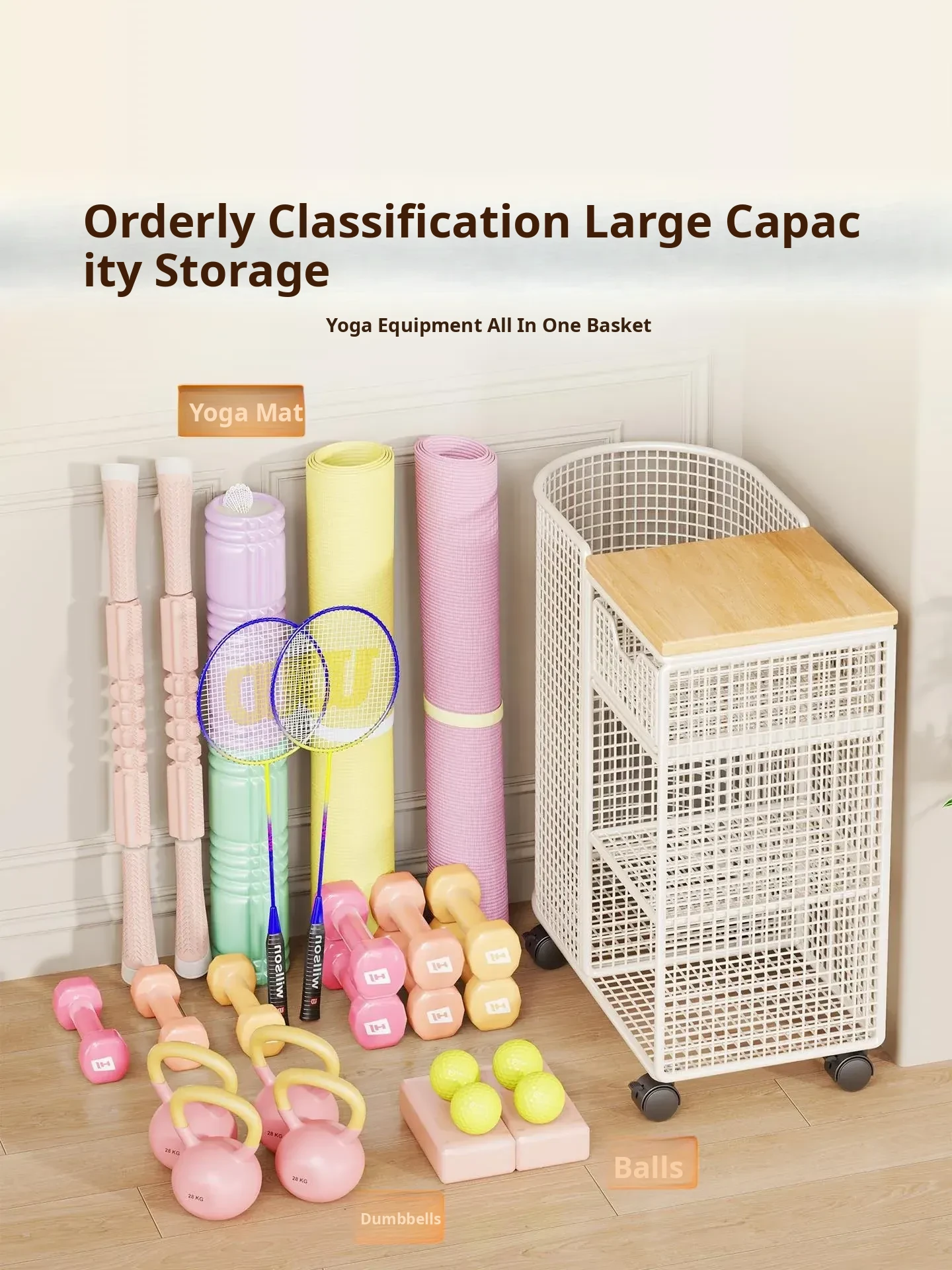 Portable Yoga Mat Storage Basket with Wheels - Perfect Home Organizer for Sports Equipment and Fitness Gear, Ideal for Gym and Home Use