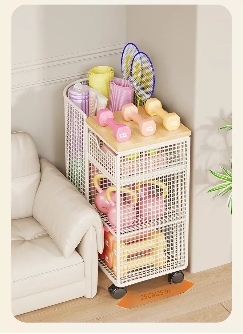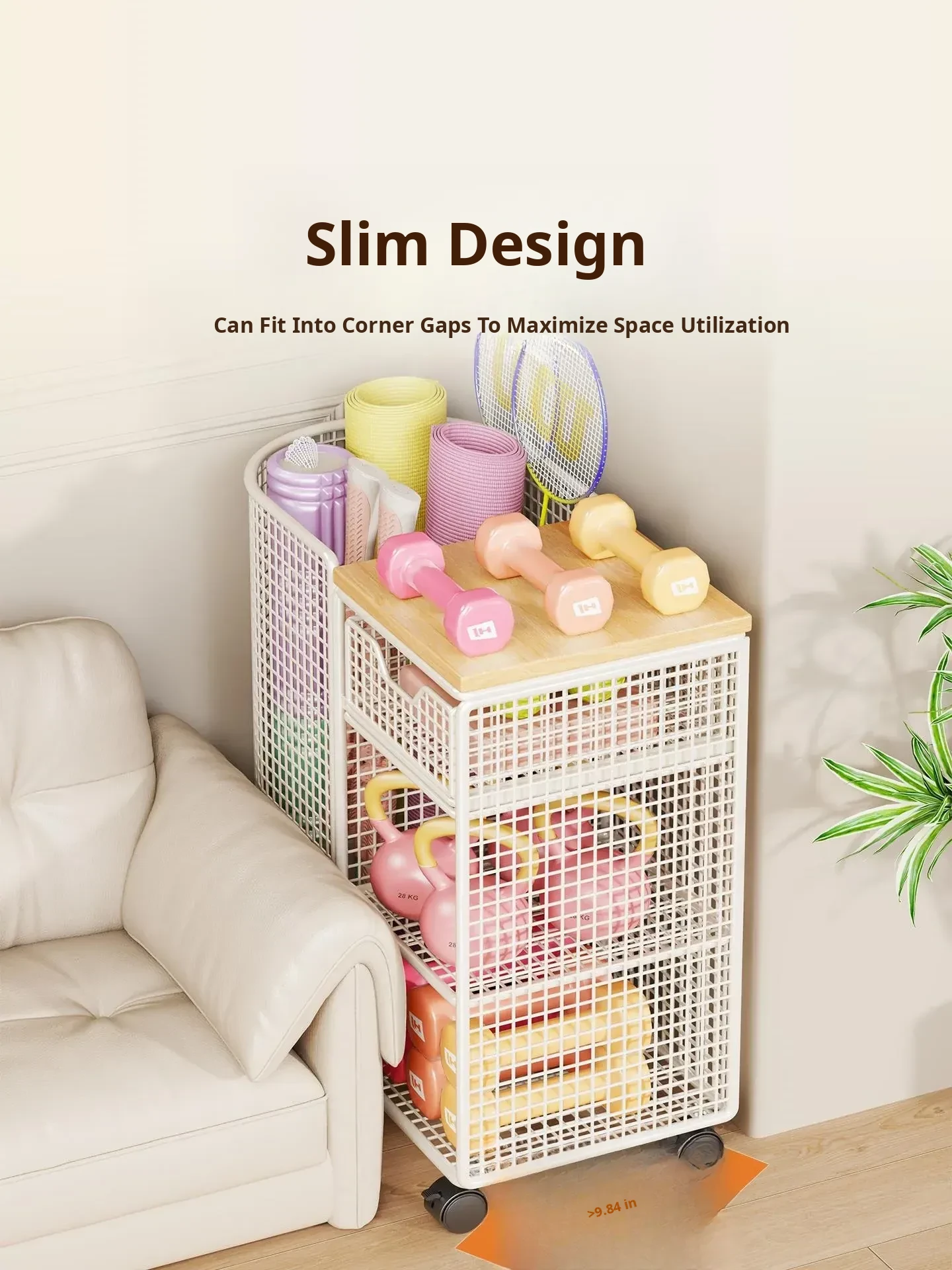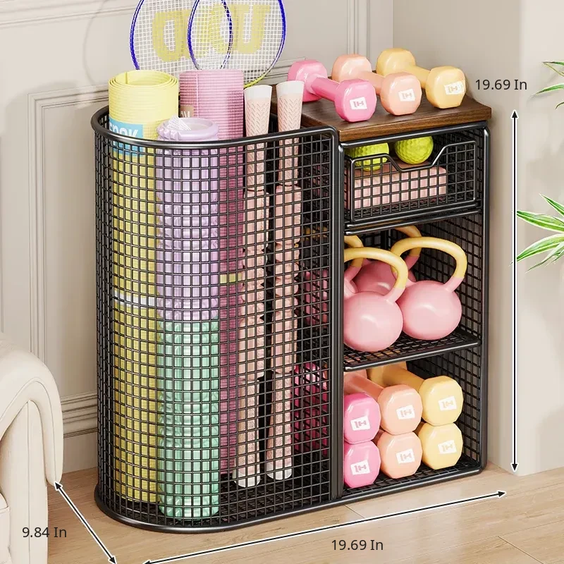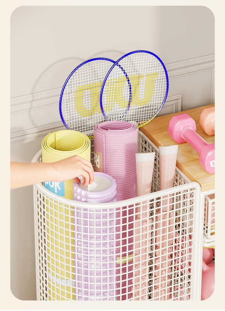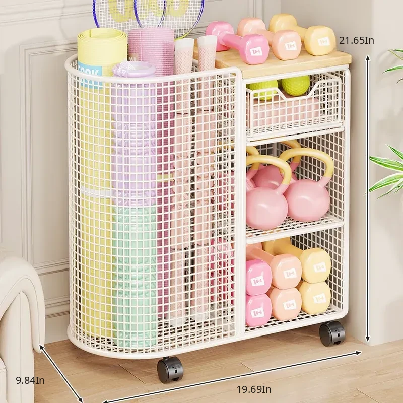 Portable Yoga Mat Storage Basket with Wheels - Perfect Home Organizer for Sports Equipment and Fitness Gear, Ideal for Gym and Home Use