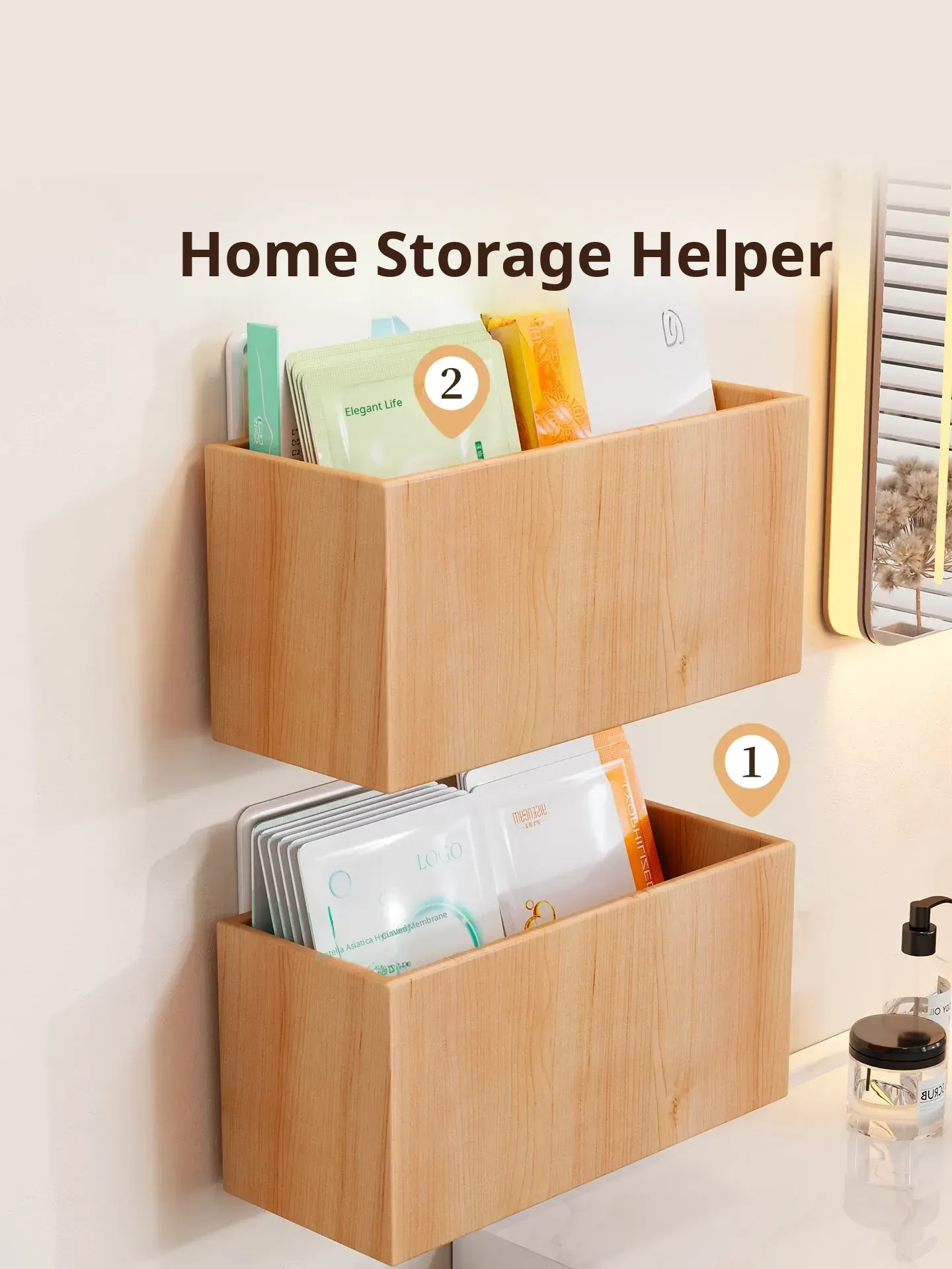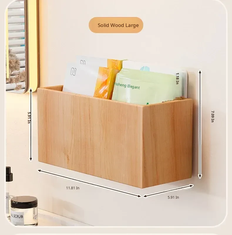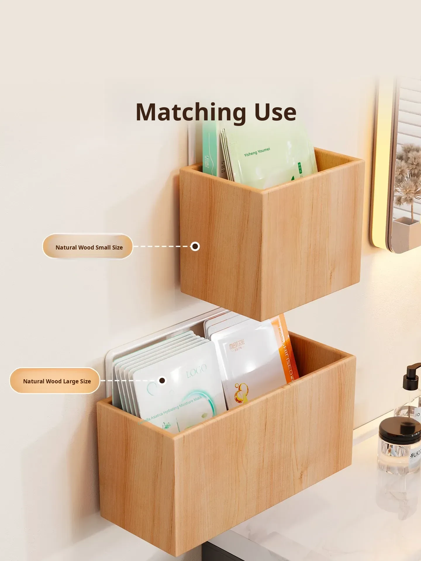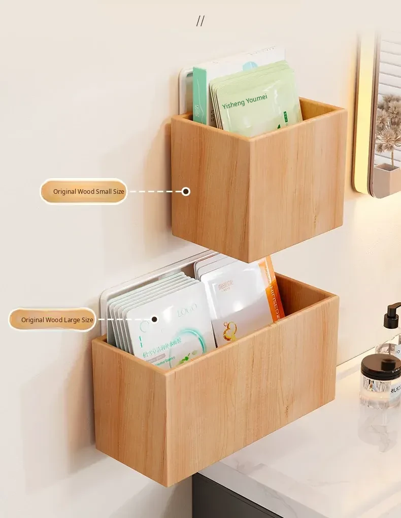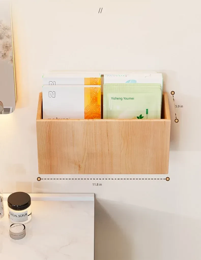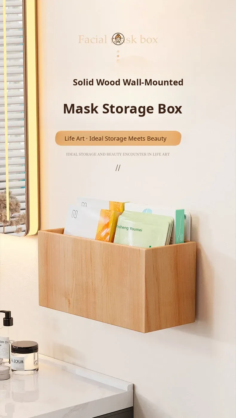 Solid Wood Face Mask Storage Box - Elegant Desktop Organizer for Cosmetics, Wall-Mounted Rectangular Vanity Shelf for Skincare Products