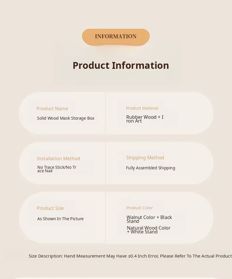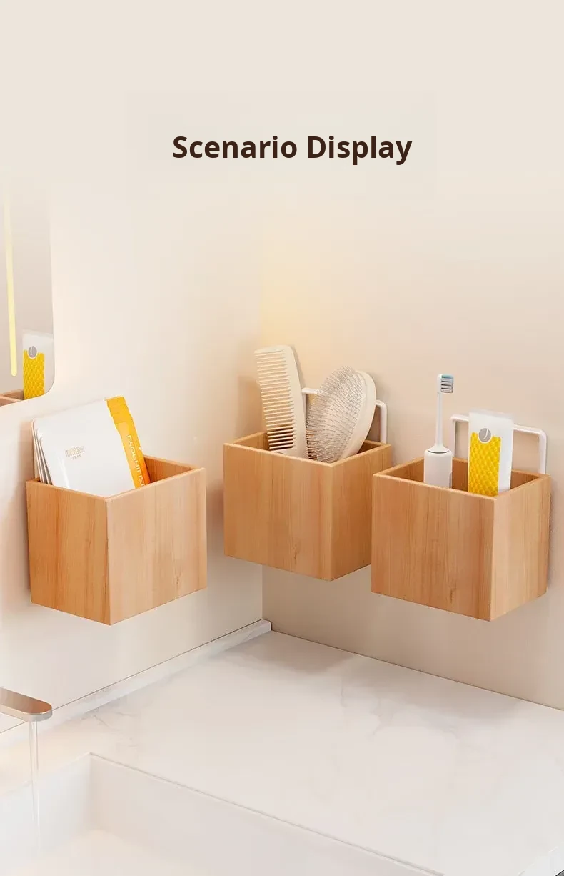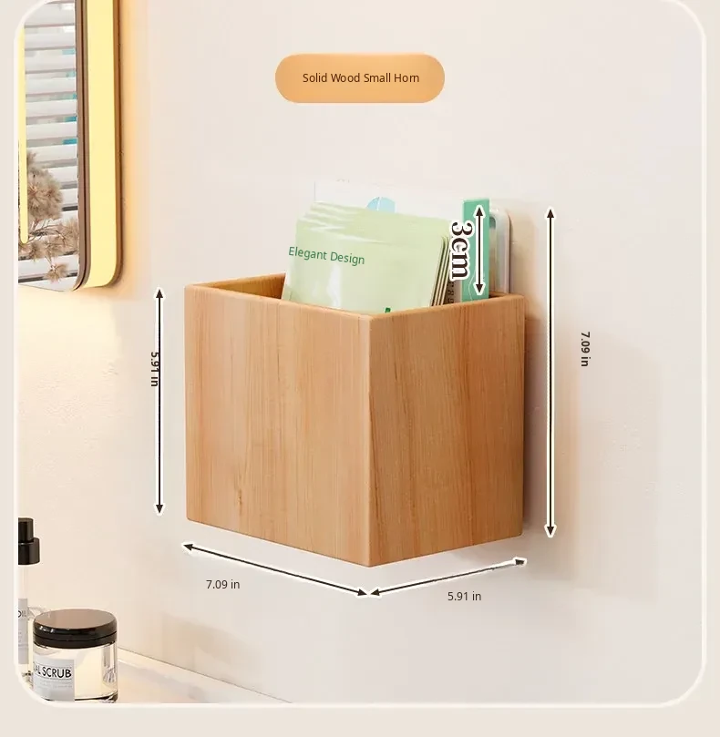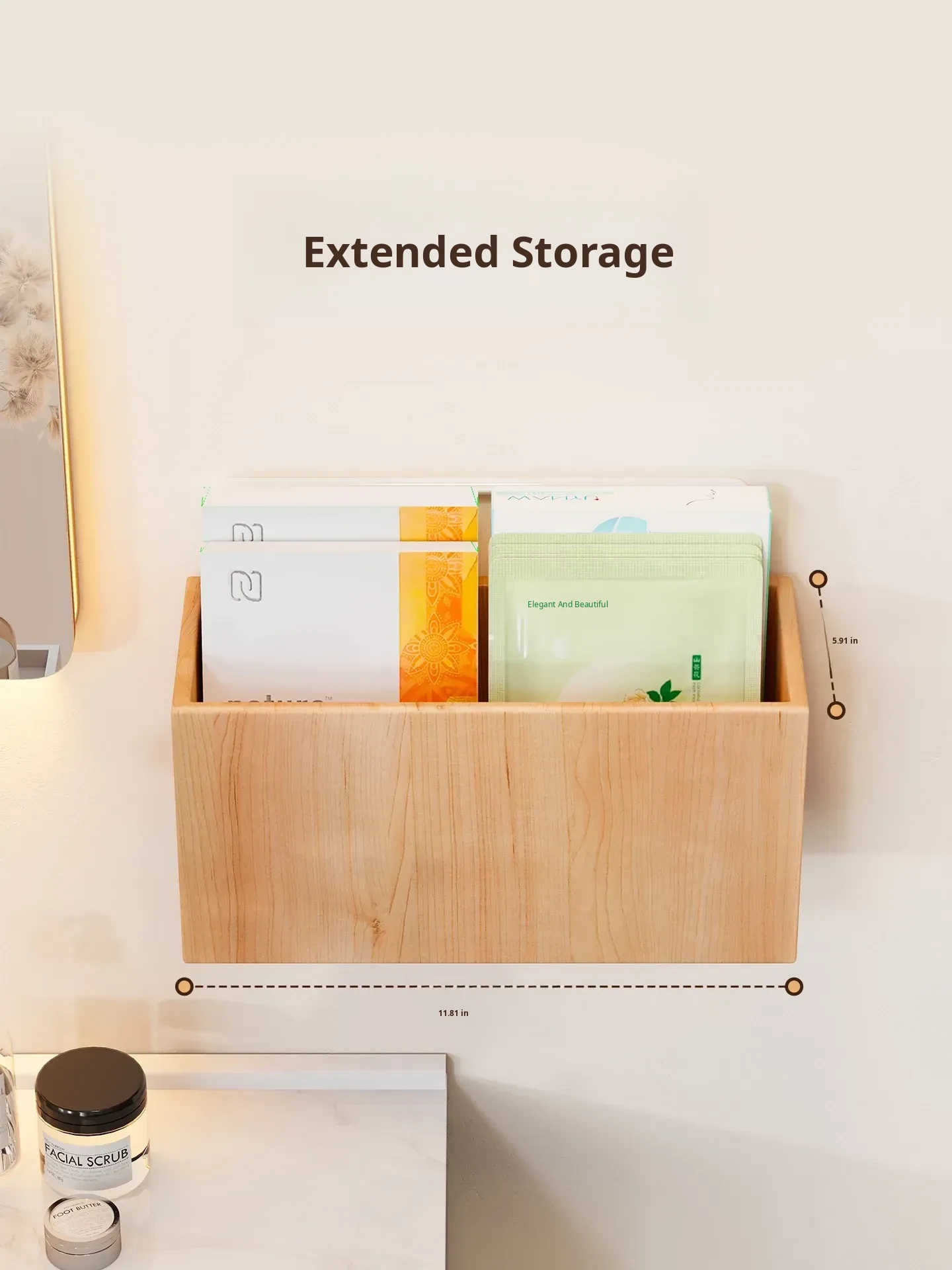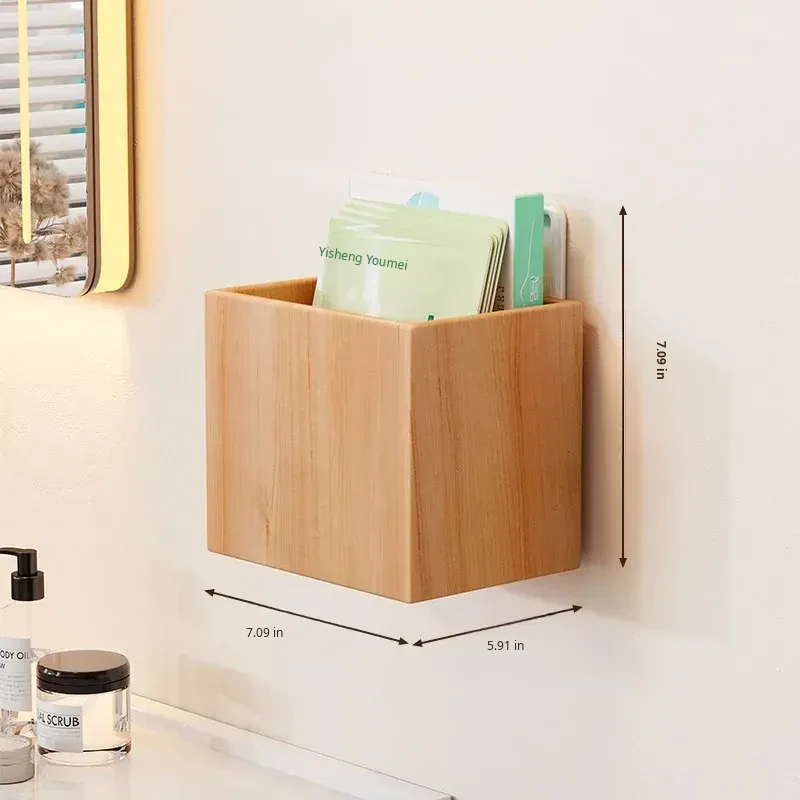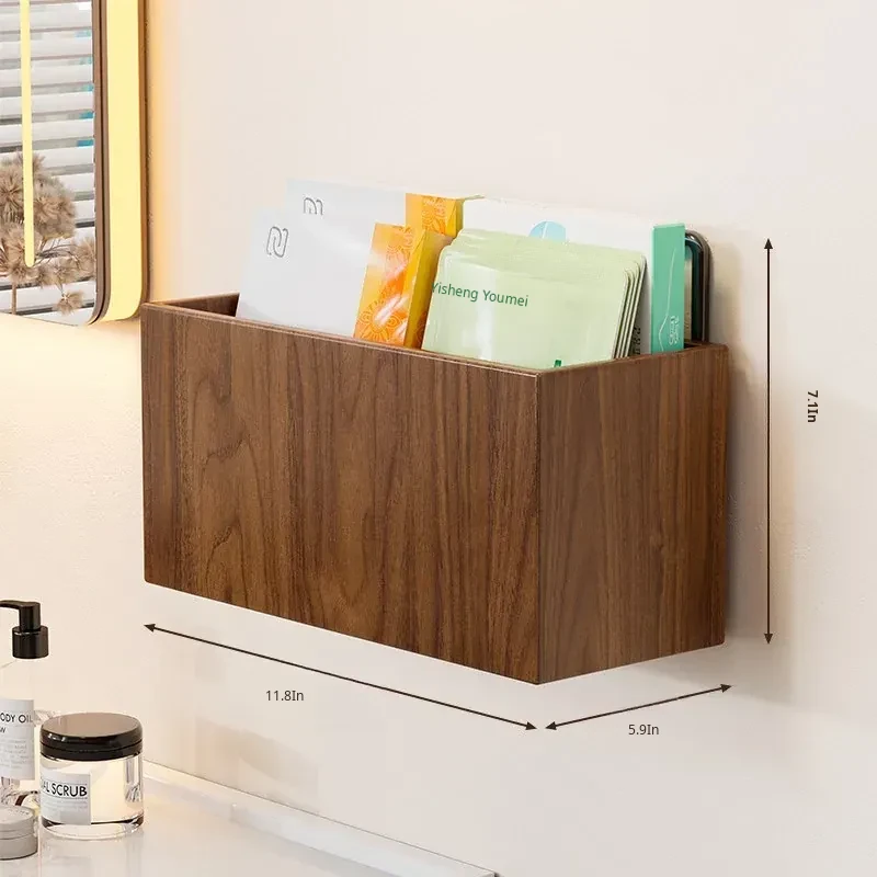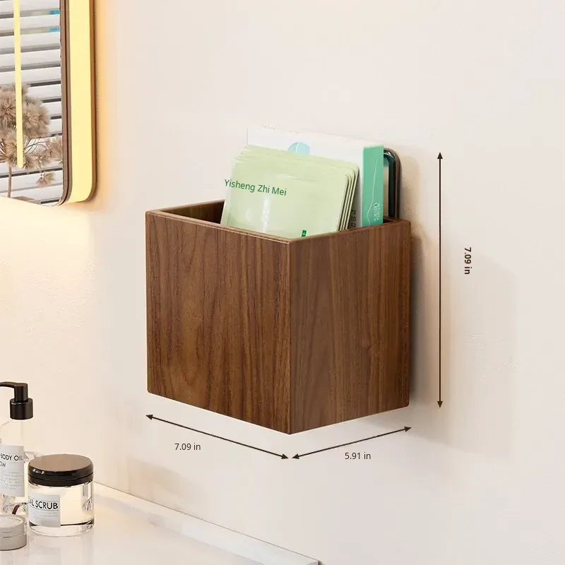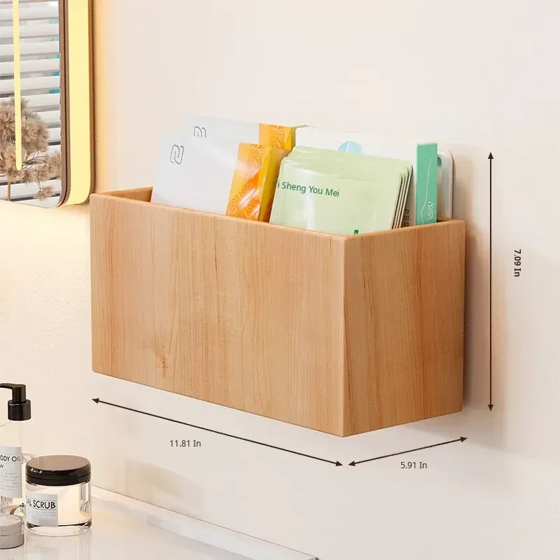 Solid Wood Face Mask Storage Box - Elegant Desktop Organizer for Cosmetics, Wall-Mounted Rectangular Vanity Shelf for Skincare Products