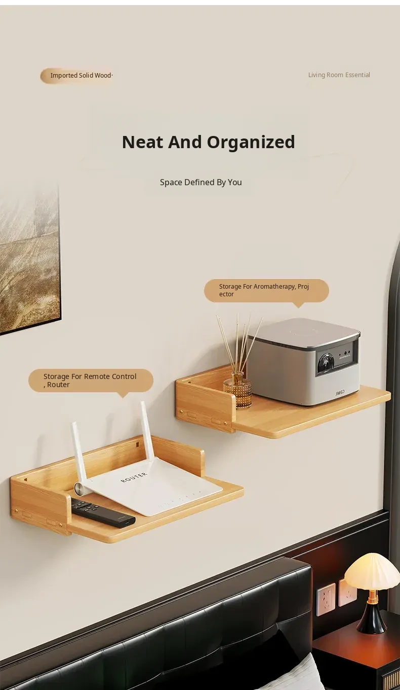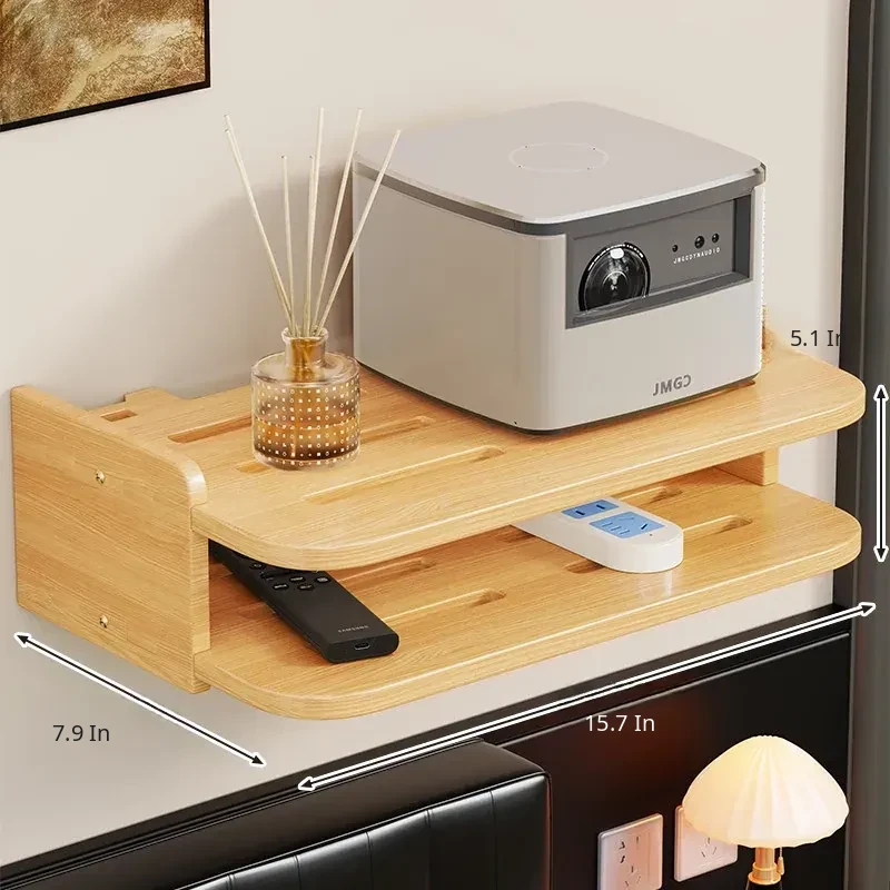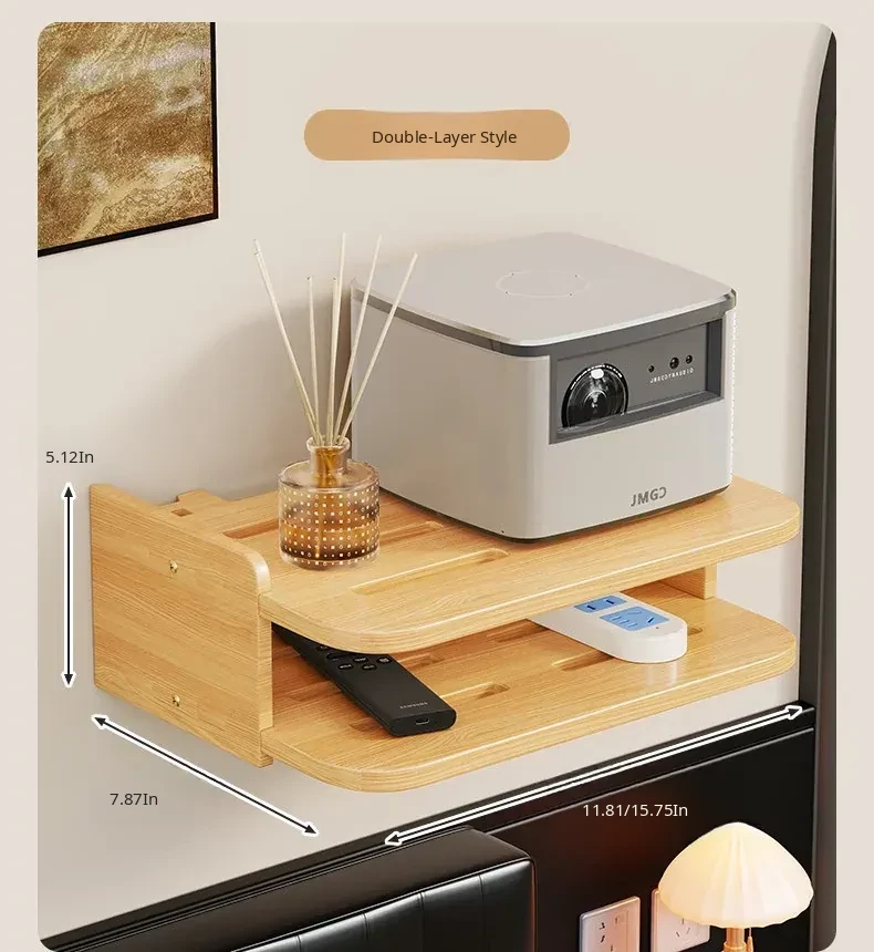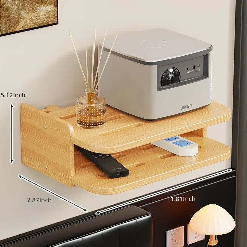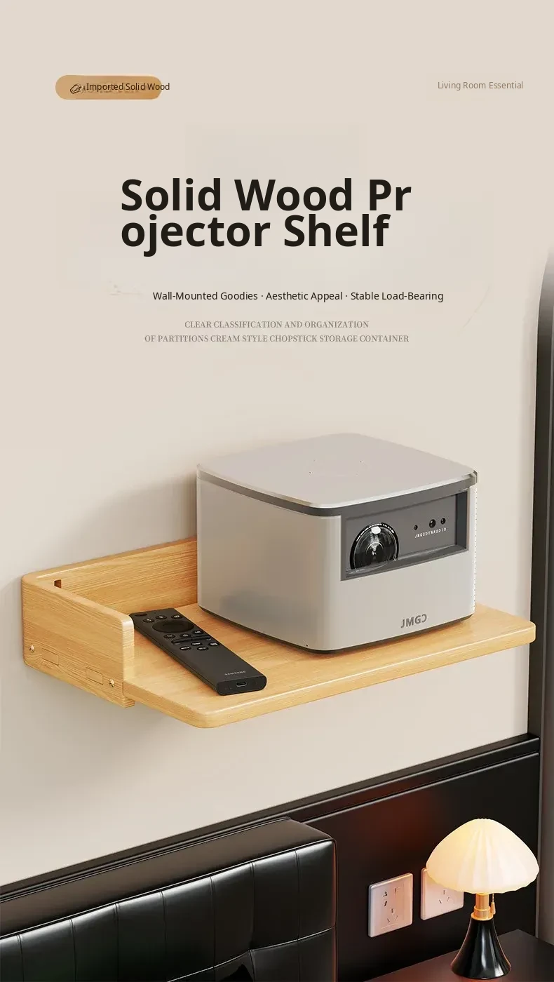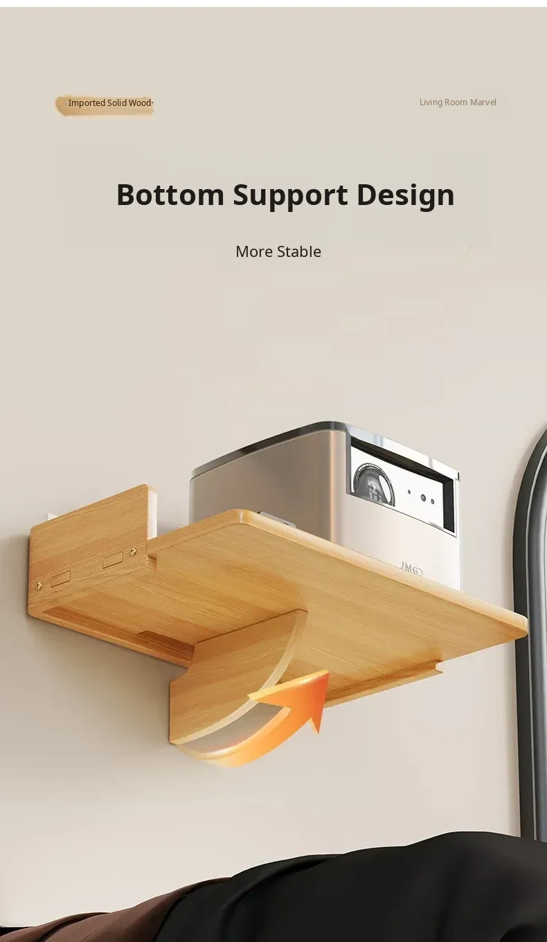 Solid Wood Projector Stand - No Drill Sofa Mount for Home Use, Bedroom Wall-Mounted Bedside Shelf, Perfect for Organizing Routers and Essentials