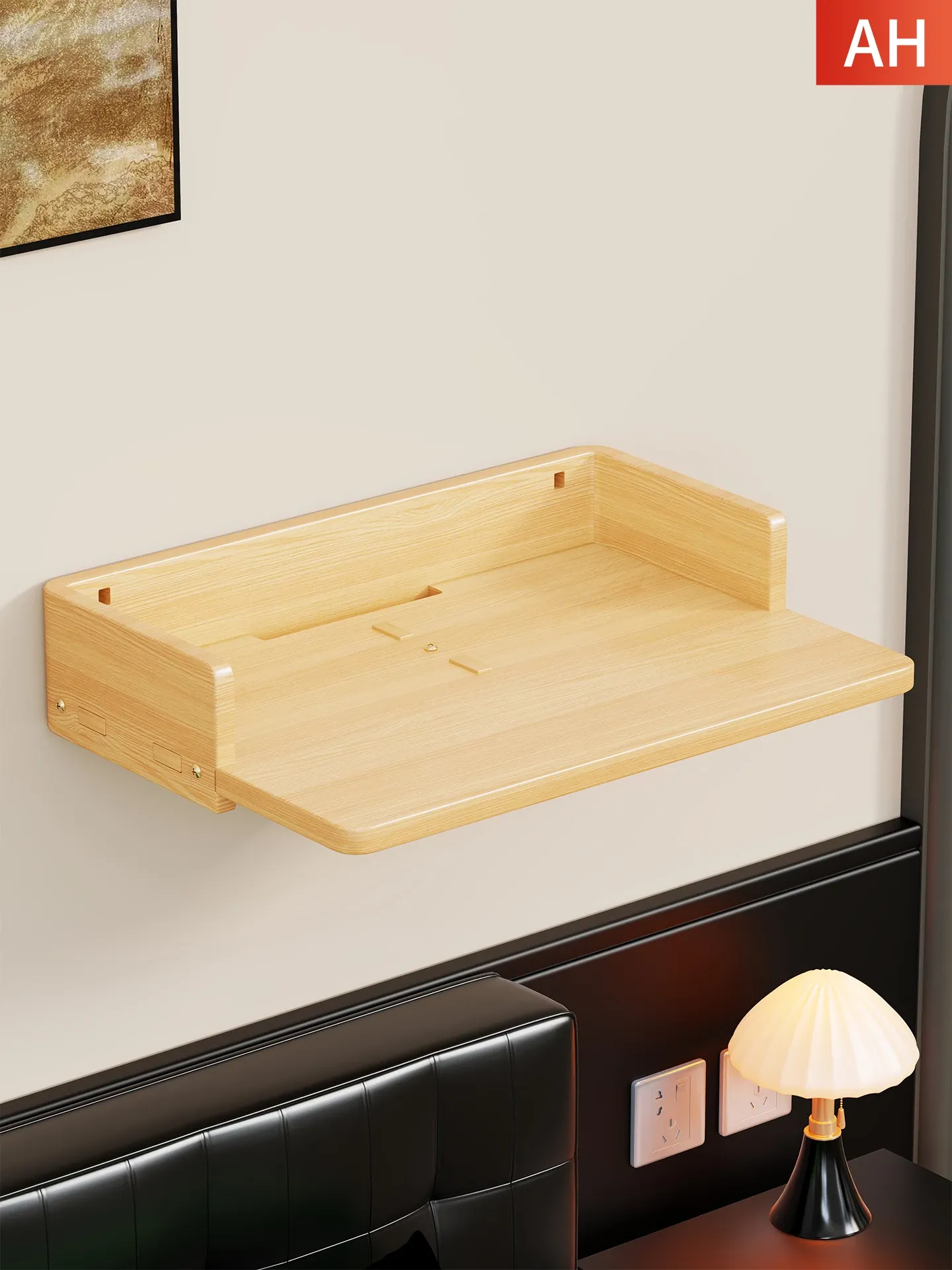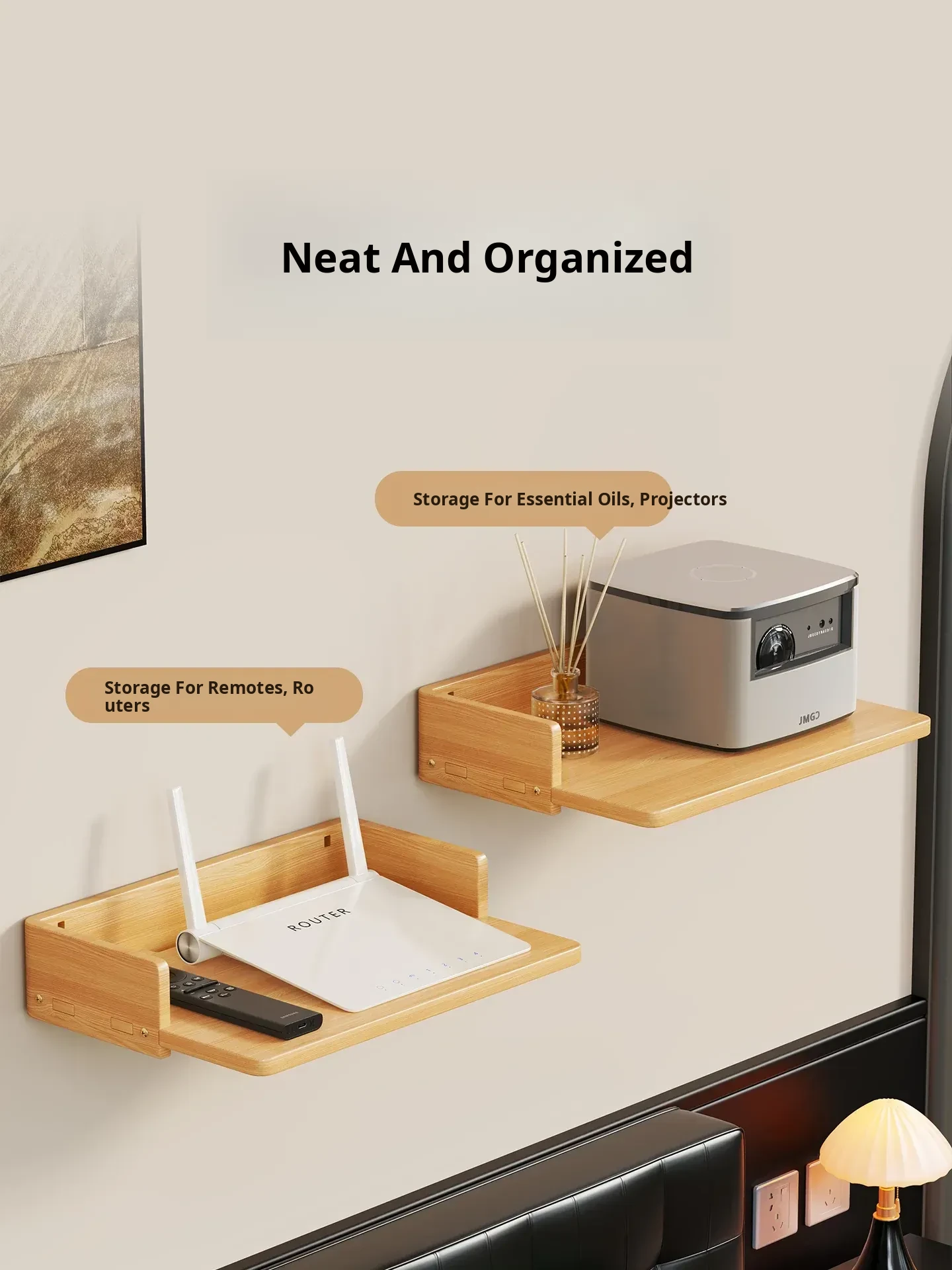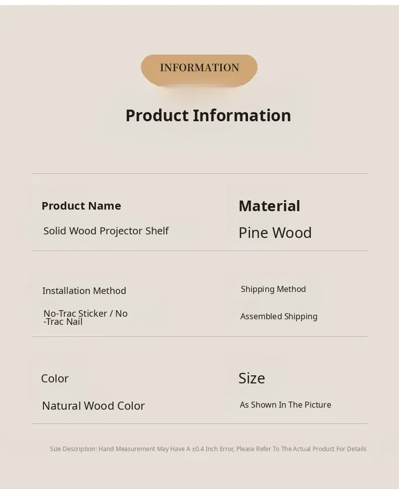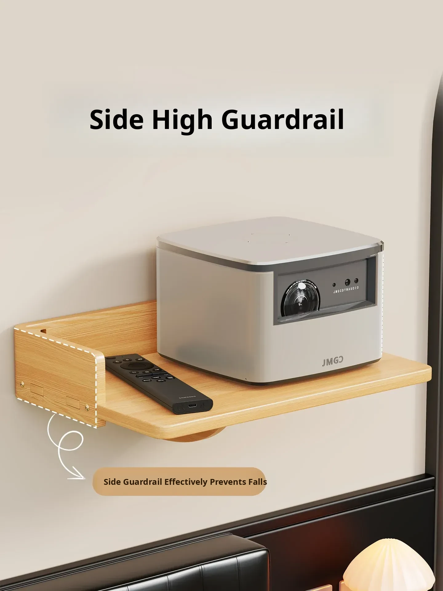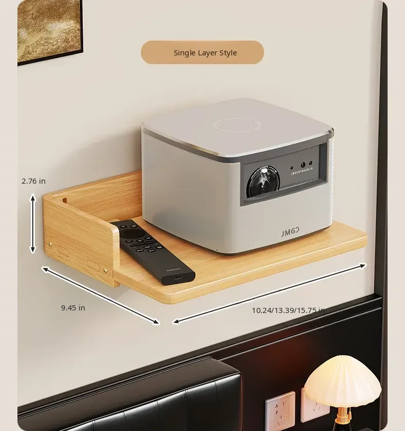 Solid Wood Projector Stand - No Drill Sofa Mount for Home Use, Bedroom Wall-Mounted Bedside Shelf, Perfect for Organizing Routers and Essentials