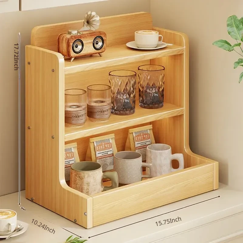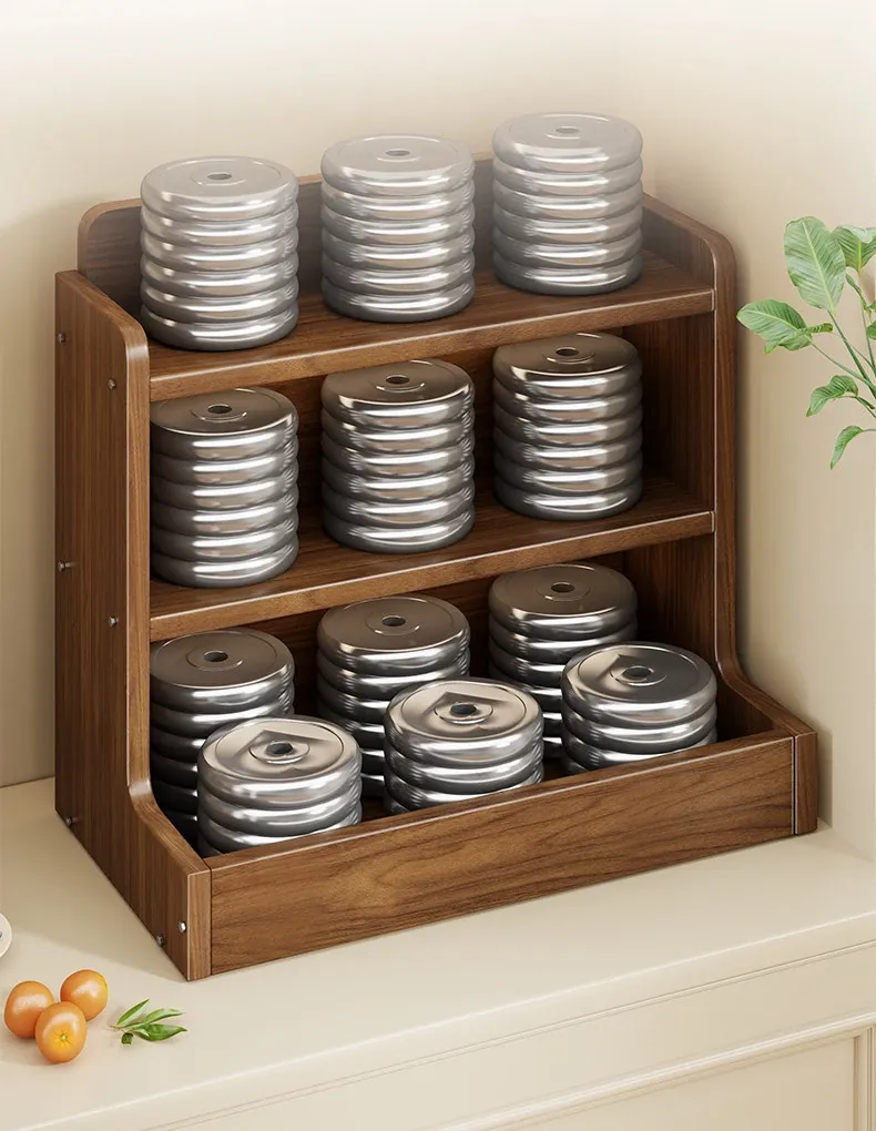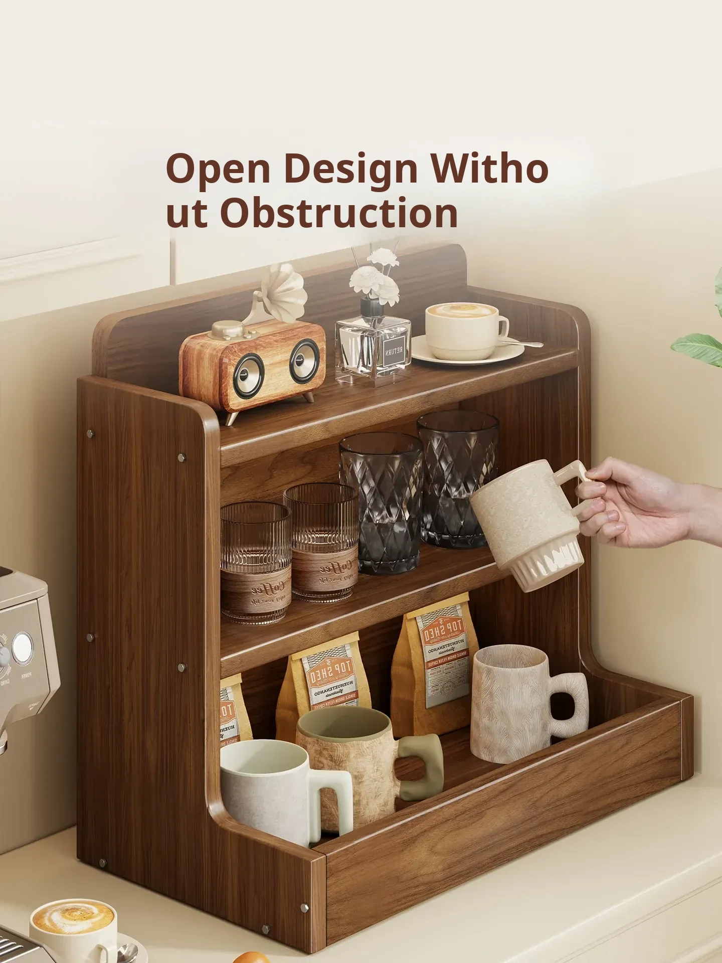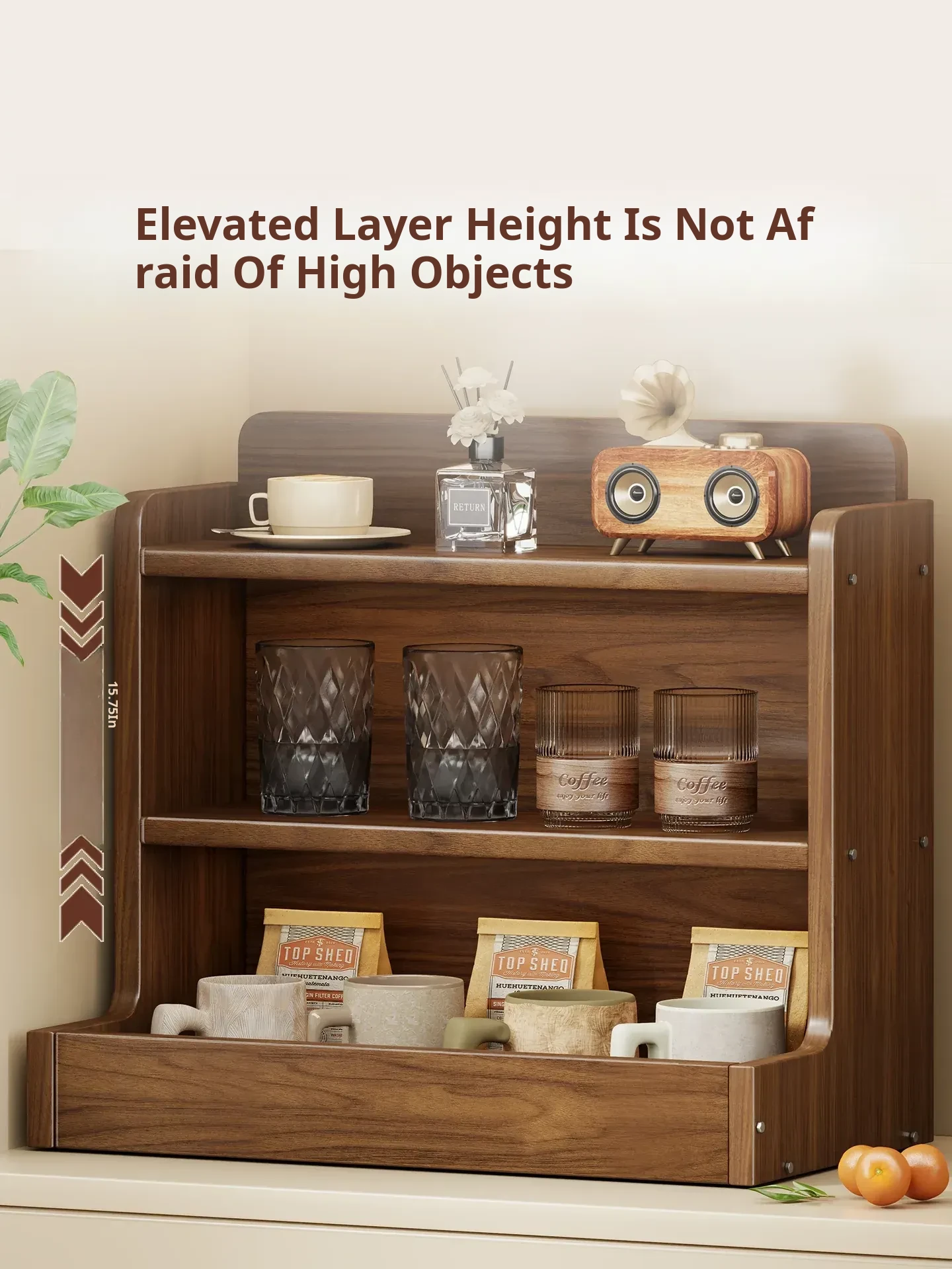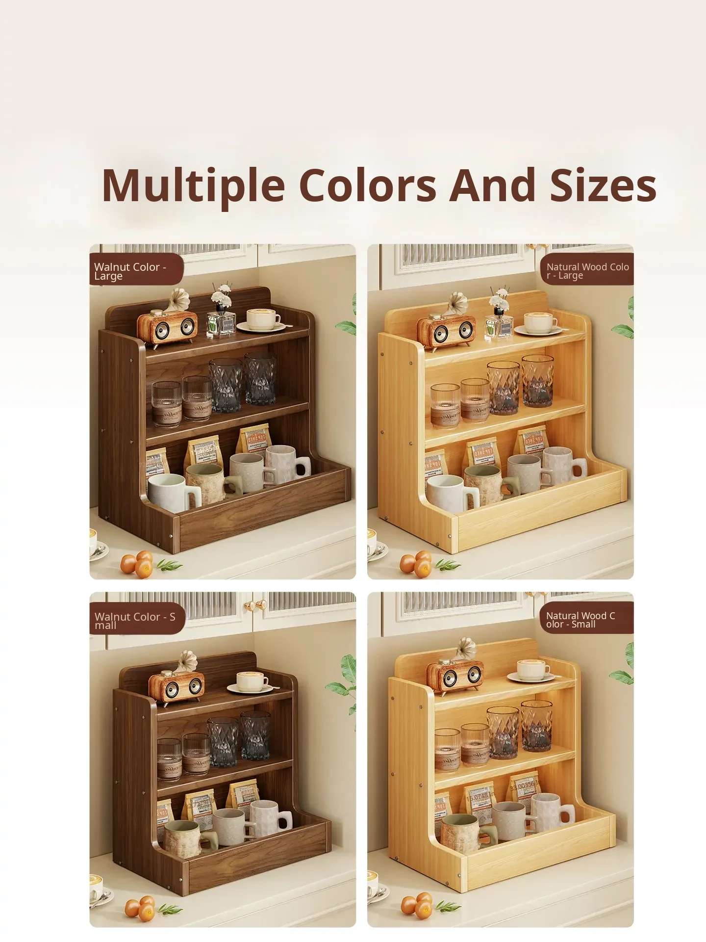 Stylish Walnut Wood Tea Set Display Rack - Elegant Storage for Tea Leaves and Coffee Cups - Versatile Kitchen Sideboard Organizer for Your Dining Table